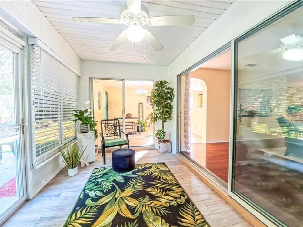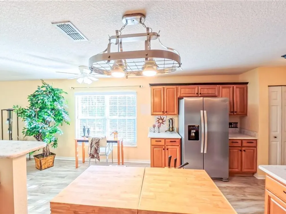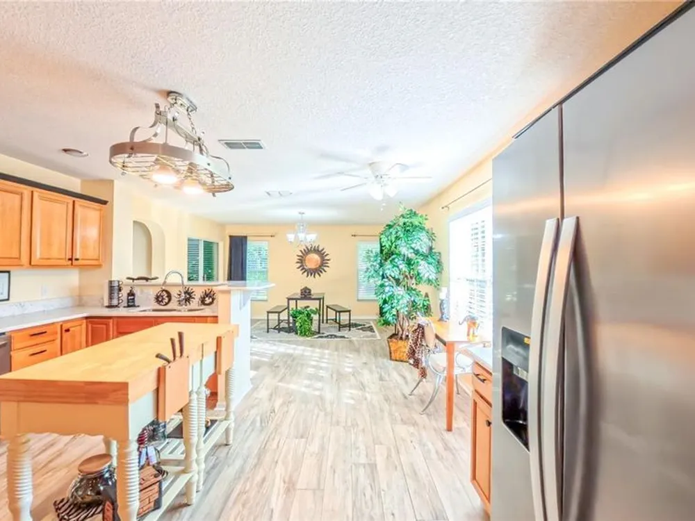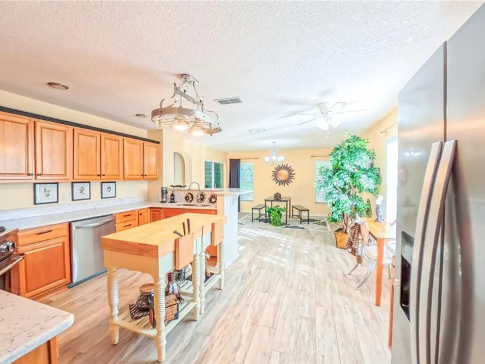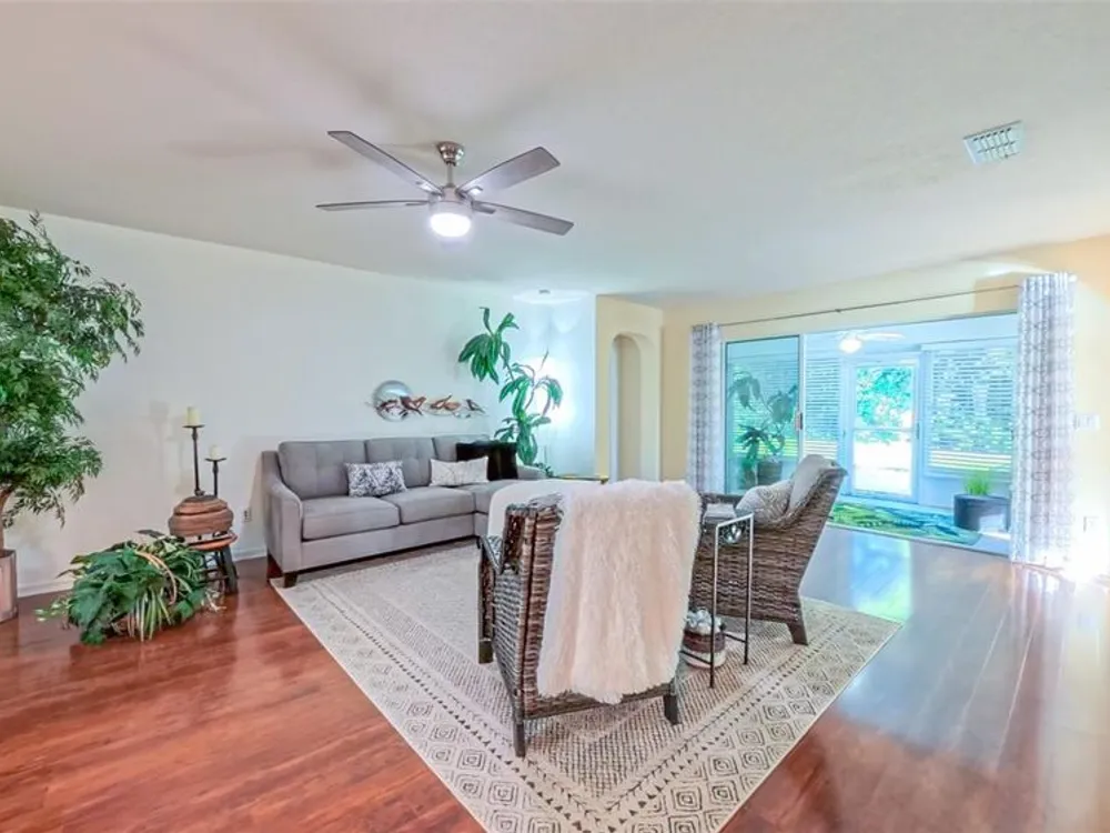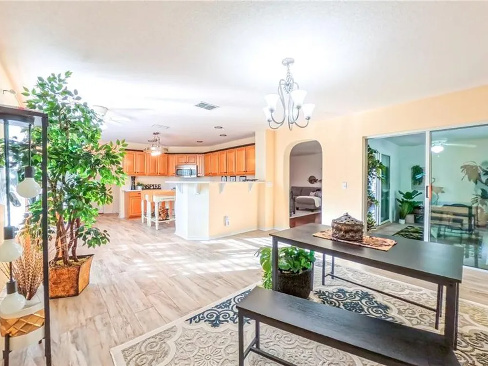 Price Improvement!! This beautifully maintained Heather model home in Indigo East is loaded with upgrades and thoughtful improvements throughout. Key features include porcelain plank flooring in the kitchen, both baths, and the lanai while the living/ dining area has beautirful LVP flooring. The kitchen and baths feature elegant quartz countertops, a Jenn-Air gas/convection range, and stainless appliances,complemented by upgraded lighting fixtures. Natural light flows through solar tubes in the living area and guest bath. The laundry area includes a newly added utility sink, faucet, and porcelain tile. Additional enhancements include a screened garage door, a water softener system, and an epoxy-coated garage floor (2024). Recent updates: 2024 – Roof Rejuvenate with 5-year certificate, new hot water heater, freshly painted garage, new primary bath shower doors,  2021 – Carrier compressor and air handler. This home combines comfort, style, and functionality—move-in ready with major updates already completed. Convenient to shopping, restaurants, medical and the many springs and parks in the area. Enjoy the amenities that OTOW has and a low HOA. Butcher block tables in kitchen DO NOT CONVEY.