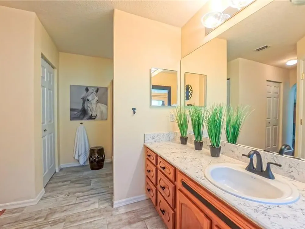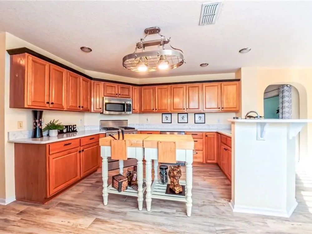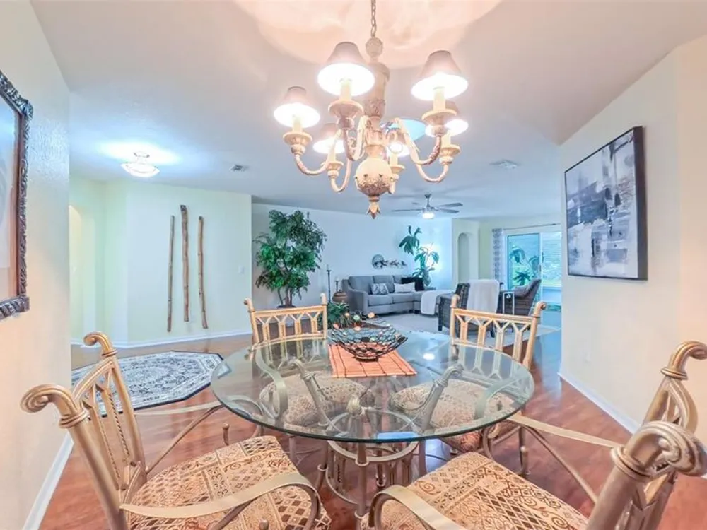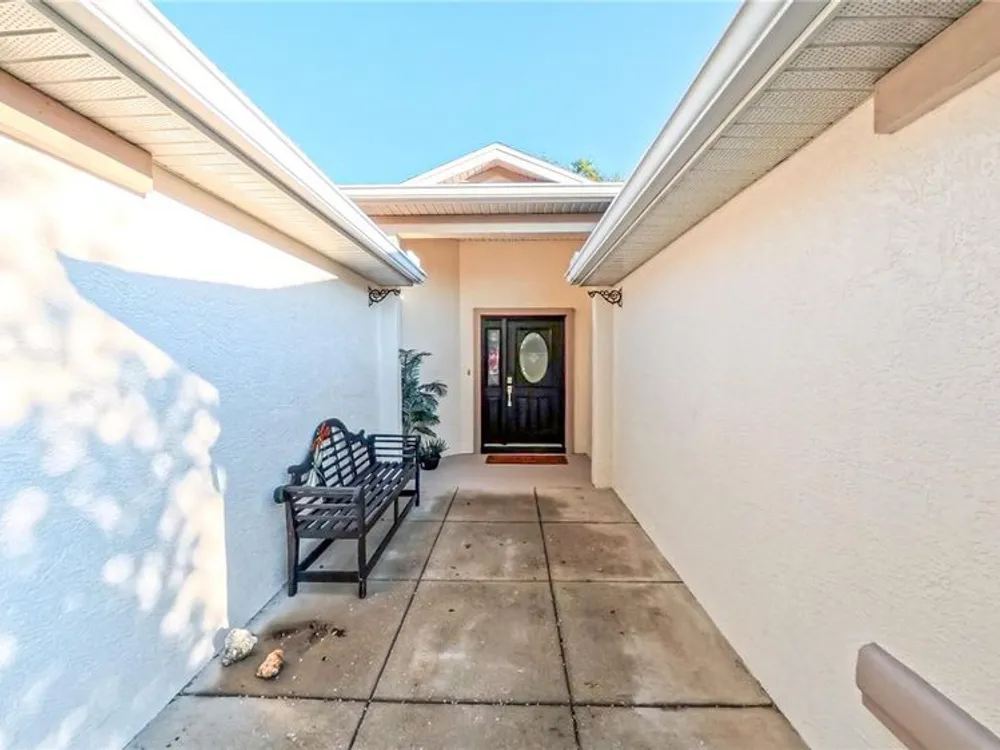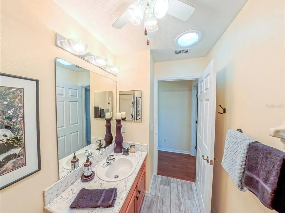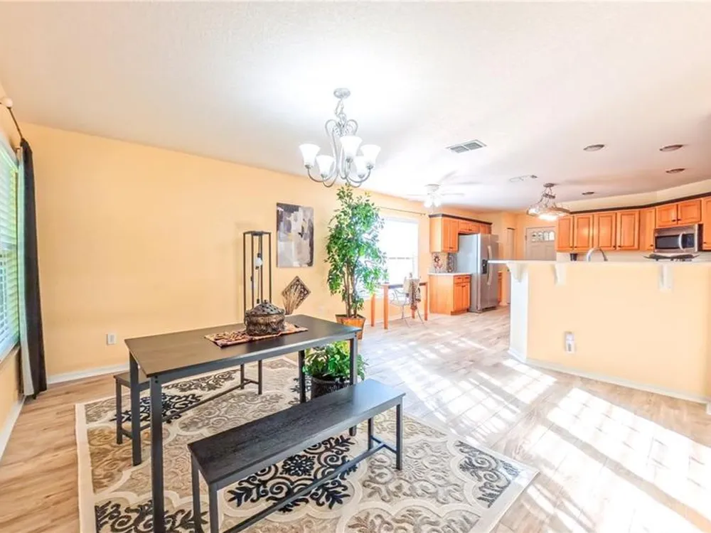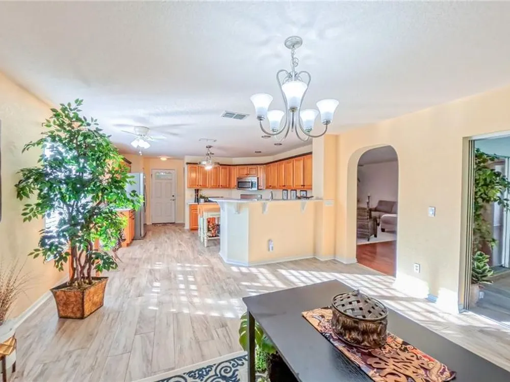 Price Improvement!! This beautifully maintained Heather model home in Indigo East is loaded with upgrades and thoughtful improvements throughout. Key features include porcelain plank flooring in the kitchen, both baths, and the lanai while the living/ dining area has beautirful LVP flooring. The kitchen and baths feature elegant quartz countertops, a Jenn-Air gas/convection range, and stainless appliances,complemented by upgraded lighting fixtures. Natural light flows through solar tubes in the living area and guest bath. The laundry area includes a newly added utility sink, faucet, and porcelain tile. Additional enhancements include a screened garage door, a water softener system, and an epoxy-coated garage floor (2024). Recent updates: 2024 – Roof Rejuvenate with 5-year certificate, new hot water heater, freshly painted garage, new primary bath shower doors,  2021 – Carrier compressor and air handler. This home combines comfort, style, and functionality—move-in ready with major updates already completed. Convenient to shopping, restaurants, medical and the many springs and parks in the area. Enjoy the amenities that OTOW has and a low HOA. Butcher block tables in kitchen DO NOT CONVEY.