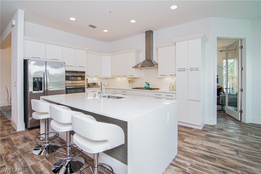 RARELY AVAILABLE! The Pinnacle of Luxury with Exclusive Players Club Access! Experience contemporary, high-end living in this beautifully appointed coach home within Signature Club—Lely Resort’s newest and most prestigious condominium community. Offering the space and privacy of a single-family home with the convenience of condo living, this residence features a sprawling 2,738 sq. ft. Great Room floor plan, accessible via your own upgraded PRIVATE ELEVATOR. Sophisticated Interior & Modern Upgrades designed for the discerning buyer, this home boasts 3 spacious bedrooms—each featuring its own private ensuite bath—plus a versatile den (or 4th bedroom) and an additional powder room. The interior is a masterclass in design, featuring: Gourmet Chef’s Kitchen, Custom cabinetry, quartz countertops, and a rare natural GAS COOKTOP. Brand new Kinetico Water Filtration system. CUSTOM TOUCHES: A sleek galley bar with beverage cooler, built-in entertainment unit, a designer wood feature wall, and a dedicated office workspace. PEACE OF MIND: Full impact windows/sliders throughout, complemented by electric roll-down hurricane shades on the lanai. SERENE LAKEFRONT SETTING: The expansive lanai serves as your private retreat, offering sweeping views of a 5-acre lake anchored by twin lighted fountains—the perfect backdrop for sunset cocktails or morning coffee. The "Club Med" Lifestyle is Steps Away. Signature Club stands alone as the only community in Lely Resort with a private, gated pedestrian entrance directly to the PLAYERS CLUB & SPA. This 15-acre tropical paradise is your backyard, featuring: 3 Resort-style pools & the "friendliest Tiki Bar in Naples", 9,000 sq. ft. fitness center, full-service spa, and fine dining. RACQUET SPORTS HUB: 13 lighted Har-Tru tennis courts (USTA programs), 4 pickleball courts, and 4 bocce courts. Minutes from renowned dining and shopping on 5th Ave as well as the white sandy beaches of Marco Island and Naples. Schedule your private tour today to secure the only residence with VIP gated access to Naples' most coveted resort lifestyle—this opportunity won't last.