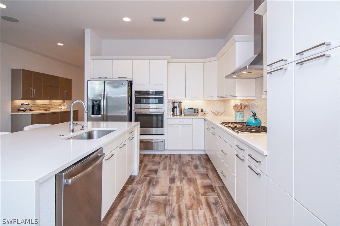 - Dryer, Dishwasher, Gas Cooktop, Disposal, Ice Maker, Microwave, Refrigerator, Self Cleaning Oven, Warming Drawer, Washer, Water Purifier