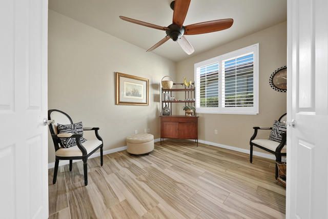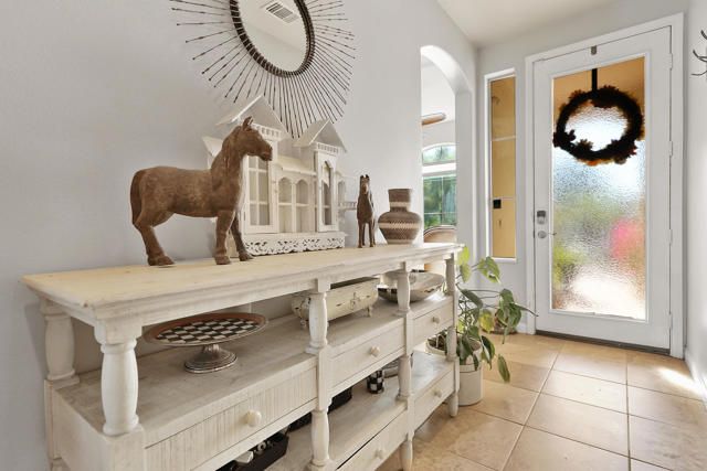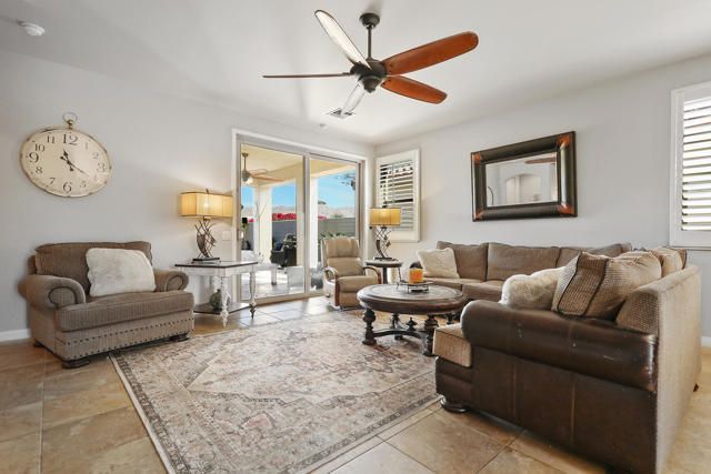 Join us for the first look this Saturday, the 6th, from 11:00 AM to 2:00 PM. This San Vicente model offers 2BD/2BA plus a den, providing a comfortable and versatile layout suited for everyday living. Tile flooring runs throughout the home, creating a clean and cohesive finish with no carpet. The kitchen features updated quartz counters for both durability and a polished appearance. The living area includes a welcoming fireplace, adding warmth and character to the space. The primary suite is appointed with a generous walk-in closet and private bath, while updated ceiling fans throughout the home support year-round comfort. The garage features epoxy flooring and a swamp cooler, making it ideal for projects or additional workspace. The backyard presents a private pool and spa framed by open views--an inviting setting for relaxation or casual gatherings. Sun City Shadow Hills further enhances the lifestyle with two clubhouses, a fitness center with indoor and outdoor pools, bocce courts, billiards, lighted tennis courts, an 18-hole golf course, a restaurant, and numerous social clubs and activities. A wonderful opportunity to enjoy a well-cared-for residence in a community appreciated for its recreation, comfort, and welcoming atmosphere.