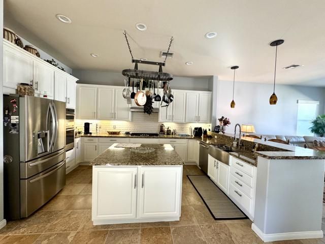 REDUCED to SELL NOW! COMPLETELY REMODELED This coveted San Miguel Model has been recently PAINTED and NEW 6'baseboard added. This MODEL boasts spacious areas through out the home and is located at end of private Cul-D-Sac on premium 15000+ sq.ft. lot. Features formal dining and living rooms area, plus double door Den/office. It also has a separate Family/TV Room and breakfast nook which open to beautifully REMODELED KITCHEN w/custom SOLID Slab Granite Counters and subway tile backsplash. Kitchen is fitted w/quality high end stainless steel appliances, custom hood, 5 burner gas range, FARMERS SINK, newly painted white cabinets w/brushed nickel hardware, plus replaced plumbing fixtures and disposal. The breakfast bar and a center island lend themselves to the perfect setting to entertain. Amongst other things, it also includes a TOP of the line WATER PURIFIER producing alkaline balanced water plus PURIFIER UNIT in garage for entire home. The well appointed master bedroom suite affords a sitting area for those peaceful quality moments. Bathroom has double vanity, the shower remodeled using 8x8 GLASS BLOCK and beach entry w/mosaic shower pan and porcelain tile from floor to ceiling PLUS custom upgraded fixtures. Also included was the NEW 8'x 48'' quality laminate floors thru-out. The extra large walk in closet provides plenty of storage. The guest casita (2nd bedroom) is large enough for King Size Bed, end tables, chest of drawers and sitting area. The casita bathroom was also REMODELED w/walk in shower, including mosaic shower pan, custom rain shower head, fixtures & custom glass and has private door leading to courtyard. The NEW beautiful LOW MAINTAIN custom landscape includes a DEEP ROCK RIVER using Large Boulder and smaller stone. In addition a NEW custom sidewalk w/WATER FEATURE many beautiful miniature slow growing palms and desert plants to give it the curve appeal. Backyard has PUTTING GREEN, additional turf and 12 ft. CUSTOM PAVERS in a 12' circle PLUMBED FOR GAS FIREPIT. Also has movable quality BBQ Island. Home is in beautiful golf course gated community w/Tennis, pickle-ball, bocci ball, State of the word fitness centers, indoor walking areas, billiards and so much more. Search www.SCSHCA.Com for ALL Amenities. A MUST SEE TO APPRECIATE; Make your appointment NOW!More info. go to www.SCSHCA.Com