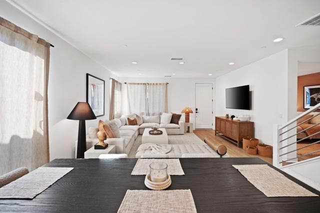 Welcome to the Signature Homes, located in PGA West! This guard gated subdivision offers resort living all within its own private community. This modern luxury condominium, just under 2,000 square feet and built in 2023, feels like a single-family home. The turnkey residence features 3 bedrooms and 2.5 baths, beautifully furnished and designed by Slim Keskes of Atelier Slim Keskes. The contemporary decor combines neutral tones with vibrant local colors, creating a stylish yet functional space. The main floor includes an open-plan great room, an ''entertainer's kitchen'' with upgraded appliances and a massive island, and a spacious primary suite with upgraded vanities. There's also a guest bath and a large utility room suitable for an office. On the second floor, you'll find two guest bedrooms, a full bath, and a large flex room for gaming or additional sleeping. Additional features include leased solar panels and a Tesla charging station. Residents of Signature Homes are allowed to obtain a Short Term Rental Permit from the City of La Quinta if they are looking for an investment opportunity. Within the Signature gates, homeowners have access to the community's pool & spa, BBQ area, fitness center, & recreation room, all included in the HOA dues. Don't miss out on making this exceptional property yours!