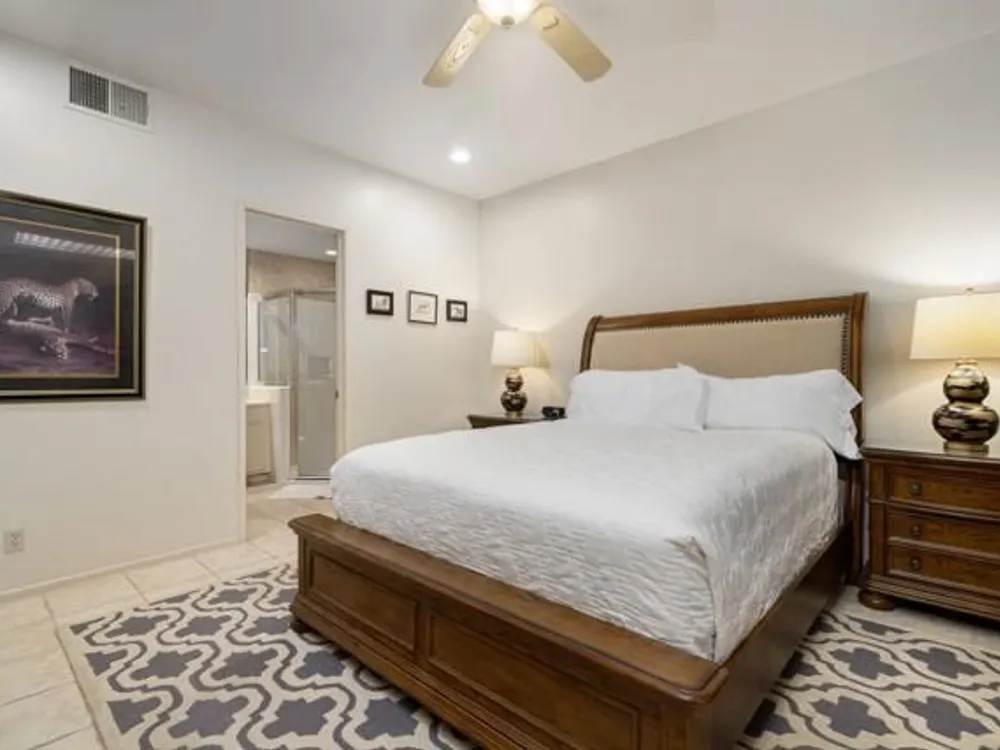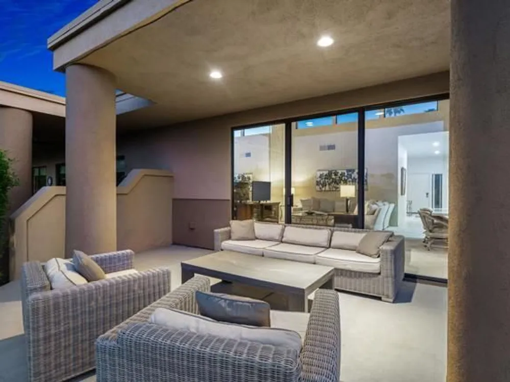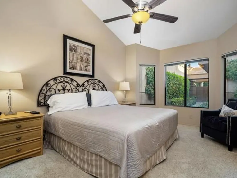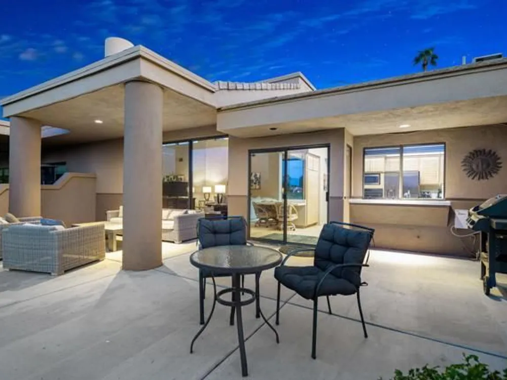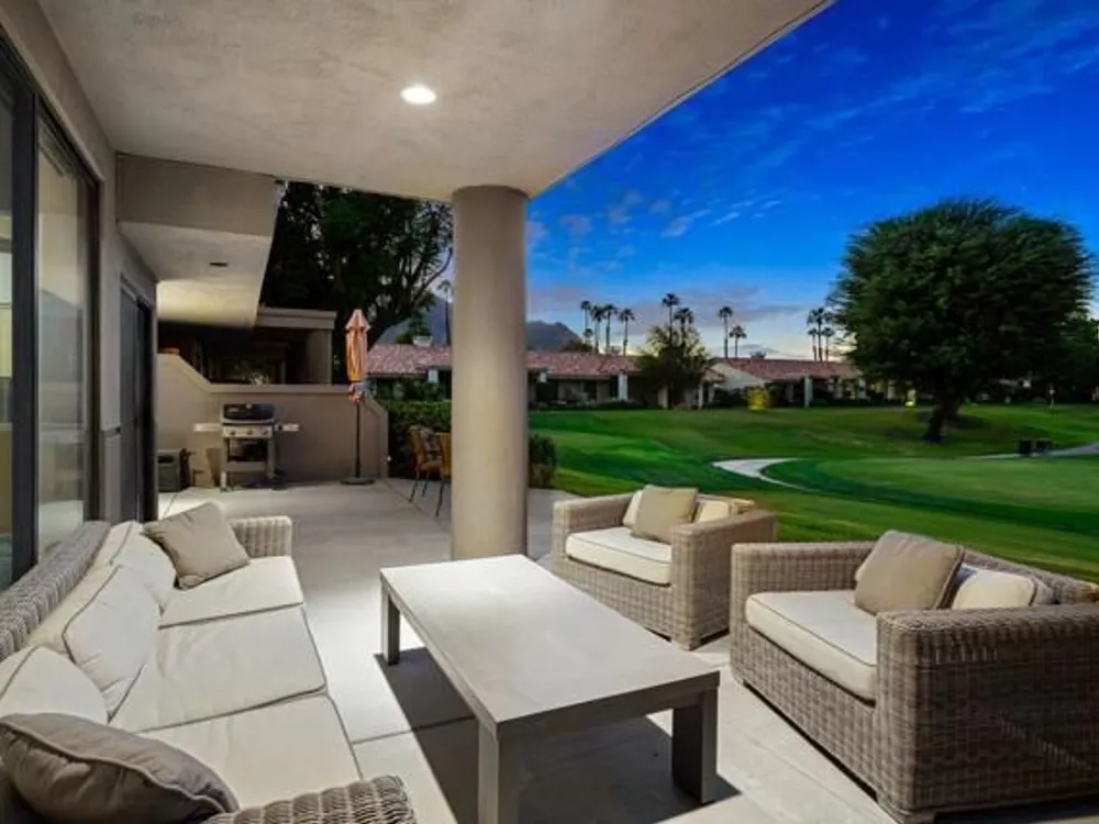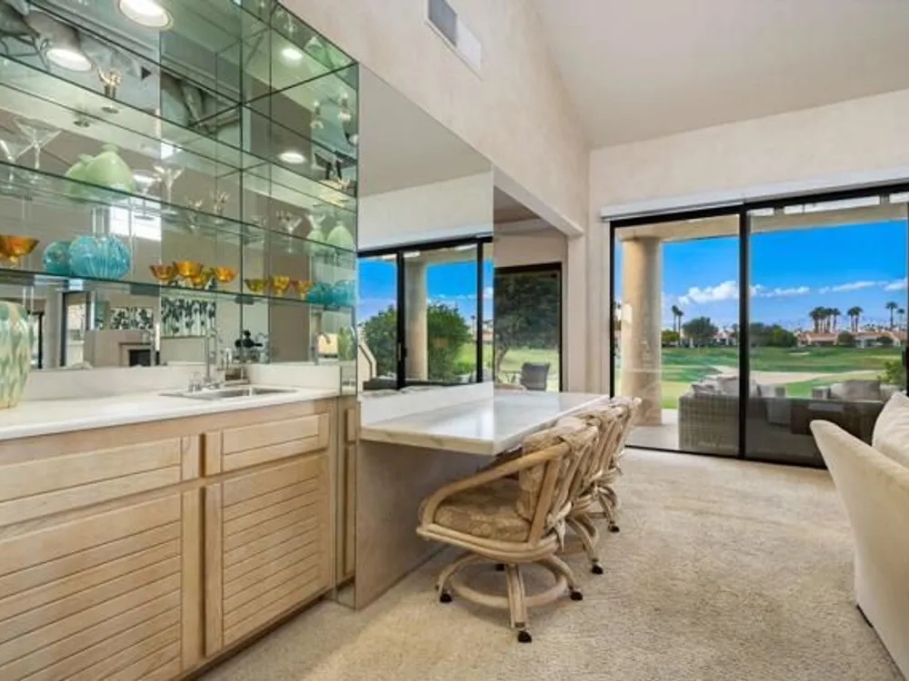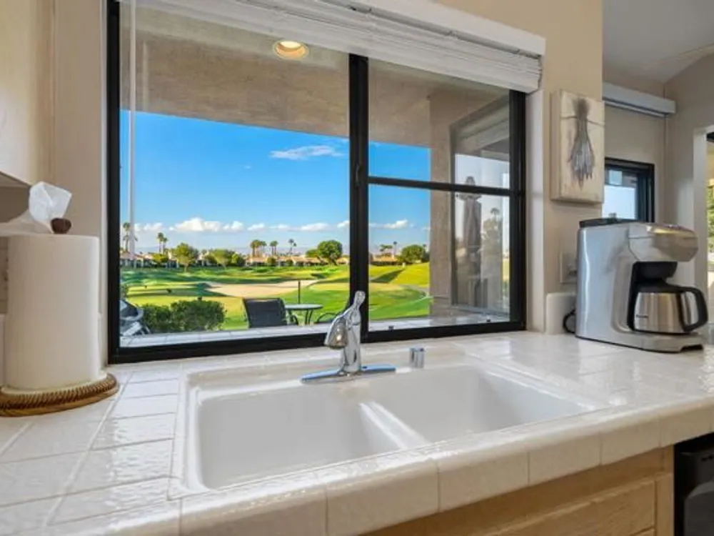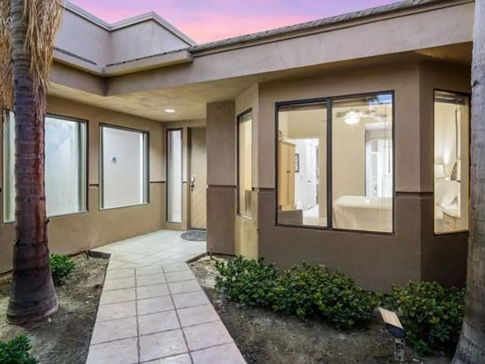 LOCATION, LOCATION, LOCATION! With northwest panoramic Santa Rosa Mountain views as well as being perched behind the Black Tee boxes of the #4 par 3 hole(appropriately named''Sand Pit) of the PGA West world-famous Stadium- Golf Course, home to the Annual American Express PGA Golf Tournament, you will enjoy endless entertainment from your rear patio.. Enter through the private courtyard gate and enjoy the lush landscaping of this popular Legend 10 floor plan that features 2272 sq. ft of living space with three en-suite bedrooms, two with dual vanities, a powder room for your guests, an open living area with a Wet Bar and gas log fireplace for those cool mornings/evenings..The wall between the kitchen and living area has been moved back for an open feeling, and a breakfast bar has been installed. The original Atrium has been enclosed as a Bonus room to be utilized as you see fit. The rear patio features spectacular views during those peaceful mornings and evenings, and plenty of seating areas for your guests to enjoy. The spacious 2-car plus golf cart garage features cabinetry allowing plenty of storage. Offered furnished per the written inventory. PGA West features 3 Private and 3 Public courses, tennis, pickleball, three clubhouses, restaurants, and more. HOAs include building maintenance, complete landscaping, irrigation water/equipment, exterior paint, roof, cable, internet, trash, and 24-hour guarded gated security