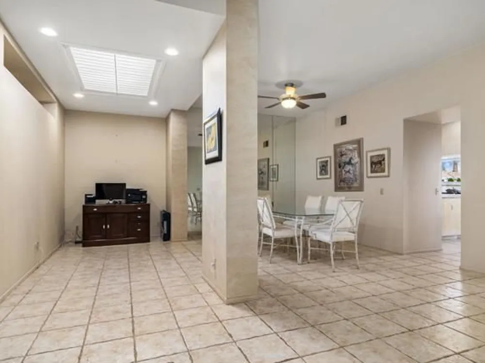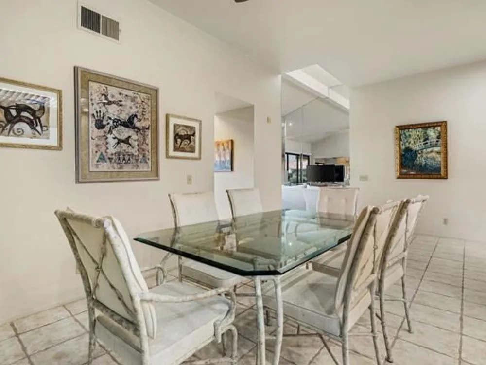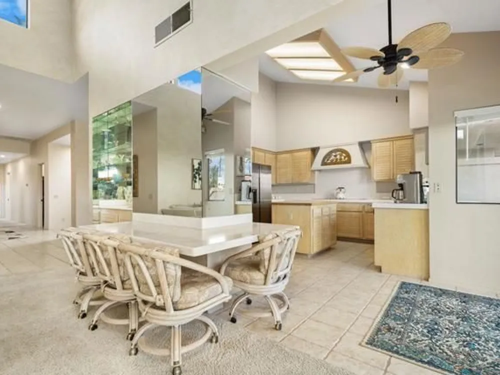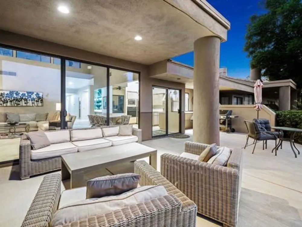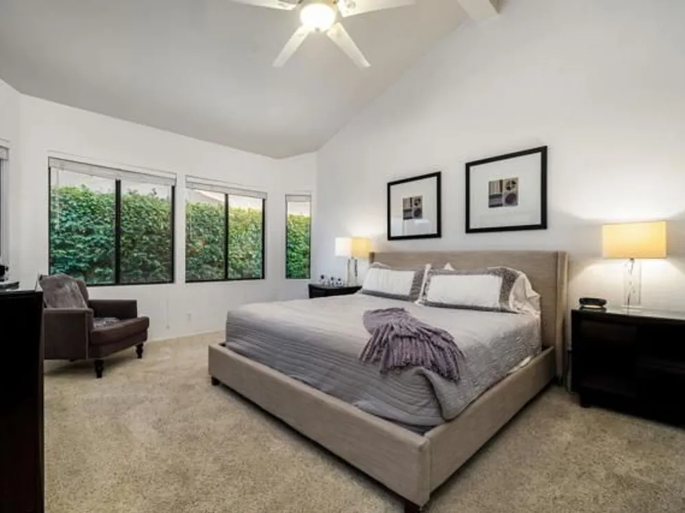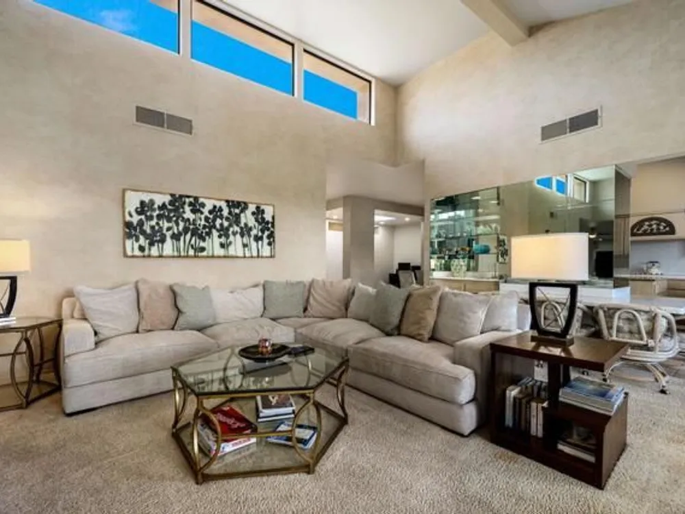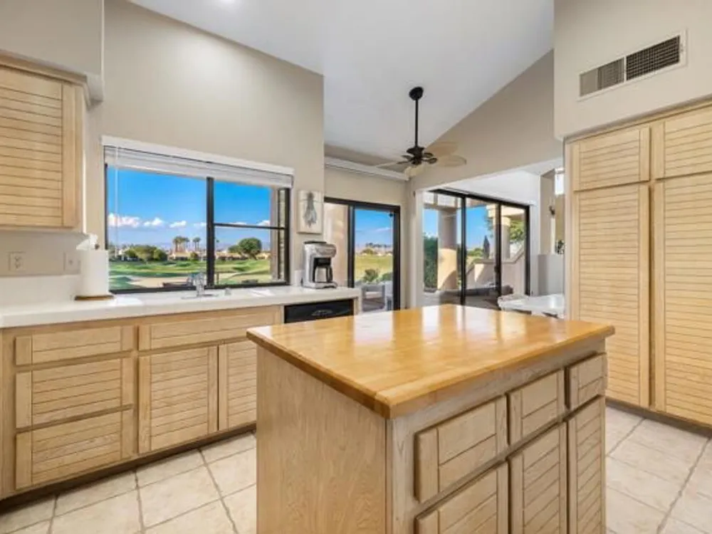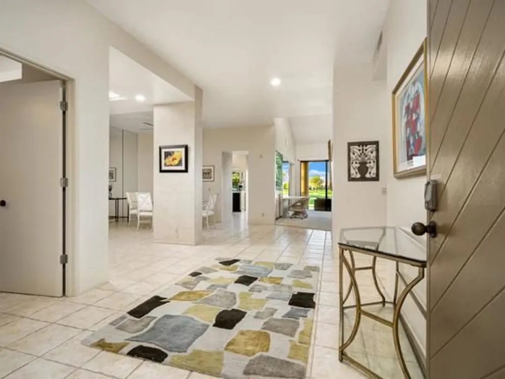 LOCATION, LOCATION, LOCATION! With northwest panoramic Santa Rosa Mountain views as well as being perched behind the Black Tee boxes of the #4 par 3 hole(appropriately named''Sand Pit) of the PGA West world-famous Stadium- Golf Course, home to the Annual American Express PGA Golf Tournament, you will enjoy endless entertainment from your rear patio.. Enter through the private courtyard gate and enjoy the lush landscaping of this popular Legend 10 floor plan that features 2272 sq. ft of living space with three en-suite bedrooms, two with dual vanities, a powder room for your guests, an open living area with a Wet Bar and gas log fireplace for those cool mornings/evenings..The wall between the kitchen and living area has been moved back for an open feeling, and a breakfast bar has been installed. The original Atrium has been enclosed as a Bonus room to be utilized as you see fit. The rear patio features spectacular views during those peaceful mornings and evenings, and plenty of seating areas for your guests to enjoy. The spacious 2-car plus golf cart garage features cabinetry allowing plenty of storage. Offered furnished per the written inventory. PGA West features 3 Private and 3 Public courses, tennis, pickleball, three clubhouses, restaurants, and more. HOAs include building maintenance, complete landscaping, irrigation water/equipment, exterior paint, roof, cable, internet, trash, and 24-hour guarded gated security
