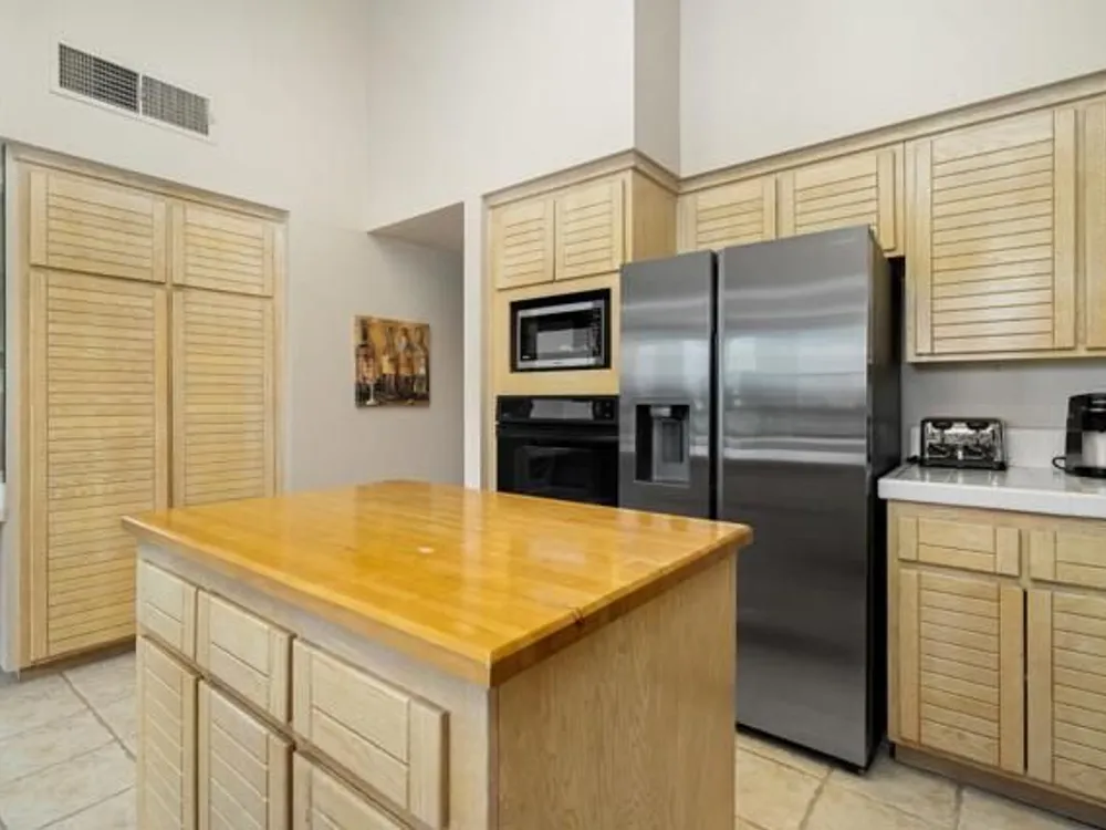 - Microwave, Vented Exhaust Fan, Water Line to Refrigerator, Refrigerator, Disposal, Dishwasher, Gas Water Heater, Range Hood