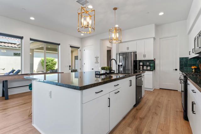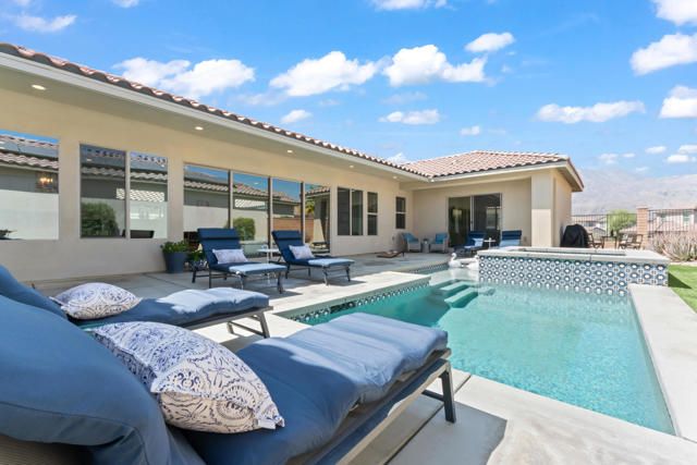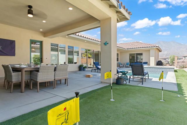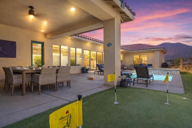 This one is not like the others... Private Casita Airbnb Guest Favorite (Exceptional 5-Star Reviews) Stunning Mountain Views Paid Solar Fully Furnished & Turnkey!Welcome to luxury living in Signature at PGA West, one of La Quinta's most sought-after communities for primary residences, vacation homes, and short-term rentals. This beautifully upgraded 3-bedroom, 3.5-bath home offers over 2,200 SF of thoughtfully designed living space, blending elegance, comfort, and functionality. A private detached CASITA with its own independent A/C provides the perfect guest retreat, offering privacy and flexibility for family, visitors, or rental use. With a true detached casita, an uncommon feature in this community, this home stands out as a must-see! Expansive floor-to-ceiling glass sliding doors create a seamless indoor-outdoor living experience, filling the home with natural light and opening to a spacious outdoor entertaining area. The outdoor living is designed for year-round enjoyment and features two covered patio areas, inviting courtyard, private putting green, and stunning Santa Rosa Mountain views, creating the ideal desert setting for relaxing or entertaining! Inside, the home showcases sophisticated upgrades throughout, including granite countertops, a striking tile backsplash, and rich laminate wood flooring. The primary suite is a serene retreat with direct access to the courtyard and pool area, creating a seamless connection for relaxed desert living! Modern efficiency meets luxury with paid solar, an electric vehicle charger, and an upgraded garage complete with epoxy flooring, custom shelving, and a mini-split A/C system for added climate control. Offered fully furnished and turnkey, this home is move-in or investment ready and currently operates as a successful short-term rental, earning Airbnb ''Guest Favorite'' status with EXCEPTIONAL 5-star reviews, highlighting its comfort, design, and reliability and strong rental appeal. Ideally located just a short walk to Ernie's Bar & Grill and the Stadium Course Clubhouse, and minutes from Coachella, Stagecoach, and the Indian Wells Tennis Garden. This is a rare opportunity to own a luxury, income-producing home in the heart of PGA West!