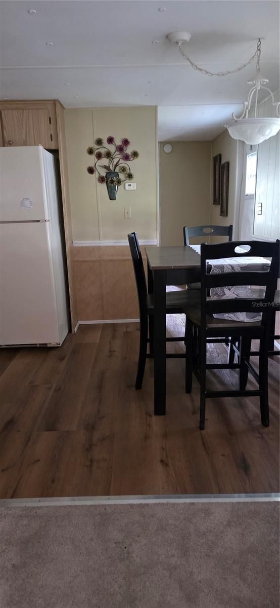 Home located in the historic district of The Villages. Close to hospital, drs offices, shopping, Spanish Springs town square. Golf course with restaurant nearby. Recreation center and pool around the corner. Golf cart on over to Walmart or BJ's club. 2 bedroom 1 and a half bath home with a large Florida room under air and a rear screened lanai. New waterproof vinyl flooring in the bathrooms, hall and kitchen. New A/C. There is a covered area for your golf cart or bicycles.