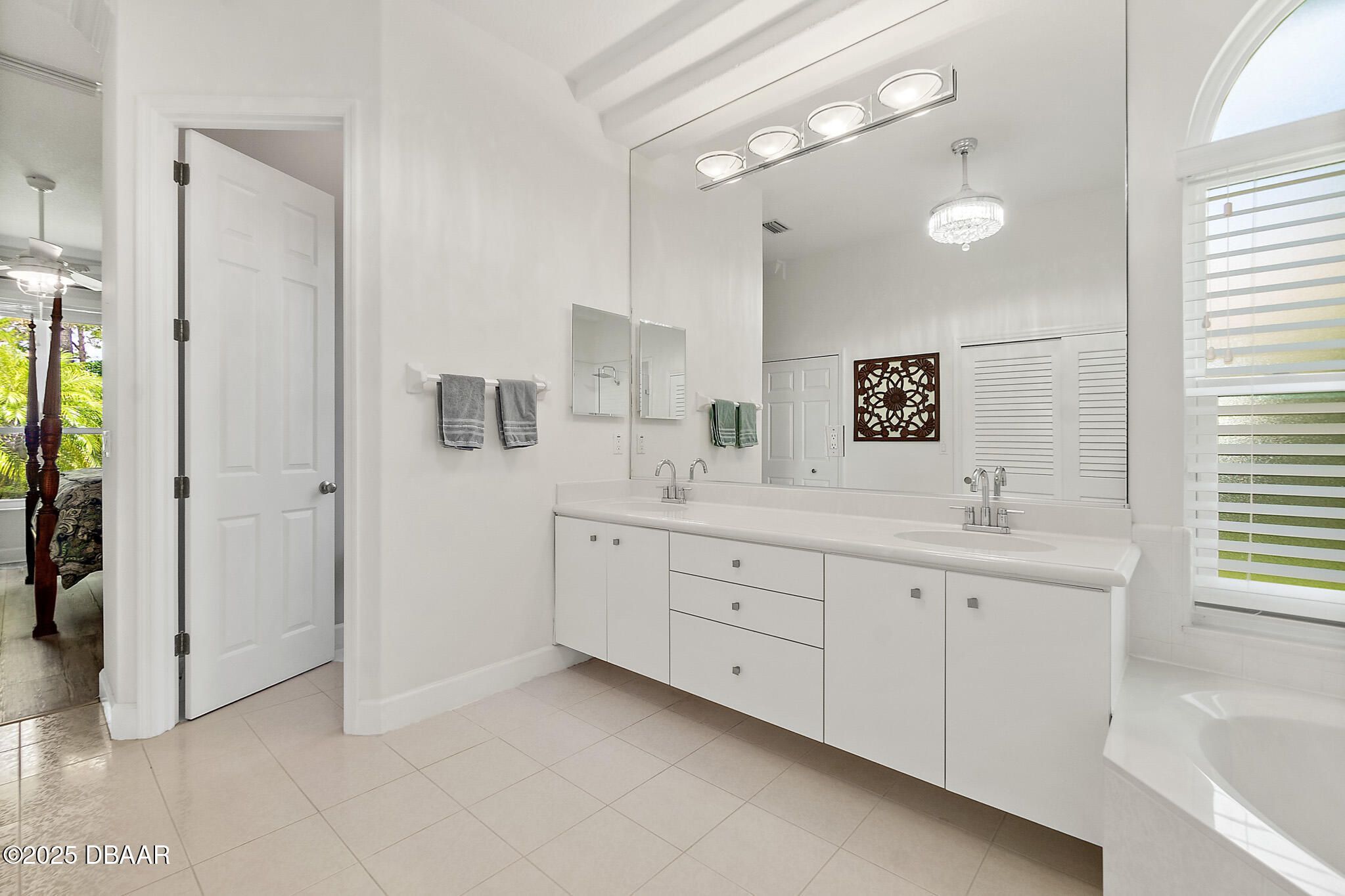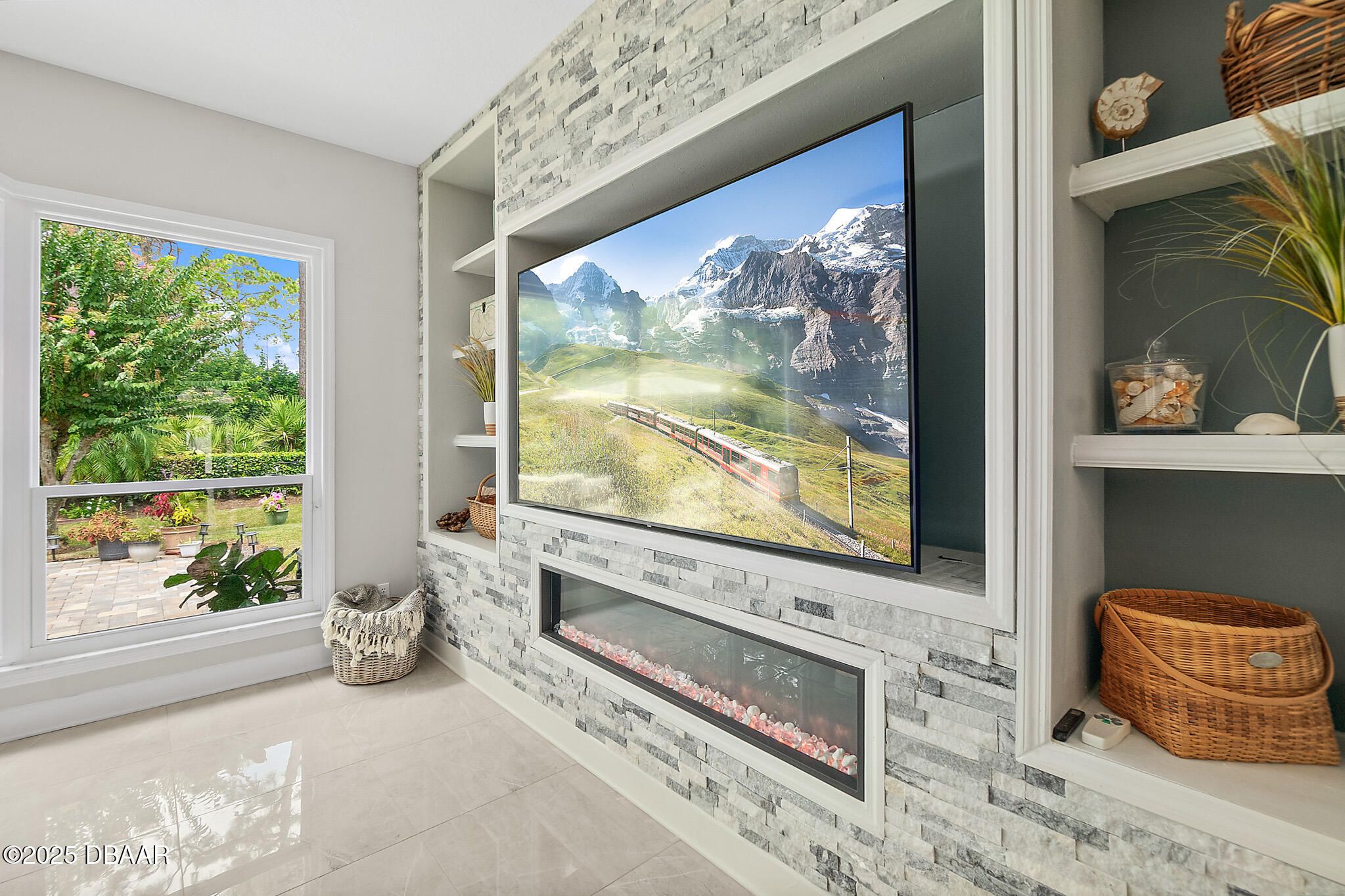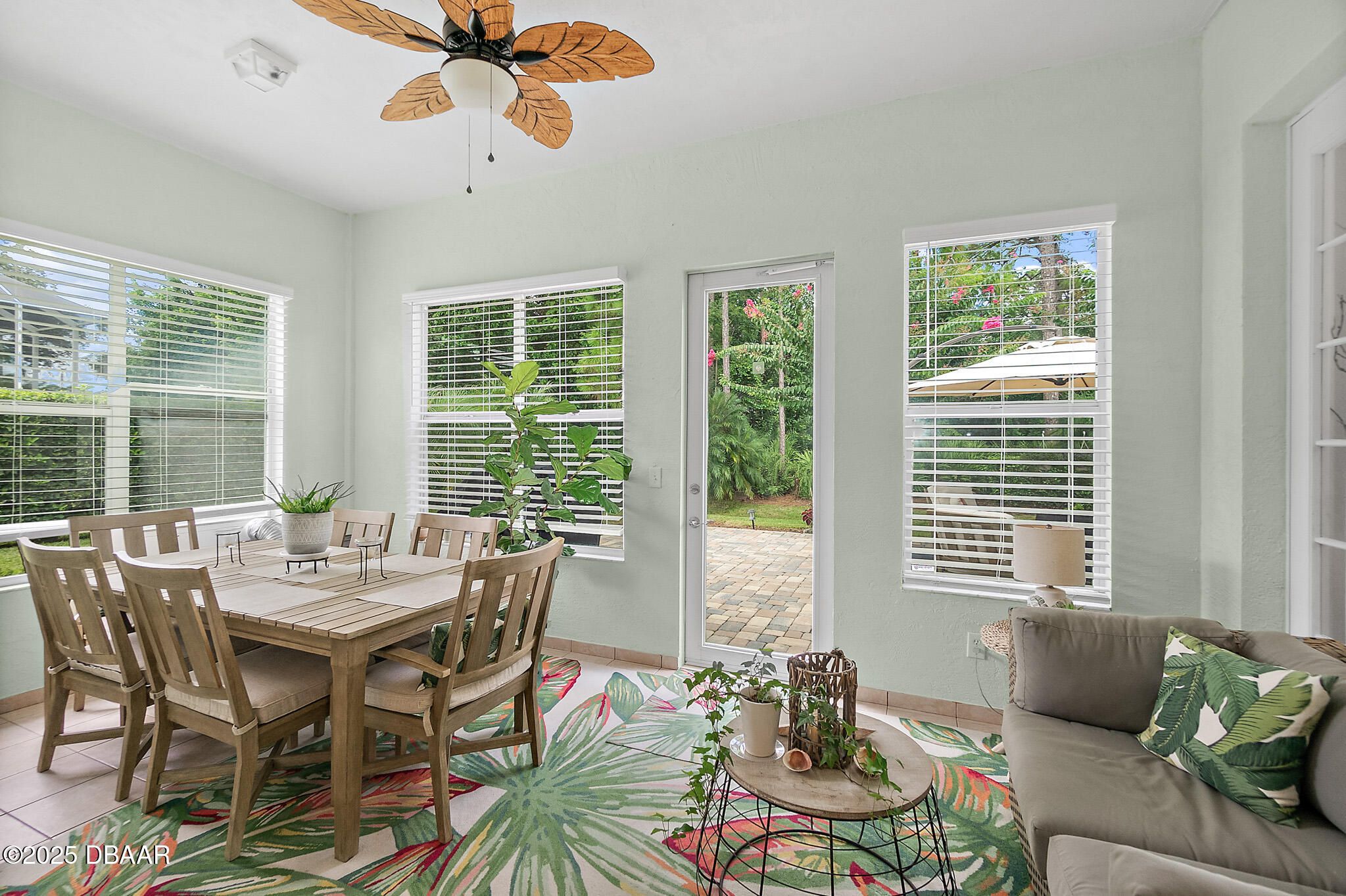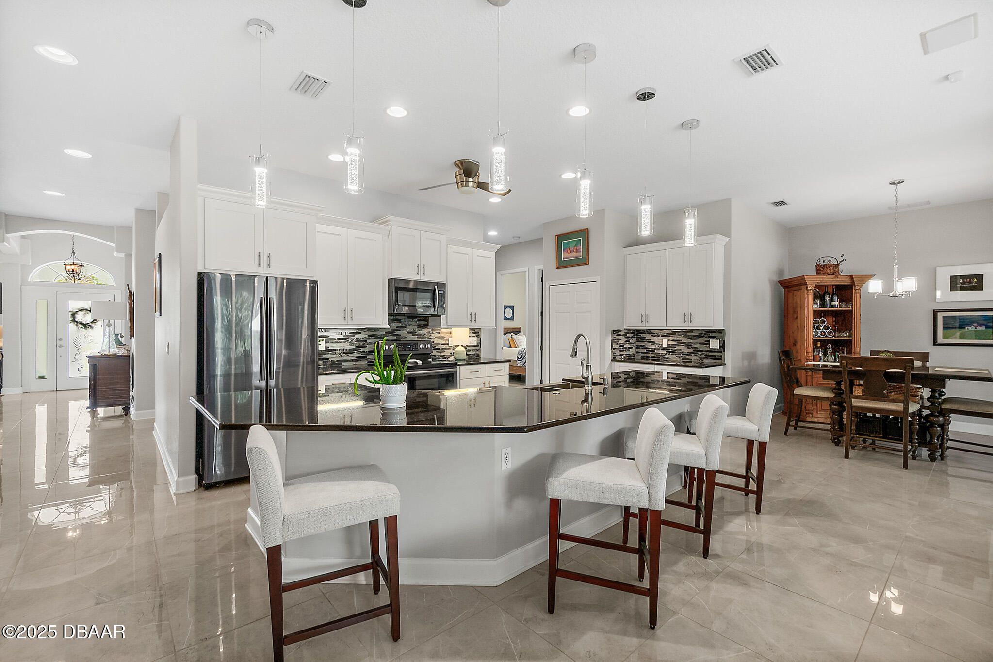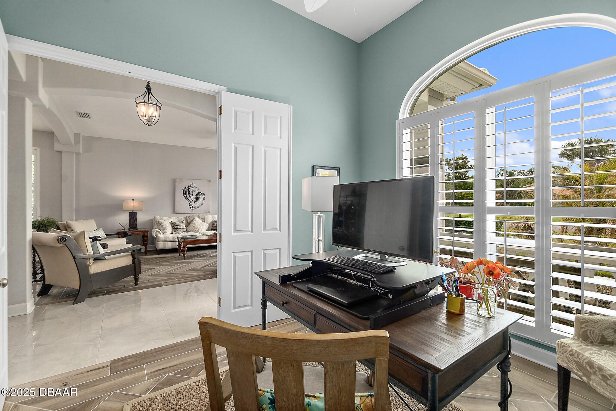Experience a life of unparalleled luxury and serenity. This exquisite 4-bedroom, 2-bath residence is a modern masterpiece perfectly positioned on a sculpted, meticulously manicured, premium and oversized estate lot on over a third of an acre. This home offers a rare and coveted location on the south golf course, 12th tee, within the exclusive, guard gated community of Plantation Bay. This home's expansive layout features two distinct living spaces, with the heart of it all being the chef's kitchen. This culinary dream is designed for both functionality and style, boasting an oversized island, premium stainless steel appliances, and gorgeous granite countertops. It's a space where every detail has been considered for the discerning home chef. The kitchen flows effortlessly into the main living area, which is anchored by a striking, floor-to-ceiling TV and fireplace wall. Adorned with beautiful stone accents and custom cut-outs, this sophisticated focal point is bathed in natural light from a magnificent wall of windows that frames breathtaking views of the outdoor landscape. Just off this space, elegant French doors lead to a spacious, tiled Florida room, seamlessly blending indoor comfort with the beauty of the outdoors. This exceptional design creates a perfect atmosphere for both grand entertaining and quiet relaxation. The front of the home features a second, more private living area, providing a flexible space ideal for a formal sitting room or a library. Currently, the fourth bedroom is utilized as a dedicated home office, offering a quiet retreat from the rest of the home that's perfect for productivity and focus. Escape to your own private sanctuary in the luxury master bedroom and en-suite. This spa-like retreat boasts a deep soaking tub and a sleek frameless step in shower, offering the perfect way to unwind at the end of the day. The luxury continues with a spacious walk-in closet, complete with a custom closet system for optimal organization and storage. Three additional and spacious bedrooms offer flexible living arrangements for family, guests, a dedicated home gym, or hobby room. The outdoor oasis is an entertainer's dream, featuring a sophisticated patio area with pavers, ideal for al fresco dining or simply enjoying the tranquility of your surroundings. Additional notable features include: extended, deep garage, Pella fiberglass insulated windows throughout, new flooring, including 24x24 porcelain tile and herringbone wood tiles (2024), luxury vinyl plank (LVP) in the bedrooms, insulated overhead garage door, new 50-gallon hot water tank (2025), new lighting throughout, new epoxy driveway and porch (2025), plantation shutters. Beyond the home, life in Plantation Bay offers a world-class resort experience. This private, master-planned community features 45 holes of championship golf, two elegant clubhouses with fine dining, a 7,000 sq. ft. spa and fitness center, resort-style pools, and miles of scenic trails. Sports enthusiasts can enjoy Har-Tru tennis courts, pickle ball, bocce ball, basketball, and a full calendar of wellness classes. With optional memberships, you can tailor your lifestyle to focus on golf, social events, or pure relaxation. Located just minutes from pristine Atlantic beaches, shopping, and dining, Plantation Bay perfectly blends luxury, convenience, and natural beauty. This exceptional property is more than just a home; it's a statement of refined living.