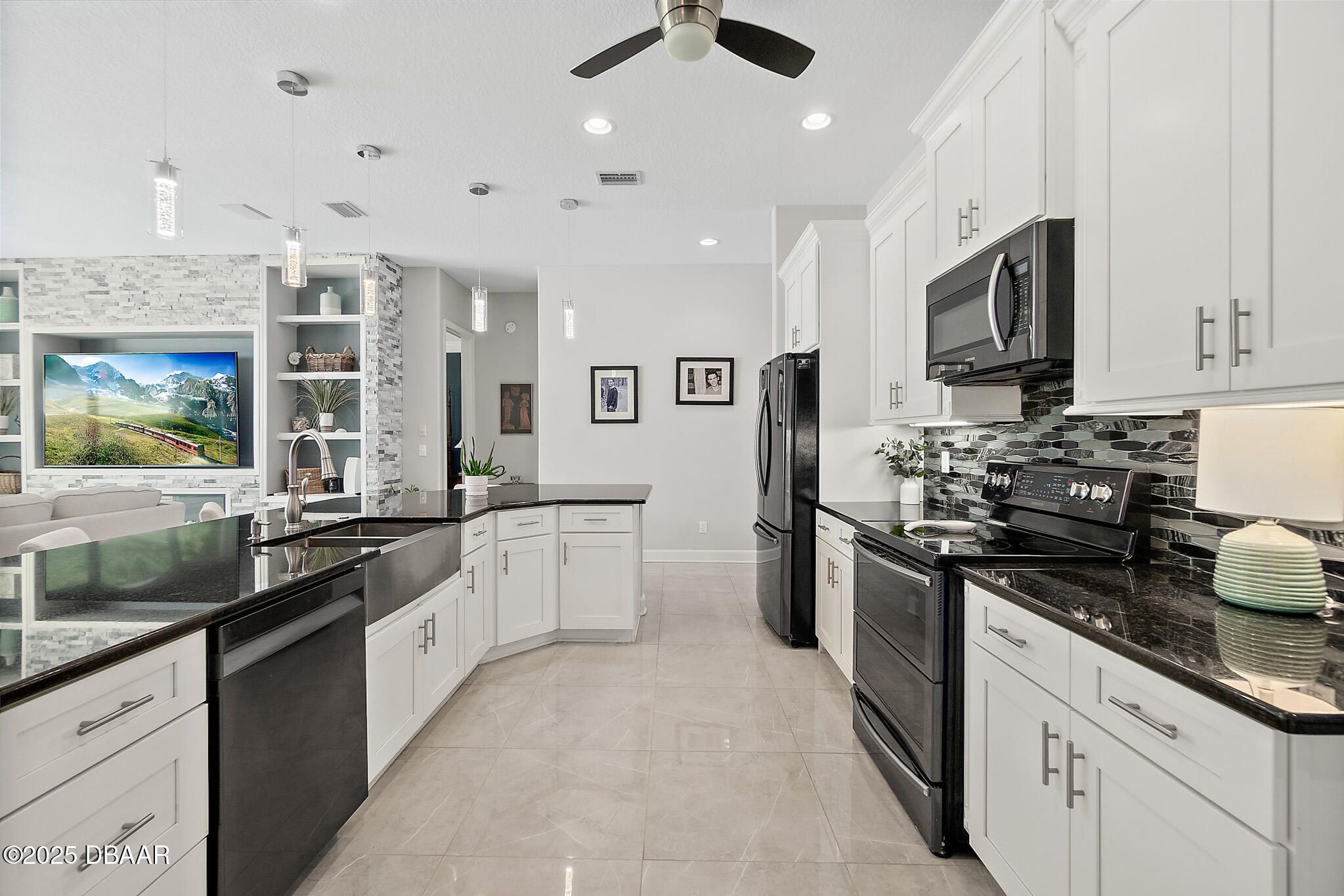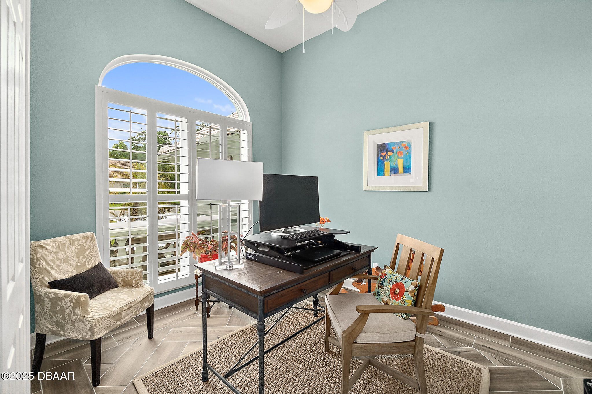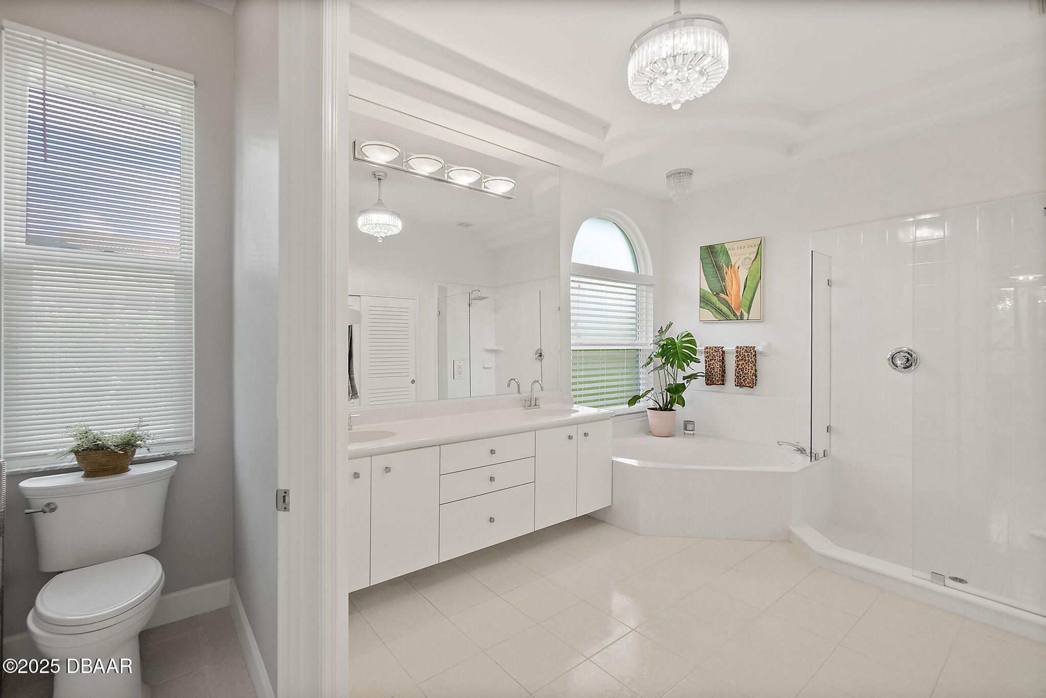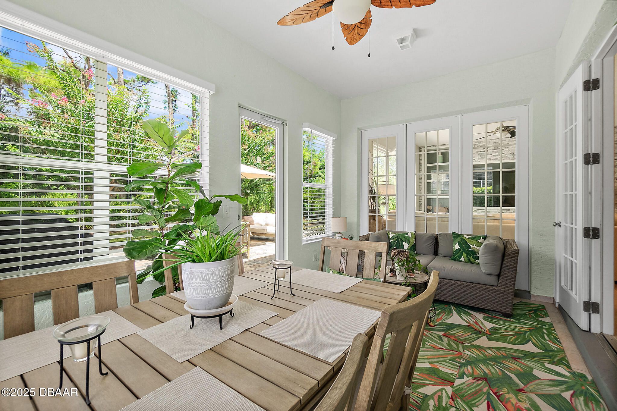 Experience a life of unparalleled luxury and serenity. This exquisite 4-bedroom, 2-bath residence is a modern masterpiece perfectly positioned on a sculpted, meticulously manicured, premium and oversized estate lot on over a third of an acre. This home offers a rare and coveted location on the south golf course, 12th tee, within the exclusive, guard gated community of Plantation Bay. This home's expansive layout features two distinct living spaces, with the heart of it all being the chef's kitchen. This culinary dream is designed for both functionality and style, boasting an oversized island, premium stainless steel appliances, and gorgeous granite countertops. It's a space where every detail has been considered for the discerning home chef. The kitchen flows effortlessly into the main living area, which is anchored by a striking, floor-to-ceiling TV and fireplace wall. Adorned with beautiful stone accents and custom cut-outs, this sophisticated focal point is bathed in natural light from a magnificent wall of windows that frames breathtaking views of the outdoor landscape. Just off this space, elegant French doors lead to a spacious, tiled Florida room, seamlessly blending indoor comfort with the beauty of the outdoors. This exceptional design creates a perfect atmosphere for both grand entertaining and quiet relaxation. The front of the home features a second, more private living area, providing a flexible space ideal for a formal sitting room or a library. Currently, the fourth bedroom is utilized as a dedicated home office, offering a quiet retreat from the rest of the home that's perfect for productivity and focus. Escape to your own private sanctuary in the luxury master bedroom and en-suite. This spa-like retreat boasts a deep soaking tub and a sleek frameless step in shower, offering the perfect way to unwind at the end of the day. The luxury continues with a spacious walk-in closet, complete with a custom closet system for optimal organization and storage. Three additional and spacious bedrooms offer flexible living arrangements for family, guests, a dedicated home gym, or hobby room. The outdoor oasis is an entertainer's dream, featuring a sophisticated patio area with pavers, ideal for al fresco dining or simply enjoying the tranquility of your surroundings. Additional notable features include: extended, deep garage, Pella fiberglass insulated windows throughout, new flooring, including 24x24 porcelain tile and herringbone wood tiles (2024), luxury vinyl plank (LVP) in the bedrooms, insulated overhead garage door, new 50-gallon hot water tank (2025), new lighting throughout, new epoxy driveway and porch (2025), plantation shutters. Beyond the home, life in Plantation Bay offers a world-class resort experience. This private, master-planned community features 45 holes of championship golf, two elegant clubhouses with fine dining, a 7,000 sq. ft. spa and fitness center, resort-style pools, and miles of scenic trails. Sports enthusiasts can enjoy Har-Tru tennis courts, pickle ball, bocce ball, basketball, and a full calendar of wellness classes. With optional memberships, you can tailor your lifestyle to focus on golf, social events, or pure relaxation. Located just minutes from pristine Atlantic beaches, shopping, and dining, Plantation Bay perfectly blends luxury, convenience, and natural beauty. This exceptional property is more than just a home; it's a statement of refined living.