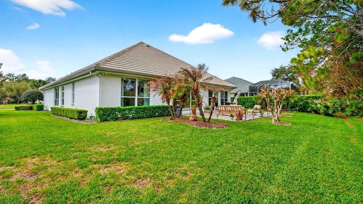 Perfectly positioned on the 12th tee of the south golf course in the guard-gated community of Plantation Bay, this beautifully updated 4-bedroom home sits on an oversized estate lot of more than one third of an acre. Golf course views, generous living spaces, and thoughtful upgrades create a home that feels both elevated and effortless. Inside, the home offers two separate living areas designed for both entertaining and everyday comfort. The heart of the home is the kitchen, featuring an oversized island, granite countertops, and stainless steel appliances. It opens seamlessly to the main living area where a dramatic stone fireplace and media wall anchor the room while large windows bring in natural light and beautiful nature views. French doors lead to a spacious tiled Florida room that blends indoor comfort with outdoor living. From morning coffee to evening gatherings, this space creates the perfect setting to enjoy the peaceful surroundings. The primary suite offers a relaxing retreat with a spa-style bath featuring a soaking tub, frameless walk-in shower, and a custom walk-in closet. Three additional bedrooms provide flexible space for guests, family, a home gym, or office. Step outside to a paver patio designed for entertaining or simply unwinding while overlooking the golf course. Recent upgrades include: • New flooring (2024) with 24x24 porcelain tile and herringbone wood tile • Luxury vinyl plank in bedrooms • Pella fiberglass insulated windows • Extended depth garage • New 50-gallon water heater (2025) • New lighting throughout • Epoxy driveway and porch (2025) • Plantation shutters Residents of Plantation Bay enjoy the opportunity to join a resort-style lifestyle with 45 holes of championship golf, two clubhouses, a 7,000 sq ft fitness and spa center, resort pools, tennis courts, pickleball, bocce, basketball, and miles of scenic walking trails. Optional memberships allow you to tailor the experience to golf, wellness, social life, or relaxation. Just minutes from the Atlantic beaches, shopping, and dining, this home offers the perfect blend of luxury, space, and lifestyle. Square footage received from tax rolls. All information recorded in MLS intended to be accurate but cannot be guaranteed.