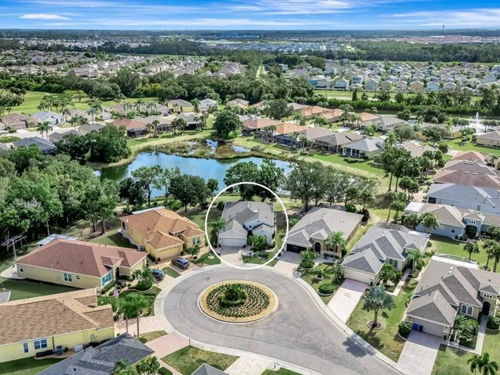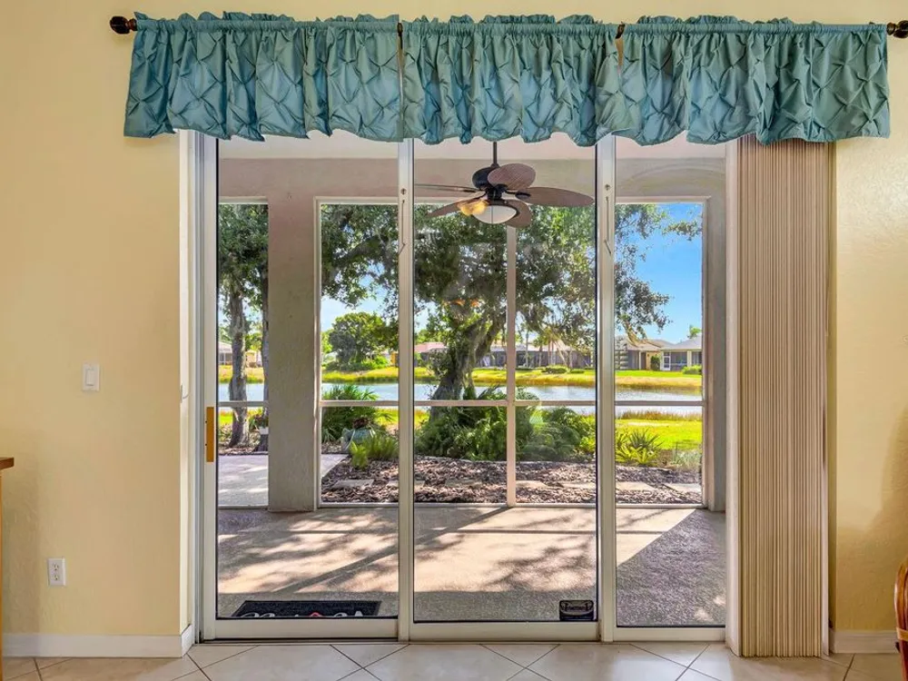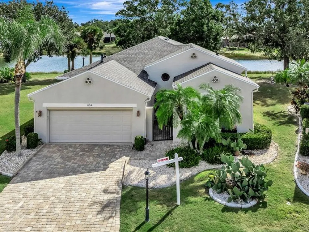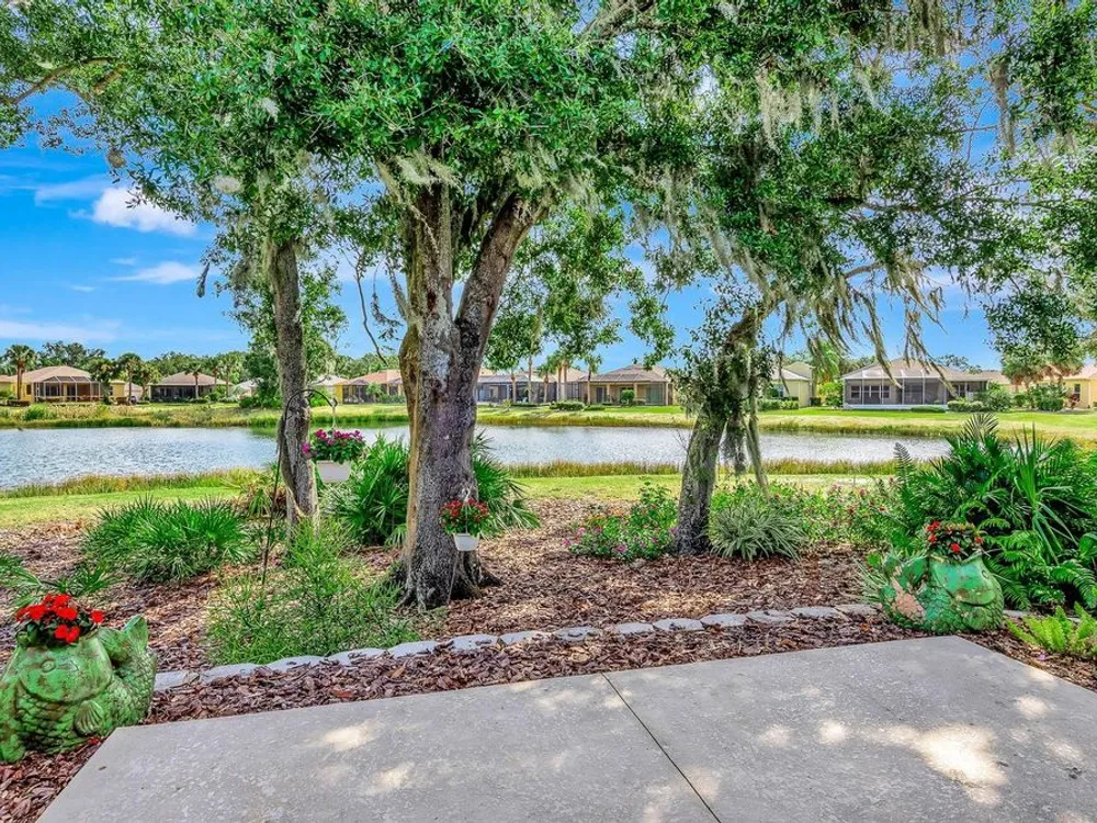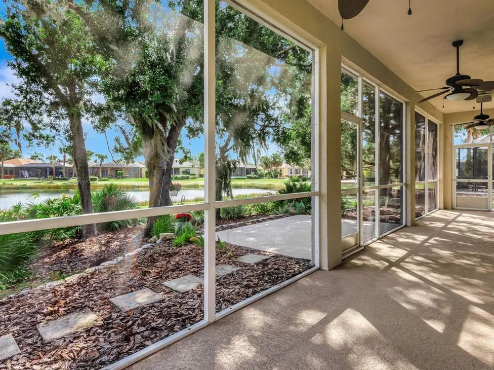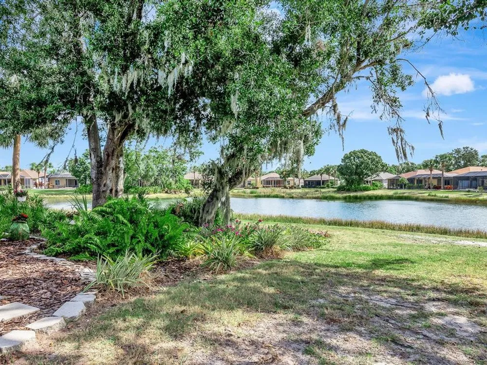 BEAUTIFUL WATER VIEWS – MOVE-IN READY HOME IN RENAISSANCE! Enjoy stunning waterfront views from this beautiful home with pavered driveway and entry, 2-bedroom, 2-bath home with den, located on a quiet cul-de-sac in the highly sought-after 55+ Renaissance community of Sun City Center. Gated front entry way leads to screened and covered front door. NEW ROOF (June 2025) and complete fresh exterior paint (May 2025) – worry-free living! Spacious open floor plan filled with natural light, high ceilings, crown molding, and neutral tones throughout. Modern kitchen with granite countertops, stainless appliances, gas stove,pantry, and breakfast nook overlooking the water. Relax in the inviting living and dining areas featuring tray ceilings and direct access to the lanai. Primary suite offers private lanai access, water views, double closets, and a spa-like bath with dual sinks and walk-in shower.. Expansive screened lanai spanning the entire back of the home plus an additional open-air patio for grilling or sunbathing. 2-car garage with retractable screen, hurricane window coverings, and plantation shutters for added comfort and style. 1-year American Home Shield warranty included! Experience serene Florida living surrounded by nature—perfect for birdwatching enthusiasts with sandhill cranes, herons, and spoonbills visiting daily.Mature landscaping and curbing add to the many desireable home features. As a Renaissance resident, enjoy access to the exclusive members-only clubhouse with restaurant, bar, resort-style pool, fitness center, and more. Homeowners also have full use of Sun City Center amenities, including indoor/outdoor pools, pickleball courts, golf, and countless clubs and events. Located near I-75, this home offers easy access to Tampa, Sarasota beaches, world-class dining, and shopping—all within a golf cart-friendly community! Don’t miss this opportunity to live your best Florida lifestyle with water views, upgrades, and community luxury—schedule your tour today!