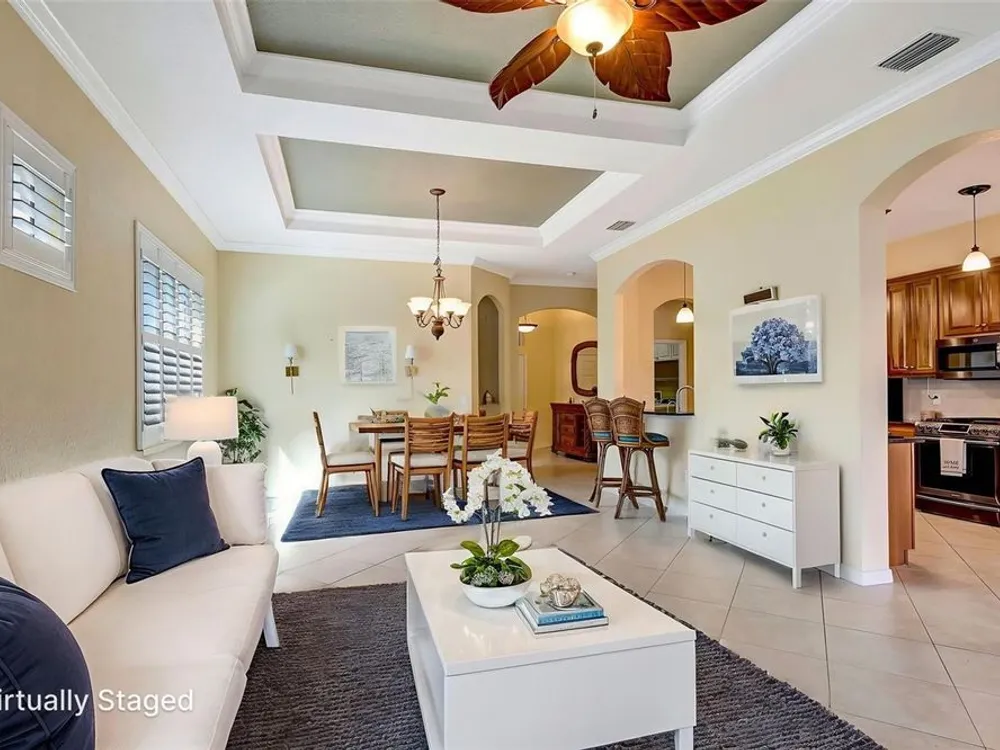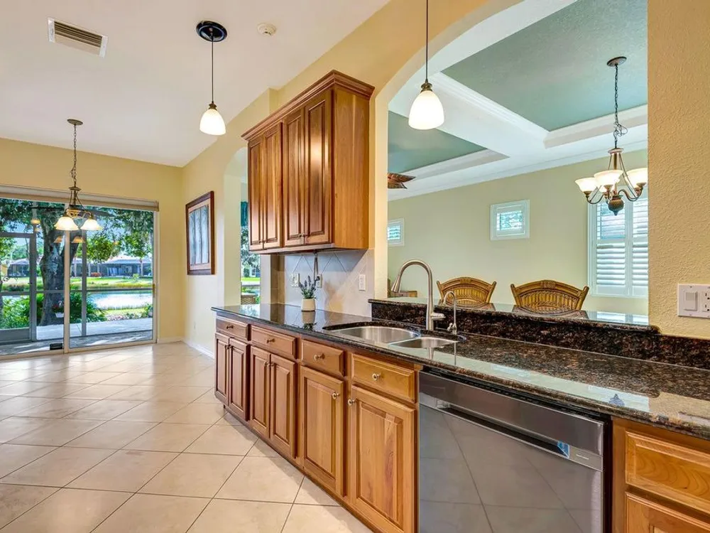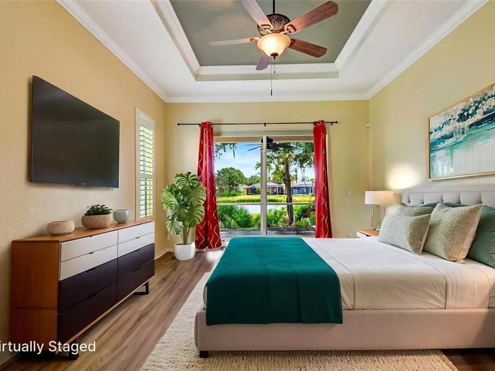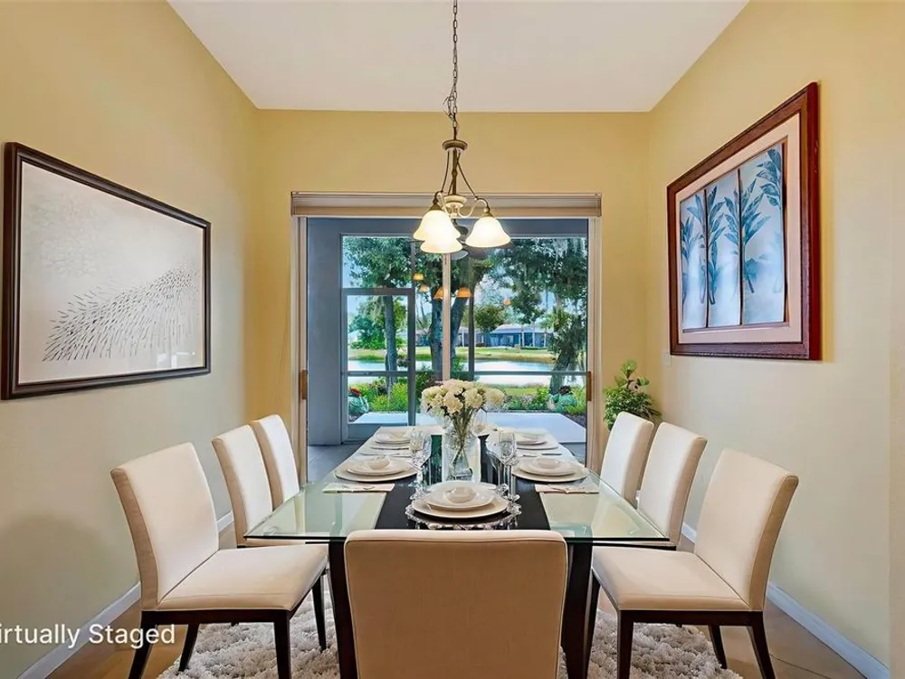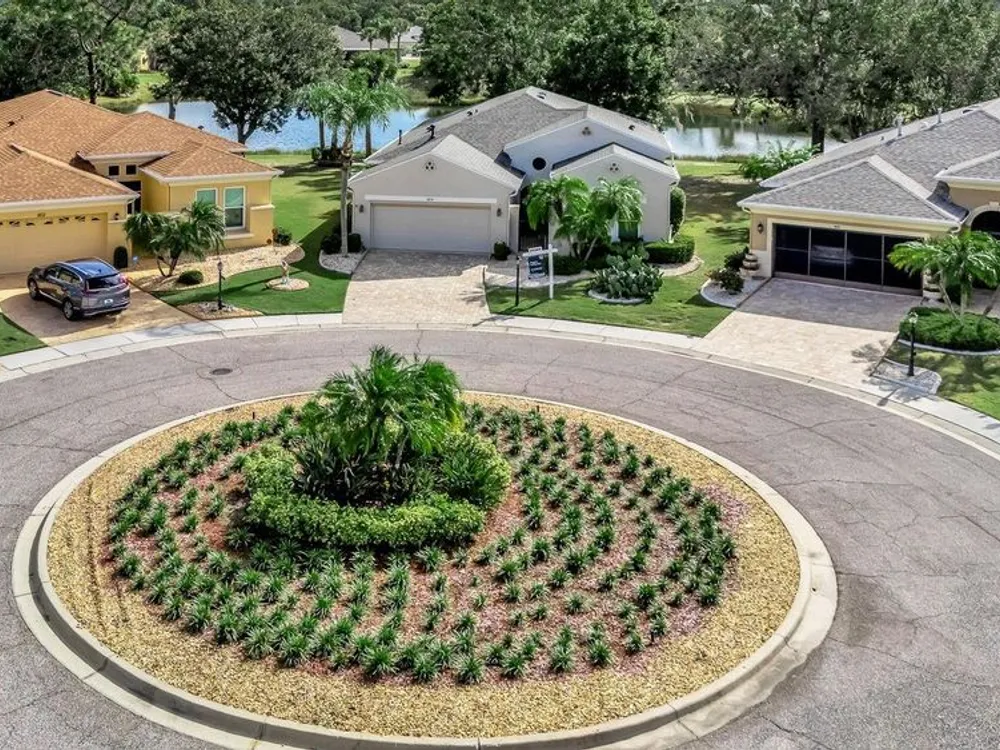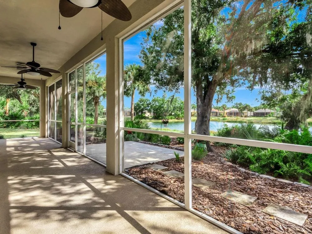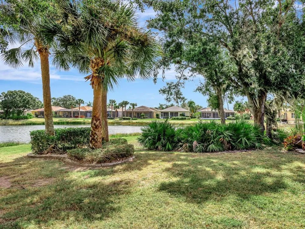 BEAUTIFUL WATER VIEWS – MOVE-IN READY HOME IN RENAISSANCE! Enjoy stunning waterfront views from this beautiful home with pavered driveway and entry, 2-bedroom, 2-bath home with den, located on a quiet cul-de-sac in the highly sought-after 55+ Renaissance community of Sun City Center. Gated front entry way leads to screened and covered front door. NEW ROOF (June 2025) and complete fresh exterior paint (May 2025) – worry-free living! Spacious open floor plan filled with natural light, high ceilings, crown molding, and neutral tones throughout. Modern kitchen with granite countertops, stainless appliances, gas stove,pantry, and breakfast nook overlooking the water. Relax in the inviting living and dining areas featuring tray ceilings and direct access to the lanai. Primary suite offers private lanai access, water views, double closets, and a spa-like bath with dual sinks and walk-in shower.. Expansive screened lanai spanning the entire back of the home plus an additional open-air patio for grilling or sunbathing. 2-car garage with retractable screen, hurricane window coverings, and plantation shutters for added comfort and style. 1-year American Home Shield warranty included! Experience serene Florida living surrounded by nature—perfect for birdwatching enthusiasts with sandhill cranes, herons, and spoonbills visiting daily.Mature landscaping and curbing add to the many desireable home features. As a Renaissance resident, enjoy access to the exclusive members-only clubhouse with restaurant, bar, resort-style pool, fitness center, and more. Homeowners also have full use of Sun City Center amenities, including indoor/outdoor pools, pickleball courts, golf, and countless clubs and events. Located near I-75, this home offers easy access to Tampa, Sarasota beaches, world-class dining, and shopping—all within a golf cart-friendly community! Don’t miss this opportunity to live your best Florida lifestyle with water views, upgrades, and community luxury—schedule your tour today!