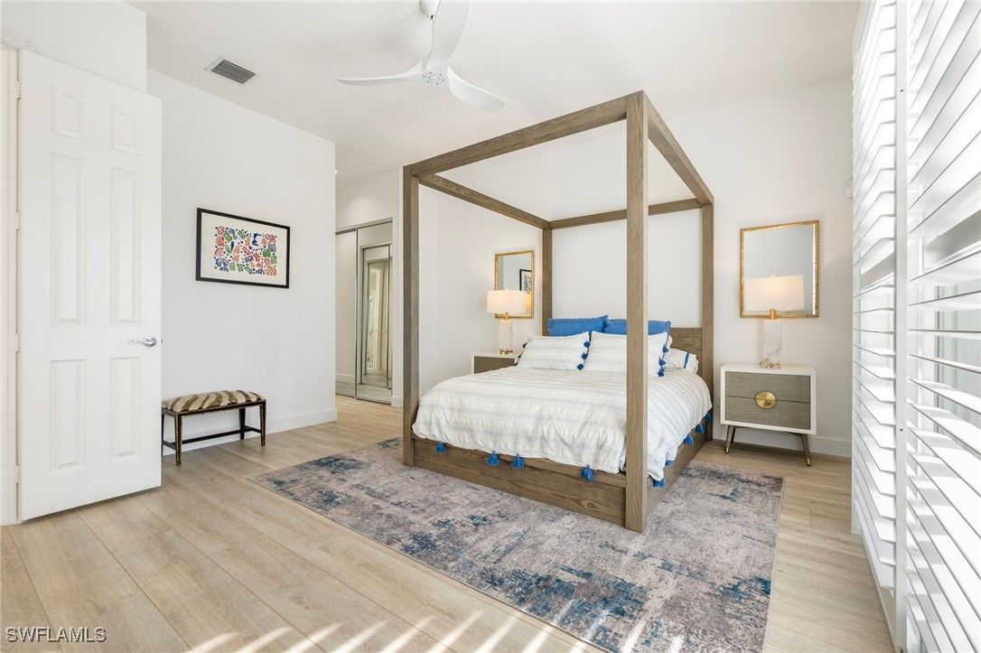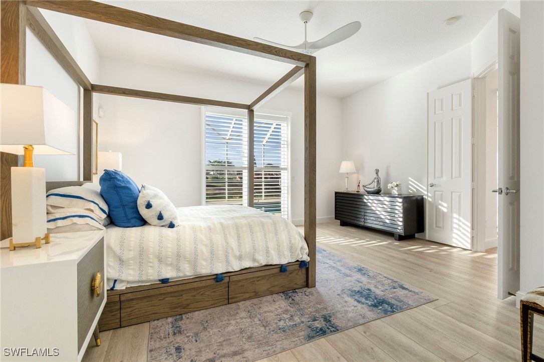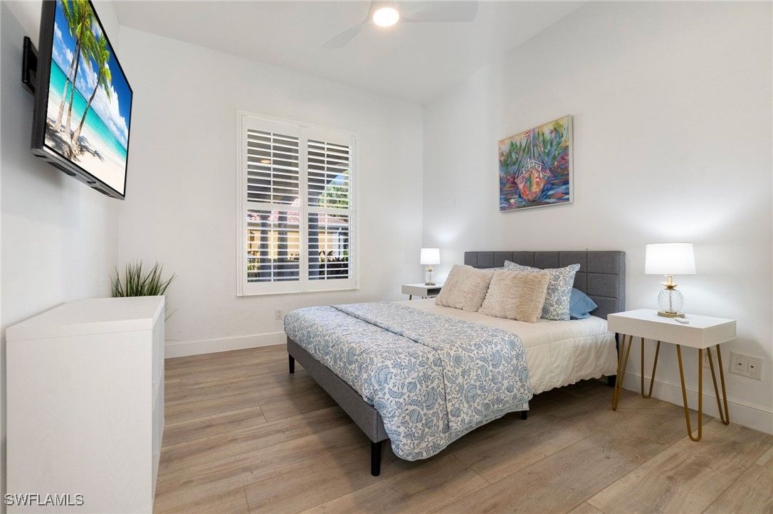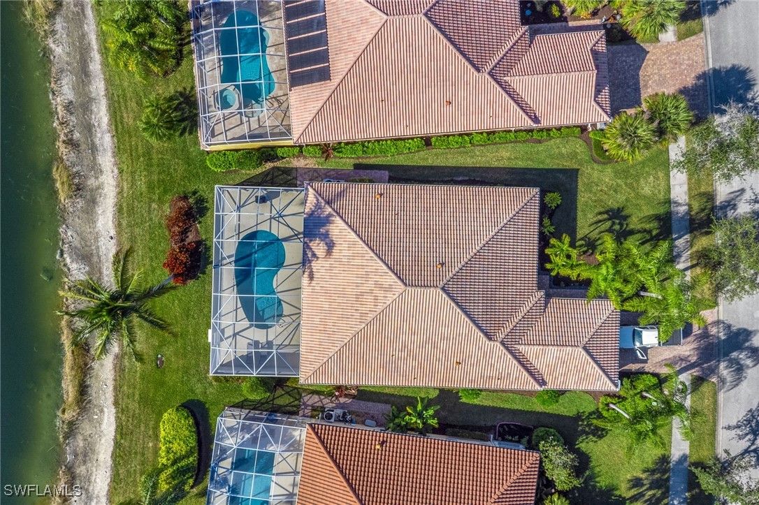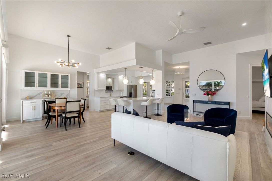 Welcome to this stunning solid poured concrete Carlyle model by Divosta with Southern exposure. This home offers 4 bedrooms plus a den and 3.5 baths. The den could easily be a 5th bedroom. This beautifully updated home features new wide plank laminate wood flooring throughout and an open, light-filled floor plan designed for comfortable Florida living. The updated kitchen showcases crisp white shaker cabinetry, quartz countertops, and ample storage, flowing seamlessly into the spacious great room highlighted by an electric fireplace with custom accent lighting. Step outside to your private outdoor retreat with a screened lanai and pool—perfect for relaxing or entertaining. Additional upgrades include a newer A/C system, newer pool heater, and fresh exterior paint, providing peace of mind and modern appeal. Enjoy resort-style living with Verona Walk’s incredible amenities: a 26,000 square foot town center, resort and lap pools, tennis, pickleball, fitness center, restaurant, gas station, post office, and ice cream shop. Miles of walking/biking trails are all connected by picturesque Venetian bridges. Low HOA fees, manned gated entry, and a prime Naples location just minutes from Marco Island beaches and 5th Avenue shopping making it an ideal location.