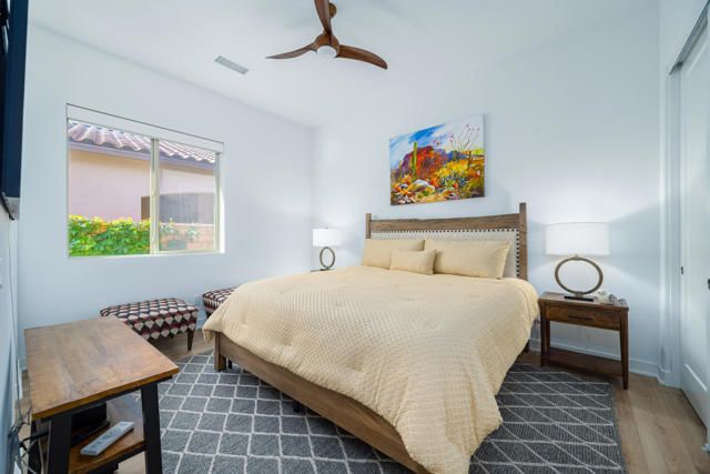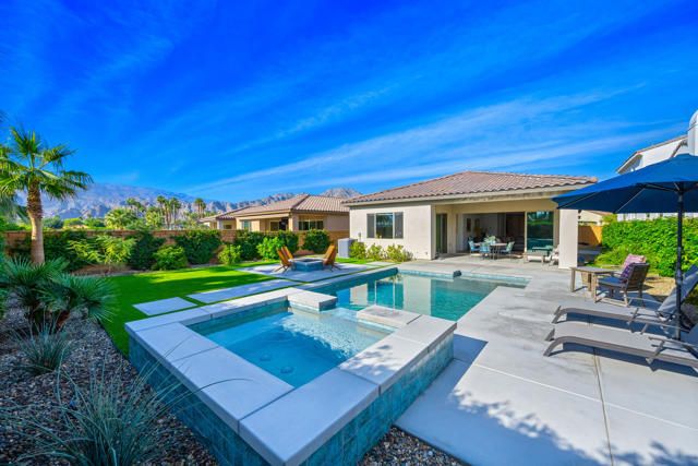 Priced to sell fast! Short term rental approved. Welcome to 80409 Platinum Way, an elegant modern pool home nestled in the heart of PGA West Signature gate. Built in 2021, this contemporary desert home blends clean architectural design with warm, inviting spaces that capture the essence of luxury desert living. From the moment you arrive, you're greeted by sleek lines, a beautifully landscaped exterior, and a sense of tranquility that defines the lifestyle this sought-after community offers.Step inside to discover an open and airy floor plan. The home features three spacious bedrooms and two-and-a-half bathrooms, thoughtfully designed for both comfort and sophistication. The living areas flow seamlessly from the bright great room to the modern chef's kitchen, complete with high-end finishes, stainless steel appliances, and an expansive center island perfect for entertaining. Large windows flood the interior with natural light, while the neutral palette and contemporary fixtures create a timeless elegance throughout.Inside flows to the exterior with a wall of window sliders that open to a true desert oasis. With endless palm trees and mountain views, you have a gorgeous, sparkly, salt water pool and spa and firepit as well as a covered patio area for relaxing.This property provides the ideal balance of privacy and convenience. Whether you're relaxing on the covered patio, hosting guests in the open living space, or enjoying the peaceful mountain views, every detail has been crafted for effortless indoor-outdoor living. The home also includes an attached two-car garage and golf cart garage. It is super efficient with solar that transfers to the buyer at $47 per month, and energy-efficient construction, ensuring comfort and ease in every season. The community also offers a fitness center and oversized pool at no extra charge. Ask us about membership to PGA West. With 6 golf courses, tennis, pickle ball, fitness and dining, its a great option. Make it your private home, or a short term rental. Furnishings negotiable. This is a true winner. Call to view today.