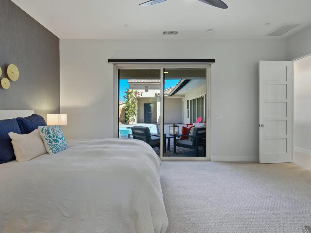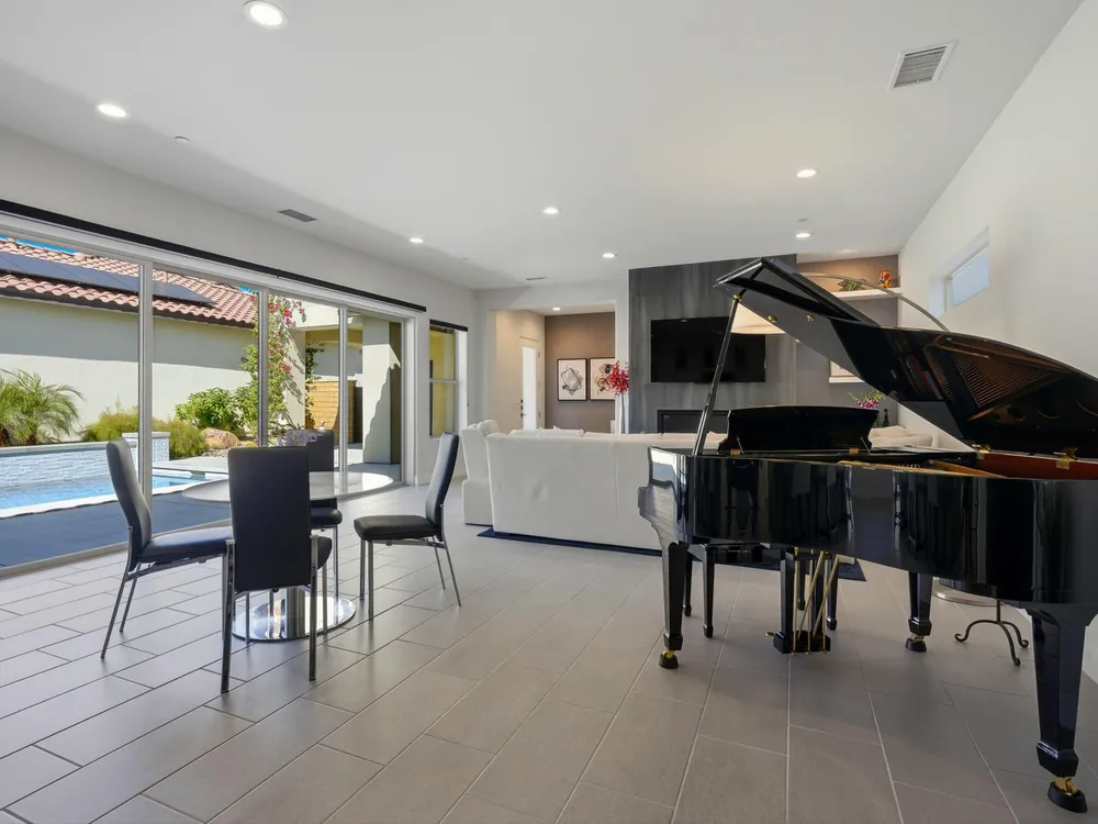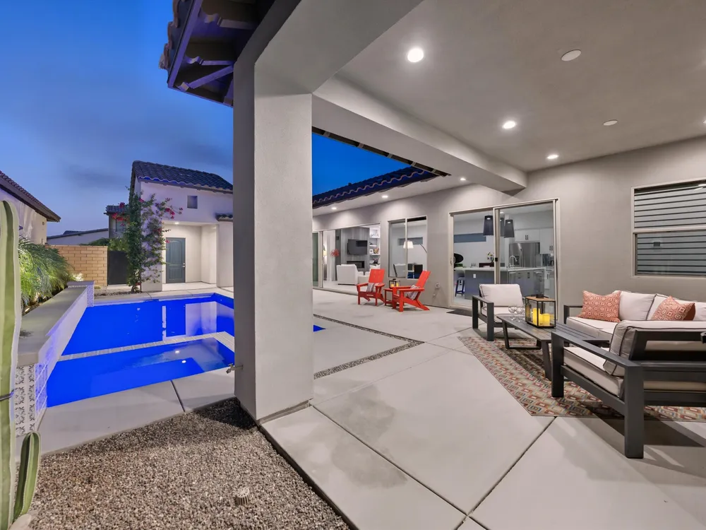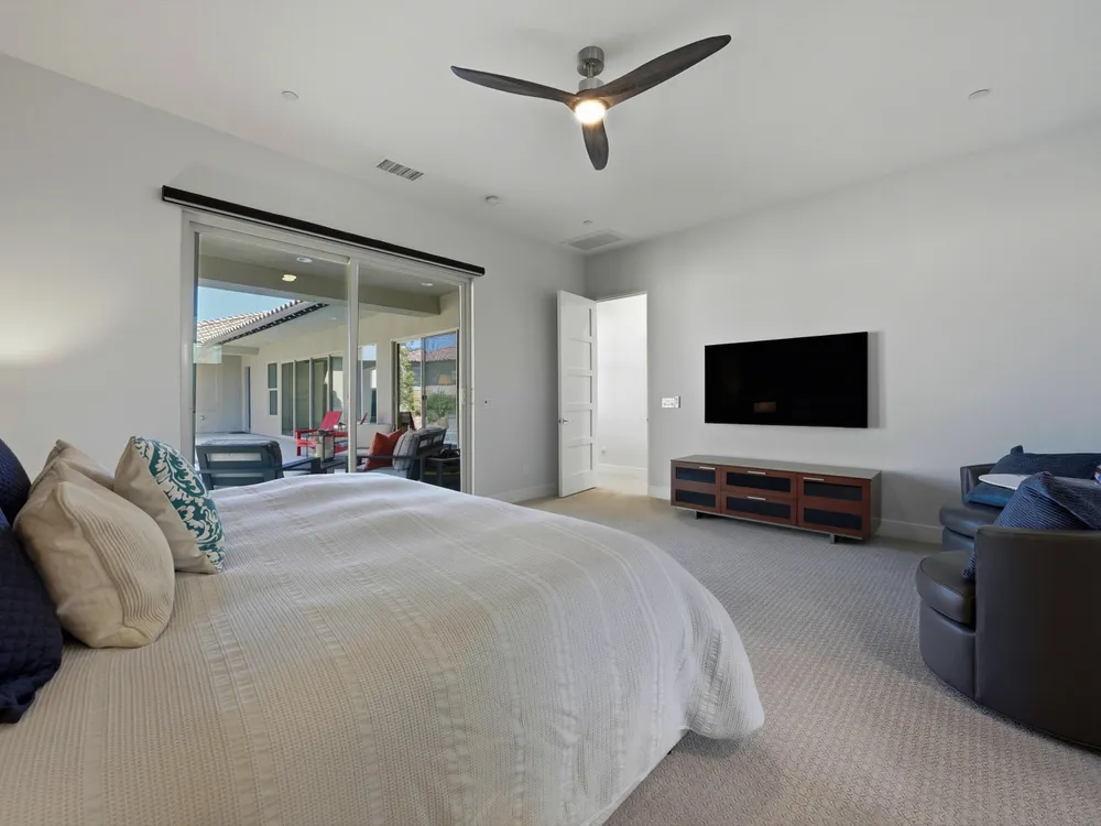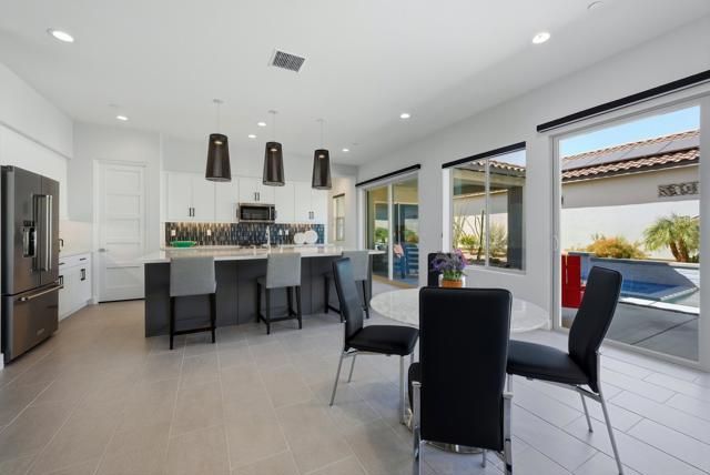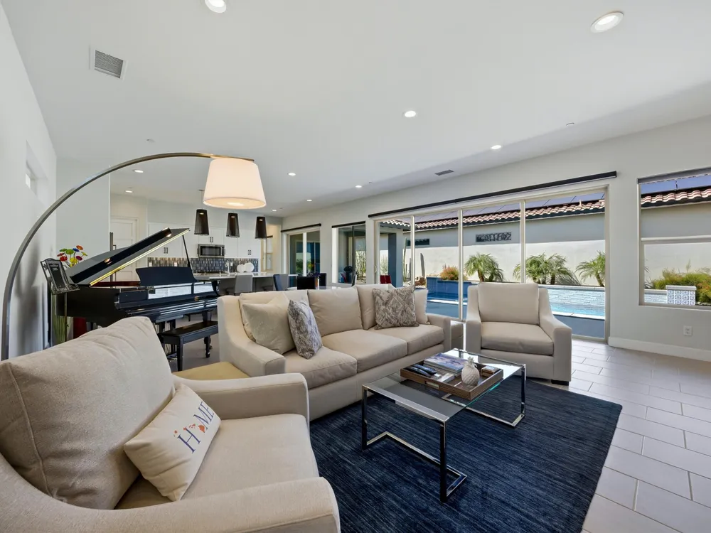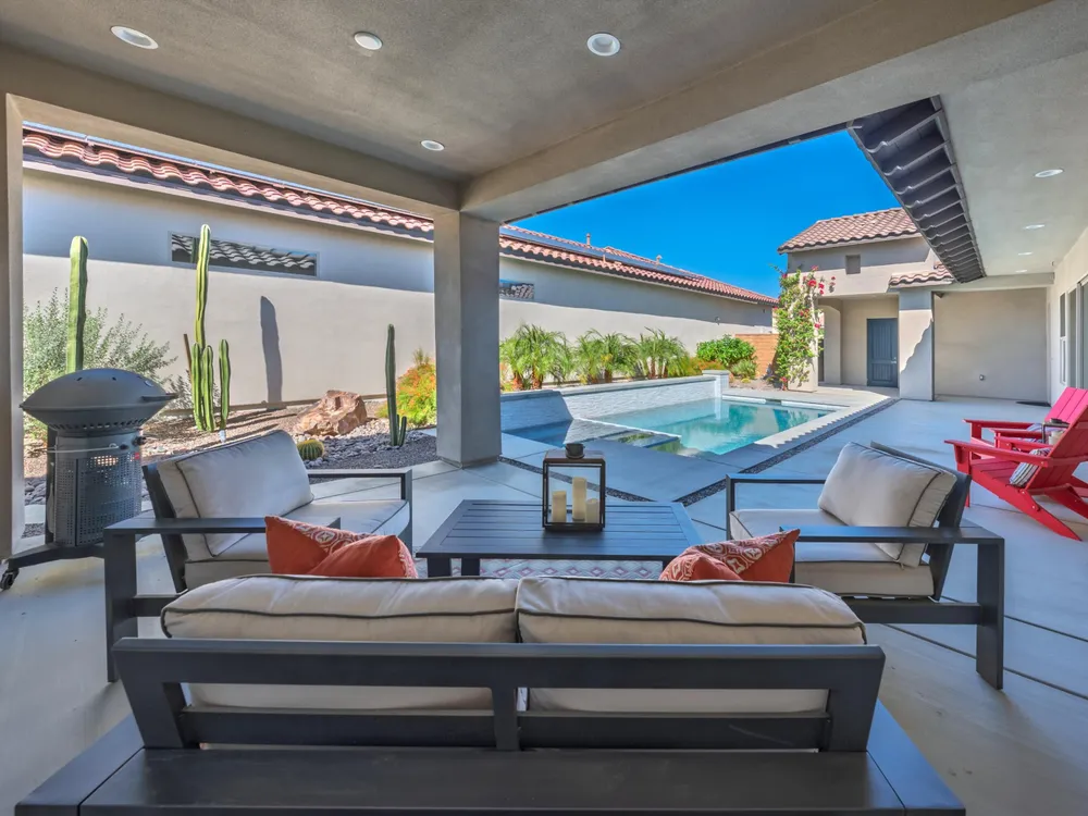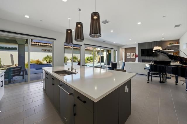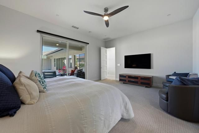 Gorgeous Woodbridge Pacific home on a unique lot in Signature at PGA West with no homes immediately behind providing south mountain views from the new Teserra-designed pool, spa and patio. Built in 2021, this 3-bedroom, 2-bath, 2131 square foot contemporary home is one of the larger single-level floor plans in the community. The great room floor plan features a floor-to-ceiling fireplace surround topped by a flat-screen TV on a unique motorized bracket system. These original owners are full-time desert residents, and they have added over $200,000 in upgrades to make this home uniquely theirs. Things like the 15-foot disappearing wall of glass between the great room and the pool/patio providing a spectacular indoor-outdoor living and entertaining experience; motorized Hunter-Douglas window coverings throughout the home; Solid wood doors; upgraded kitchen cabinetry and appliances; and much more. A full list is available upon request. The 16-panel owned solar system assures easily manageable energy bills in any season. Examples of monthly utility charges are also available on request. The Signature community is one of only three in all of La Quinta that allows short term rentals (STVR) making this an ideal property for investors as well as full or part time occupancy.