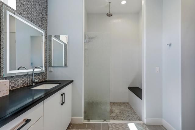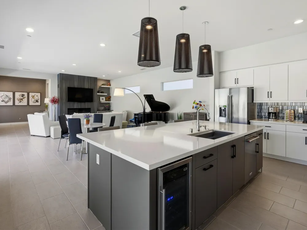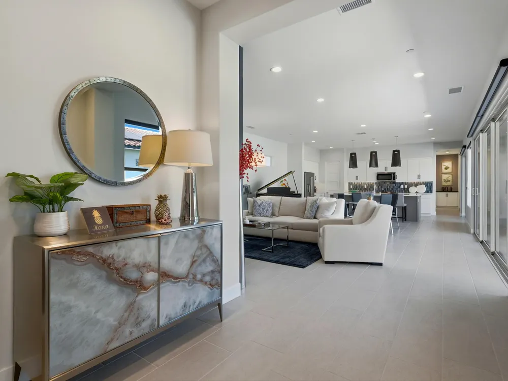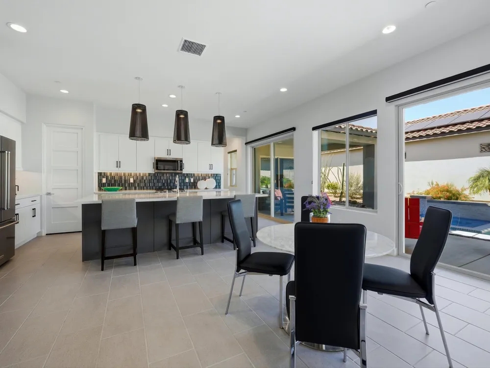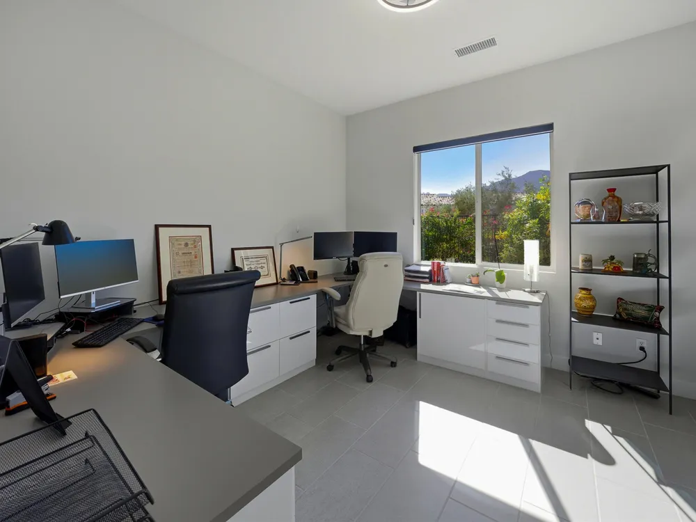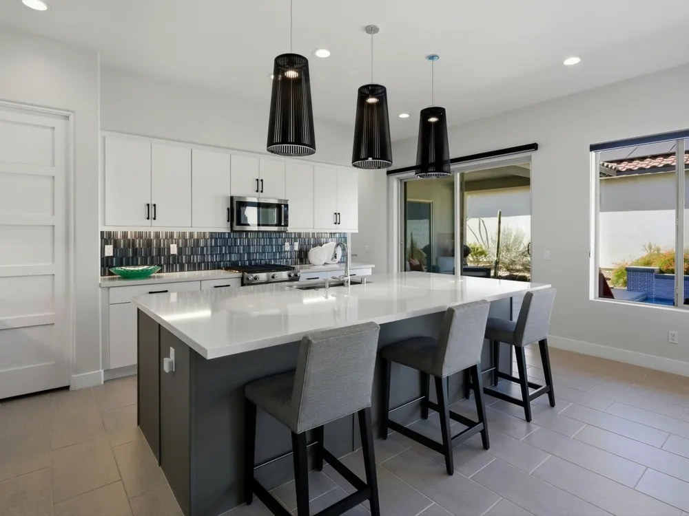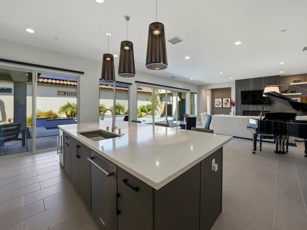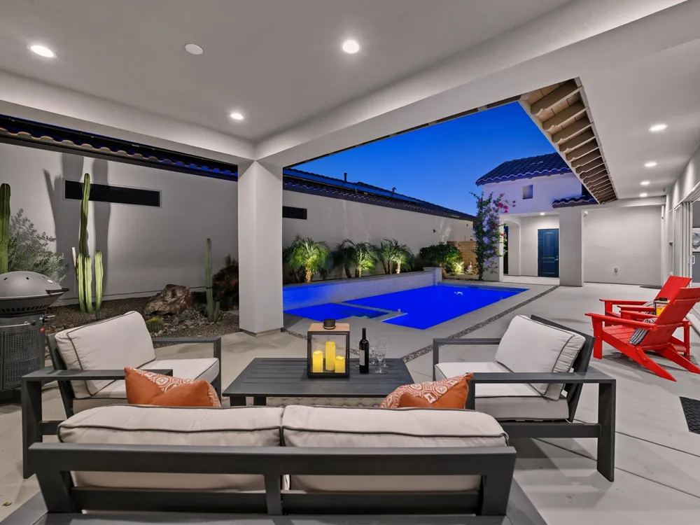 Gorgeous Woodbridge Pacific home on a unique lot in Signature at PGA West with no homes immediately behind providing south mountain views from the new Teserra-designed pool, spa and patio. Built in 2021, this 3-bedroom, 2-bath, 2131 square foot contemporary home is one of the larger single-level floor plans in the community. The great room floor plan features a floor-to-ceiling fireplace surround topped by a flat-screen TV on a unique motorized bracket system. These original owners are full-time desert residents, and they have added over $200,000 in upgrades to make this home uniquely theirs. Things like the 15-foot disappearing wall of glass between the great room and the pool/patio providing a spectacular indoor-outdoor living and entertaining experience; motorized Hunter-Douglas window coverings throughout the home; Solid wood doors; upgraded kitchen cabinetry and appliances; and much more. A full list is available upon request. The 16-panel owned solar system assures easily manageable energy bills in any season. Examples of monthly utility charges are also available on request. The Signature community is one of only three in all of La Quinta that allows short term rentals (STVR) making this an ideal property for investors as well as full or part time occupancy.