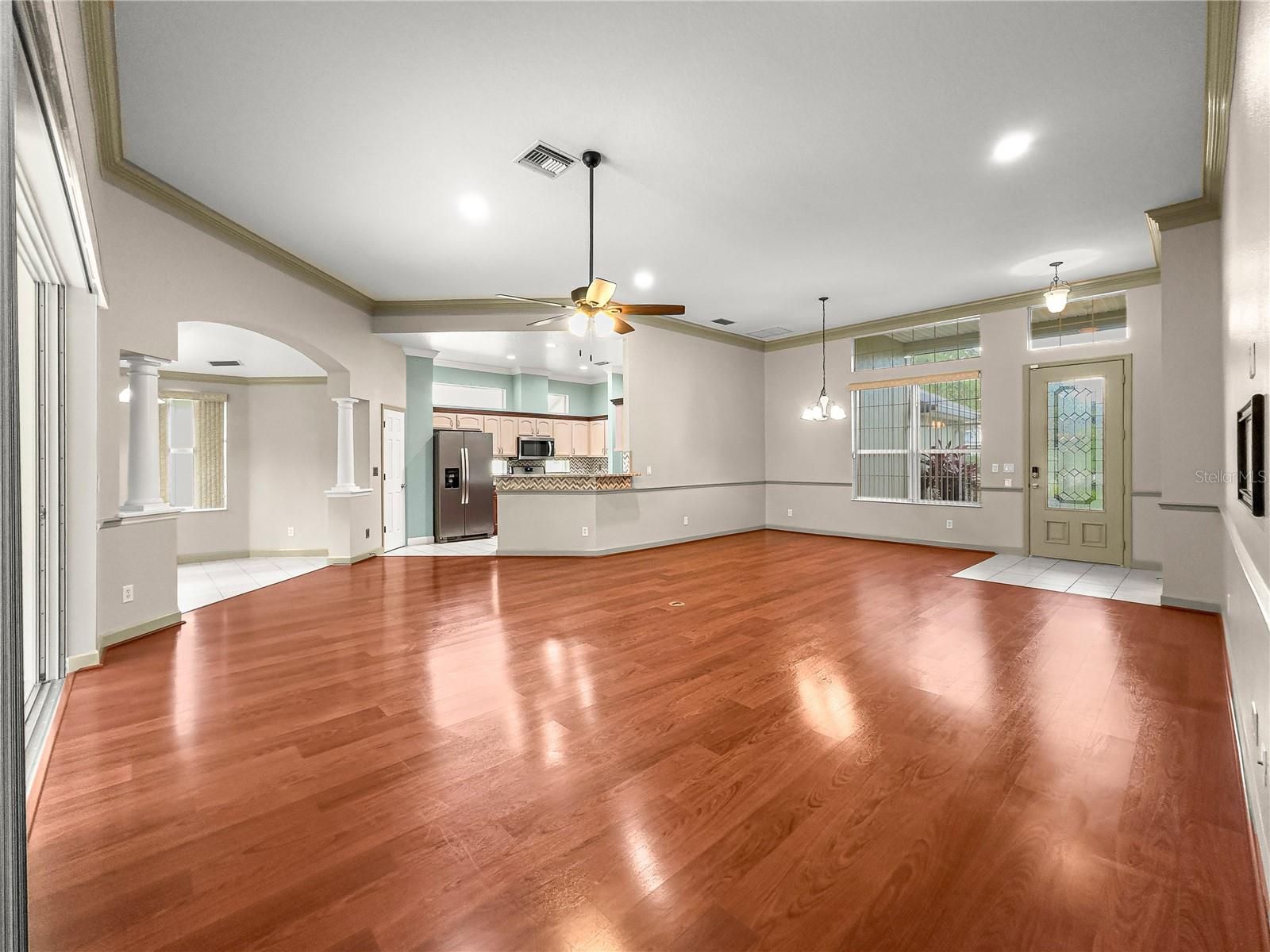 Discover your dream home in the highly sought-after Lakes of Mount Dora community! Nestled in a prime location, this gem is just 35 minutes from Orlando Sanford International Airport and under an hour from Orlando International Airport—perfect for easy travel. You're only a quick 15-minute drive to charming downtown Mount Dora, with its festivals, shops, and lakeside dining, and less than an hour from world-famous Orlando attractions. If you're seeking exceptional value in a vibrant, amenity-rich community, look no further. For a low monthly HOA fee, enjoy included high-speed internet, cable TV, reclaimed irrigation water for your lawn, secure RV/boat/trailer storage, and a stunning state-of-the-art clubhouse featuring a fitness center, resort-style pool, recreation rooms, and so much more. This standout home boasts one of the best yards in the neighborhood—nearly a half-acre lot backing to lush, beautiful landscaping with no rear neighbors for ultimate privacy. Situated on a peaceful, low-traffic street, it offers serene living at its finest. Inside, you'll find 3 spacious bedrooms, 2 baths, and a beautifully updated kitchen complete with stainless steel appliances and elegant granite countertops. Thoughtful upgrades throughout include crown molding in every room, chair railing in the living area, fresh neutral paint, custom closet systems, an extra-long driveway, and premium garage flooring. Don't miss this rare opportunity to own a move-in-ready home in one of Central Florida's most desirable 55+ gated communities. Schedule your showing today—opportunities like this don't last long! This version sounds more inviting and luxurious while highlighting the key selling points (location perks, value, privacy, upgrades). It flows better as a cohesive narrative that draws the reader in and ends with a strong call to action. Let me know if you'd like any tweaks, such as making it shorter, more formal, or adding specific details!
