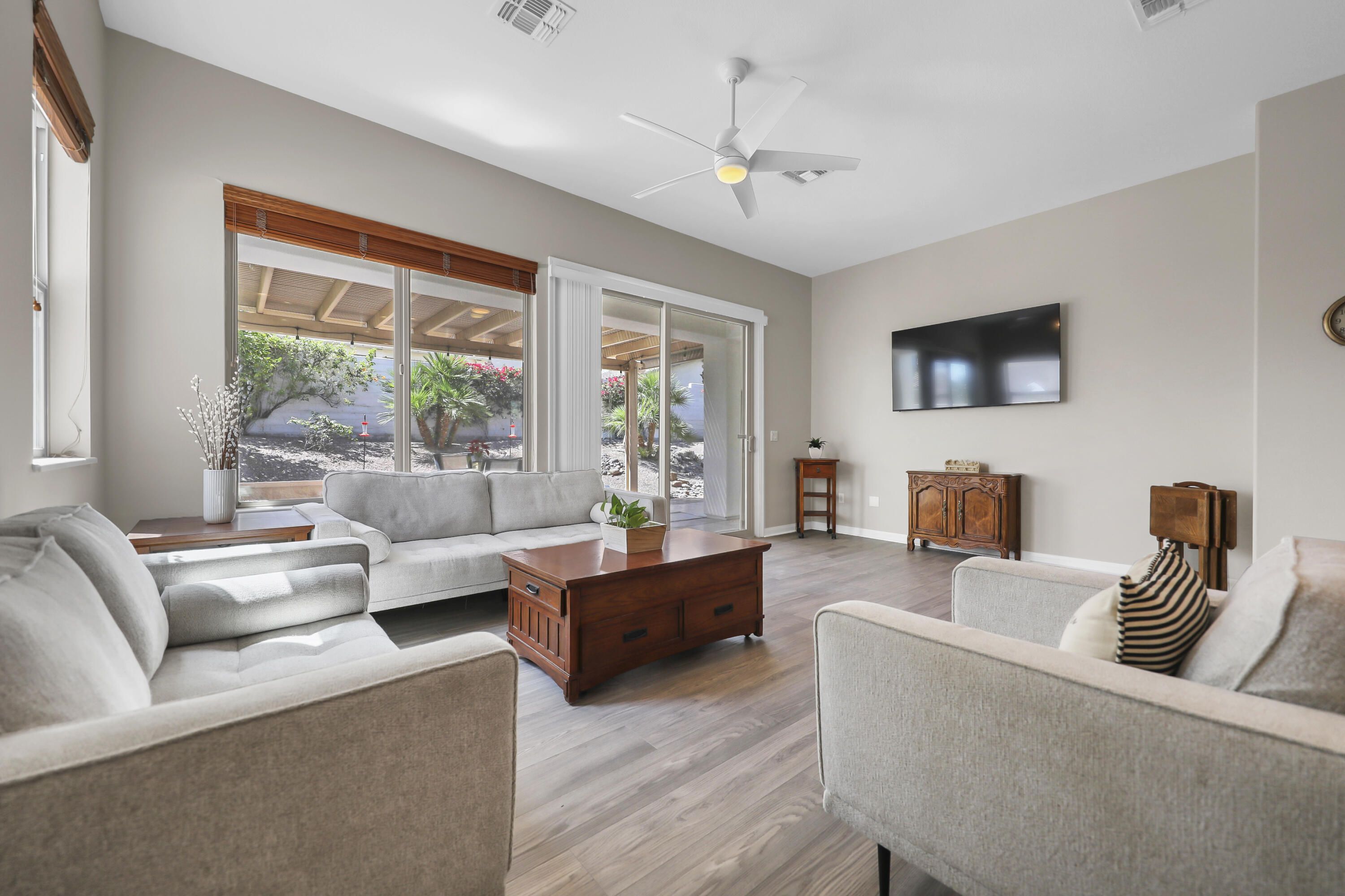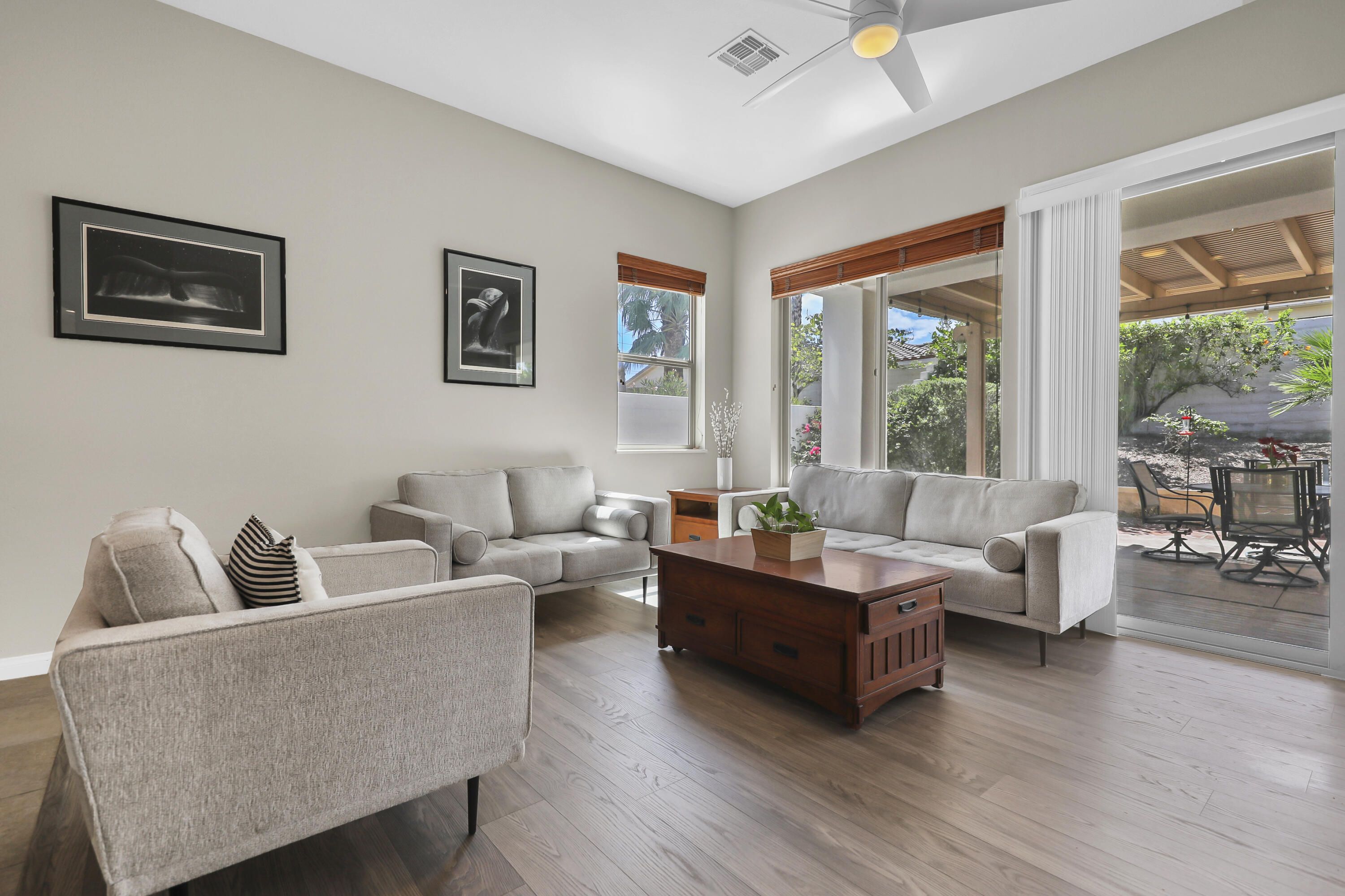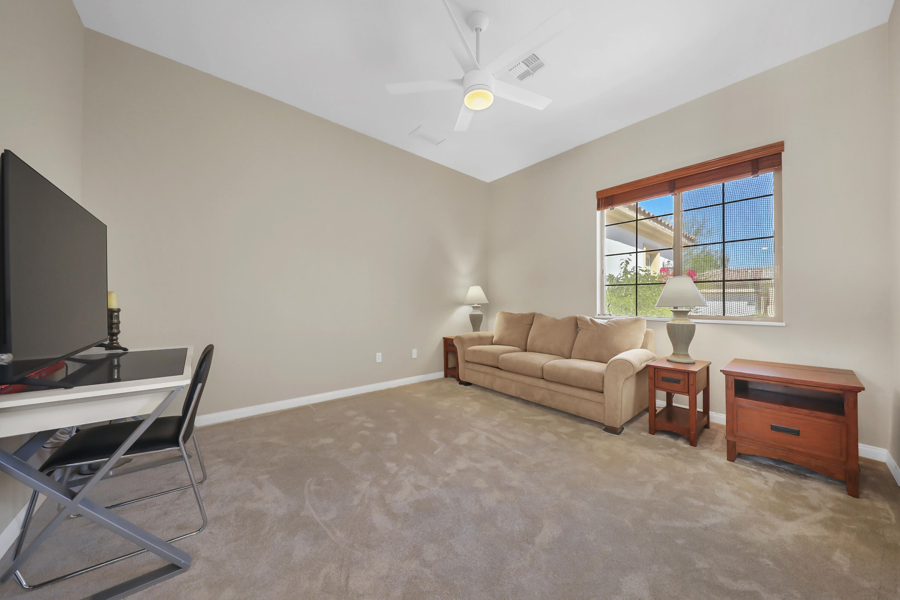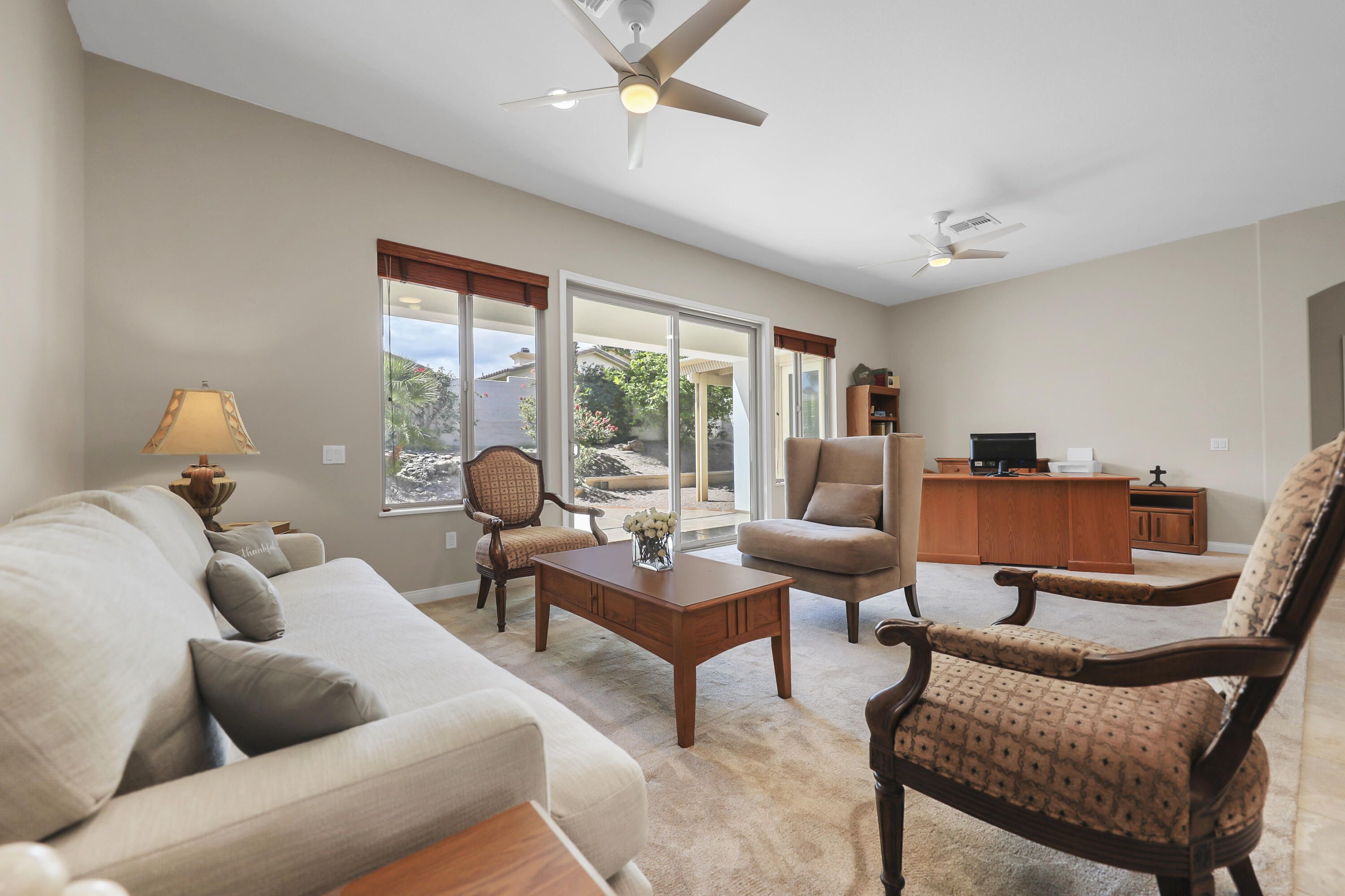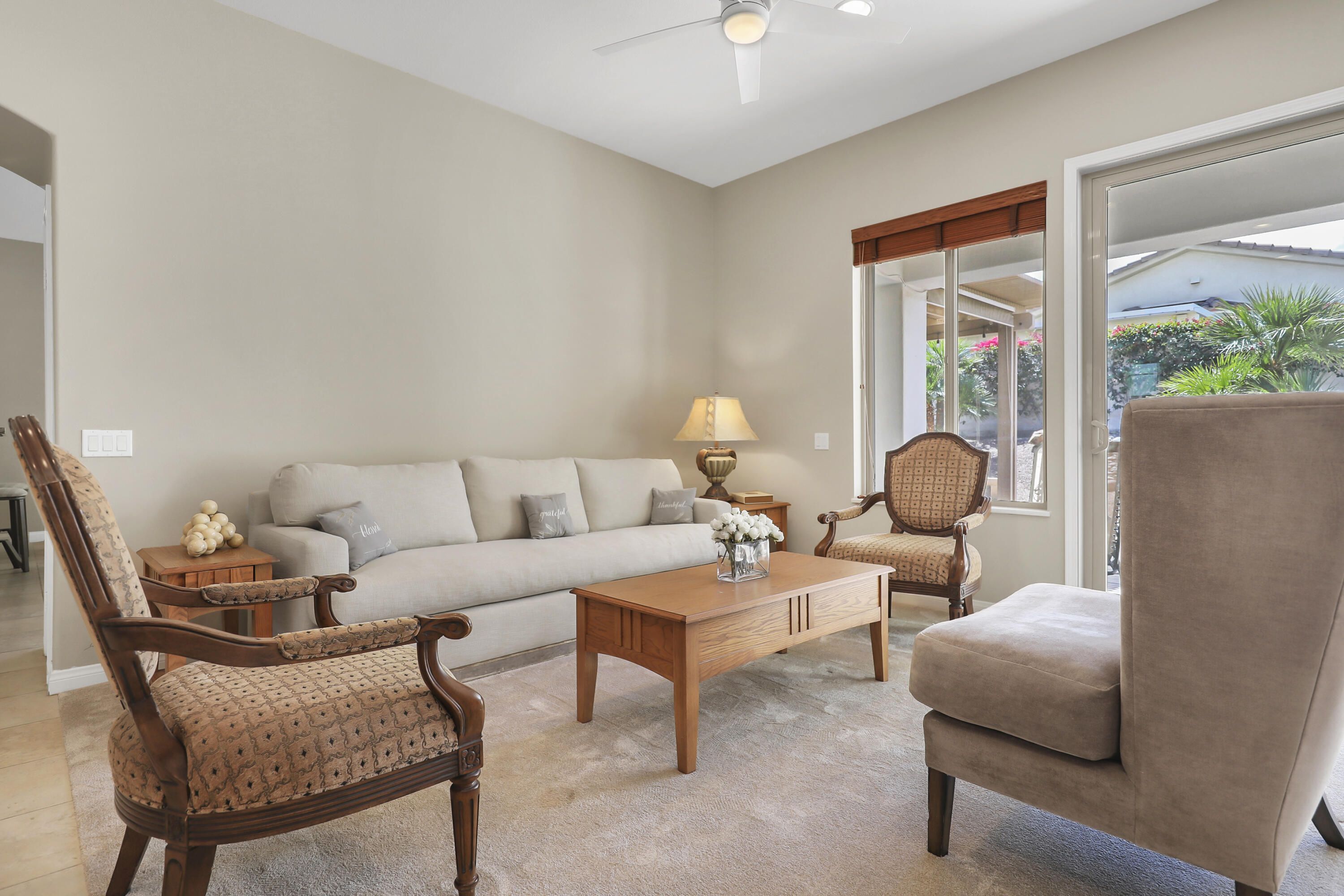 Welcome to 80459 Camino Santa Elise, a beautifully updated residence set behind the gates of Sun City Shadow Hills--one of North Indio's premier active adult communities where lifestyle and comfort come together effortlessly. This highly desirable San Miguel floor plan offers a spacious, open-concept layout designed for both everyday living and entertaining. The heart of the home flows seamlessly from the expansive great room into the kitchen and dining areas, all opening to a covered patio that invites indoor-outdoor living year-round. A private front courtyard creates an additional outdoor retreat--perfect for morning coffee or evening relaxation with added privacy. Inside, the home has been thoughtfully refreshed with new carpet, luxury vinyl plank flooring, fresh interior paint, and updated ceiling fans, giving it a clean, modern feel. The oversized primary suite is a true retreat, featuring dual vanities, a soaking tub, a separate walk-in shower, and an exceptionally large walk-in closet. The secondary bedroom is equally impressive--generously sized with its own ensuite bath and private entrance to the front courtyard, offering ideal flexibility as a detached-style casita for guests. A versatile bonus room provides additional space for a home office, media room, or potential third bedroom. Completing the home is a desirable 3-car garage, offering ample storage and functionality. Living in Sun City Shadow Hills means access to a resort-style lifestyle that goes far beyond the home itself. This gated 55+ community features approximately 3,450 homes, two golf courses, two clubhouses, fitness centers, pools, and over 50 social clubs and activities designed to foster connection and an active lifestyle. Residents enjoy a well-maintained, financially stable HOA and a community known for its safety and peaceful environment. Located in Indio--known as the ''City of Festivals''--the area attracts over 1.4 million visitors annually and continues to experience strong growth, with a population that has reached approximately 100,000 and continues to expand. Indio offers a blend of year-round living and seasonal appeal, with additional winter residents contributing to its vibrant, dynamic atmosphere. The surrounding Coachella Valley provides convenient access to Palm Springs, La Quinta, and world-class dining, shopping, and entertainment--all within a short drive. This is an opportunity to step into one of the desert's most established and amenity-rich communities