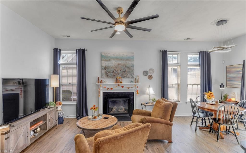 Welcome to this spacious end-unit condo in Greenbrier featuring 3 bedrooms, 2.5 baths, and a 2-car garage. Enjoy an extra-large living room plus a versatile front flex room for dining, office, or guest space. The open great room offers a gas fireplace and flows to a kitchen with island and breakfast area; new sink, faucet, disposer, granite, and backsplash (spring 2025). The first-floor primary suite boasts four closets and a bath with jetted tub, separate shower, and double vanity. Upstairs includes a large room over the garage, two closets, attic storage, and a full hall bath. Private fenced patio for entertaining. Appliances include a new range, refrigerator, and microwave (spring 2025). New sliding door and front loading washer/dyer are an added bonus! The roof is newer and maintained by the association. HVAC serviced with transferable warranty. Schedule your showing today!