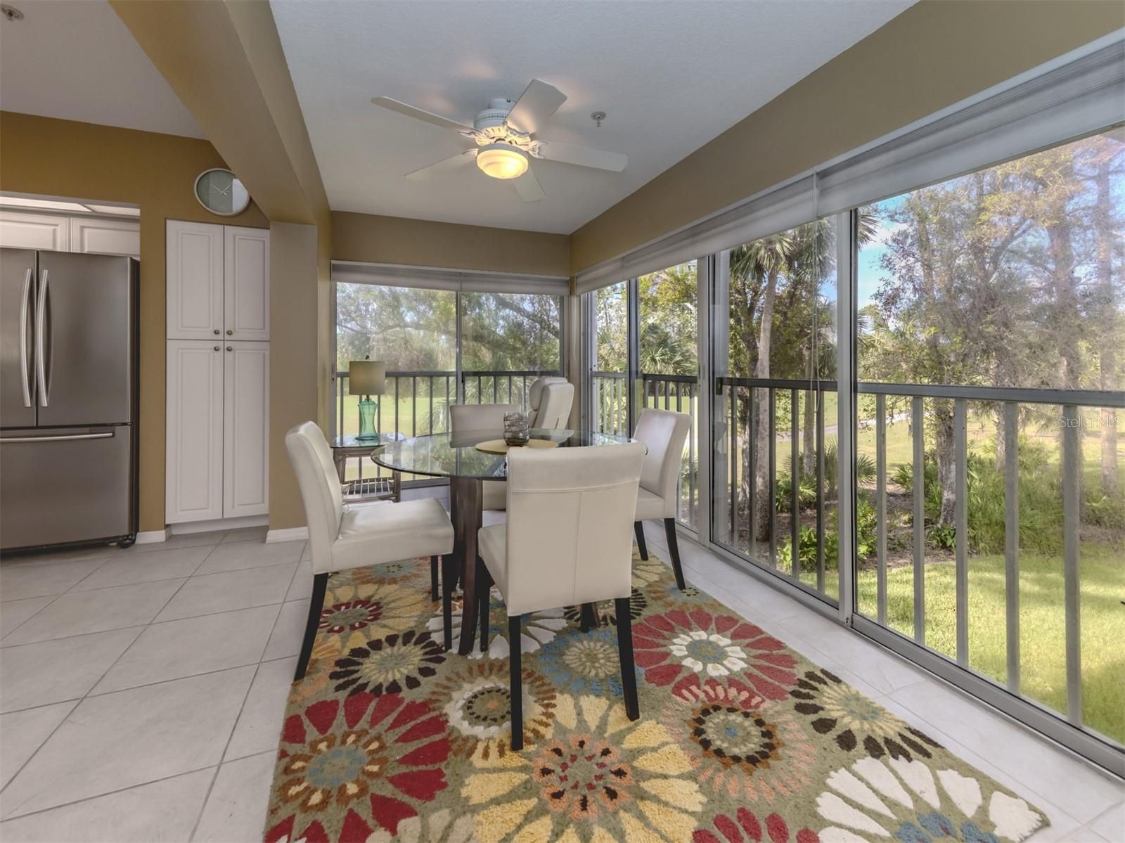This beautiful furnished 2nd floor condo is ideally located in Venice, Florida near the Gulf Coast, fifteen minutes from several Gulf Coast beaches, and historic downtown Venice. Well maintained, maintenance free home in St Andrews Park at the Plantation offers split bedrooms for maximum privacy for owners and guests, and 2 bathrooms. A gracious entry invites you into the welcoming great room. With sweeping views through the trees of the 15th hole of the Bobcat Golf Course at Plantation Golf & Country Club, it feels like your own tree house. Perfect for entertaining or just gathering with family and friends. Open updated kitchen with light cabinetry, breakfast bar, closet pantry and tile backsplash, connects with the dining area and its corner wall of windows overlooking the golf course view. Ceramic flooring throughout. Vaulted ceilings. Spacious primary suite is complete with walk-in closet, double vanities, walk-in shower, and peaceful golf course views. The accommodating guest bedroom has an adjacent bathroom with a tub/shower. Large laundry room with side by side washer and dryer, cabinetry, and a window. The unit includes a one- car carport with storage room for bikes and beach chairs. One of the 3 community pools is conveniently located across the street and the Clubhouse is nearby. Building roofs were replaced in 2019, the HVAC system in 2020, and the water heater in 2025. If you choose to join Plantation Golf and Country Club, a variety of memberships are available. You can pick from a wide selection of events and activities, including golf, pickleball, tennis, bocce,24 hour fitness center, junior Olympic pool, and a full social calendar with options for everyone. Location is perfect with Florida Gulf beaches, downtown Venice, downtown Wellen Park, and an endless array of restaurants, shopping, services, events, and recreation nearby. Here is your opportunity to experience Florida living to the fullest!