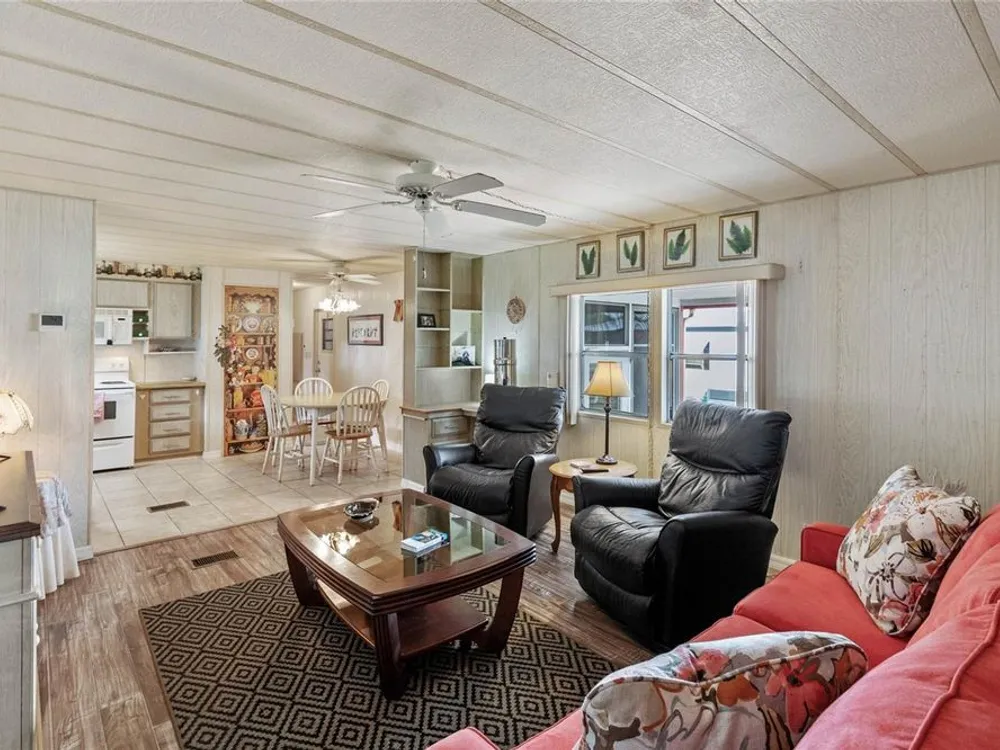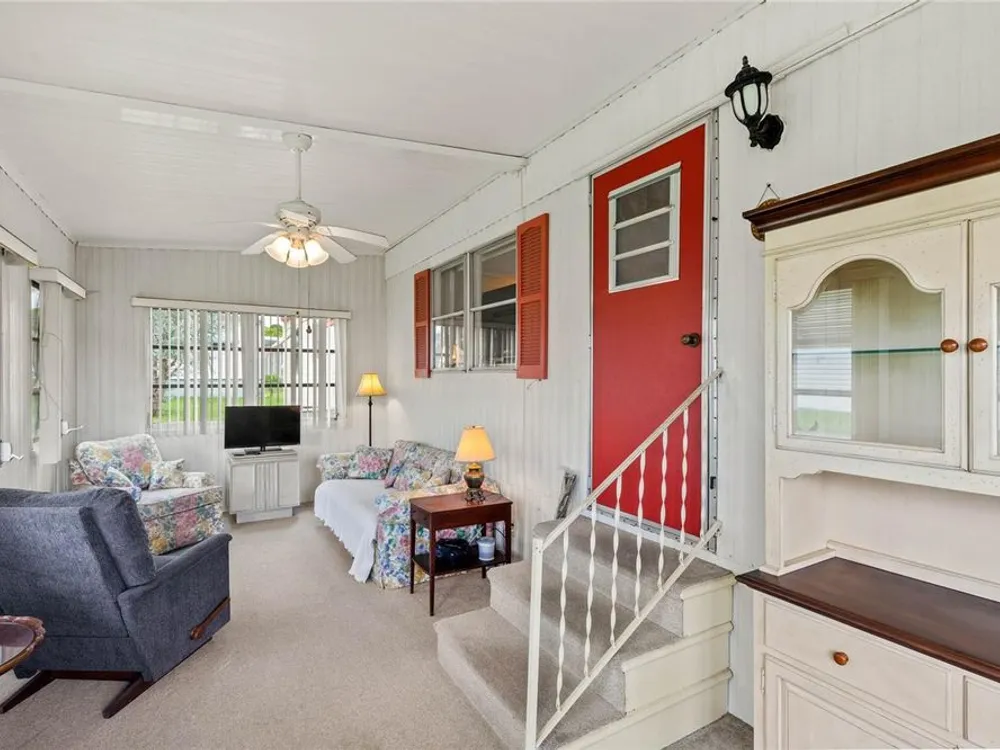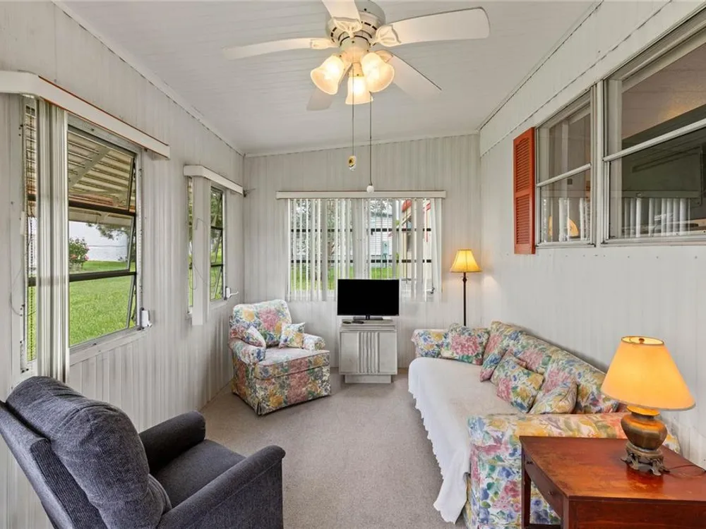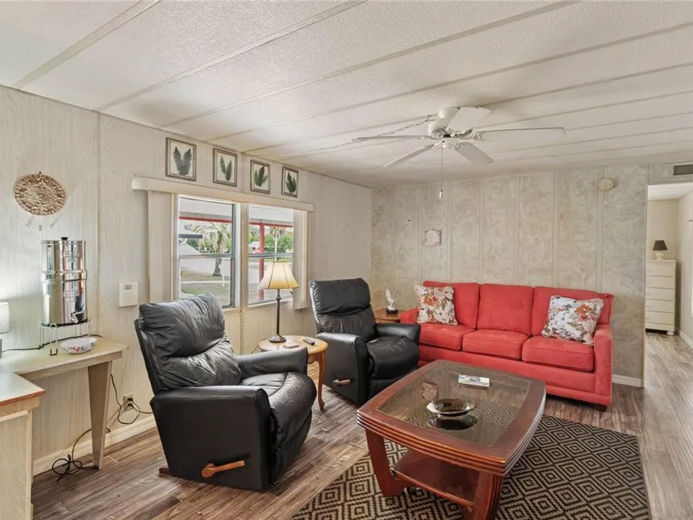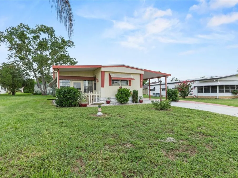 PRICE REDUCED! This property definitely is a fantastic opportunity to own a move-in ready home in sunny Florida. Lovely furniture enhances the interior and shows comfort throughout the home. The recent upgrades like the HVAC system (installed in 2022) and the new roof (2019) provide extra peace of mind regarding maintenance and reliability. The fully furnished interior and amenities truly add convenience, while features like the large lanai and inviting porch enhance outdoor living and relaxation. The separate golf cart garage is a great feature for golf enthusiasts and adds to the property's appeal as a leisure-oriented retreat. Additionally, the leaf filter installation helps reduce outdoor maintenance, which is a nice touch for busy homeowners or renters. Overall, it seems like an ideal blend of comfort, functionality, and leisure, making it a strong investment or a perfect personal getaway. Would you like further details?