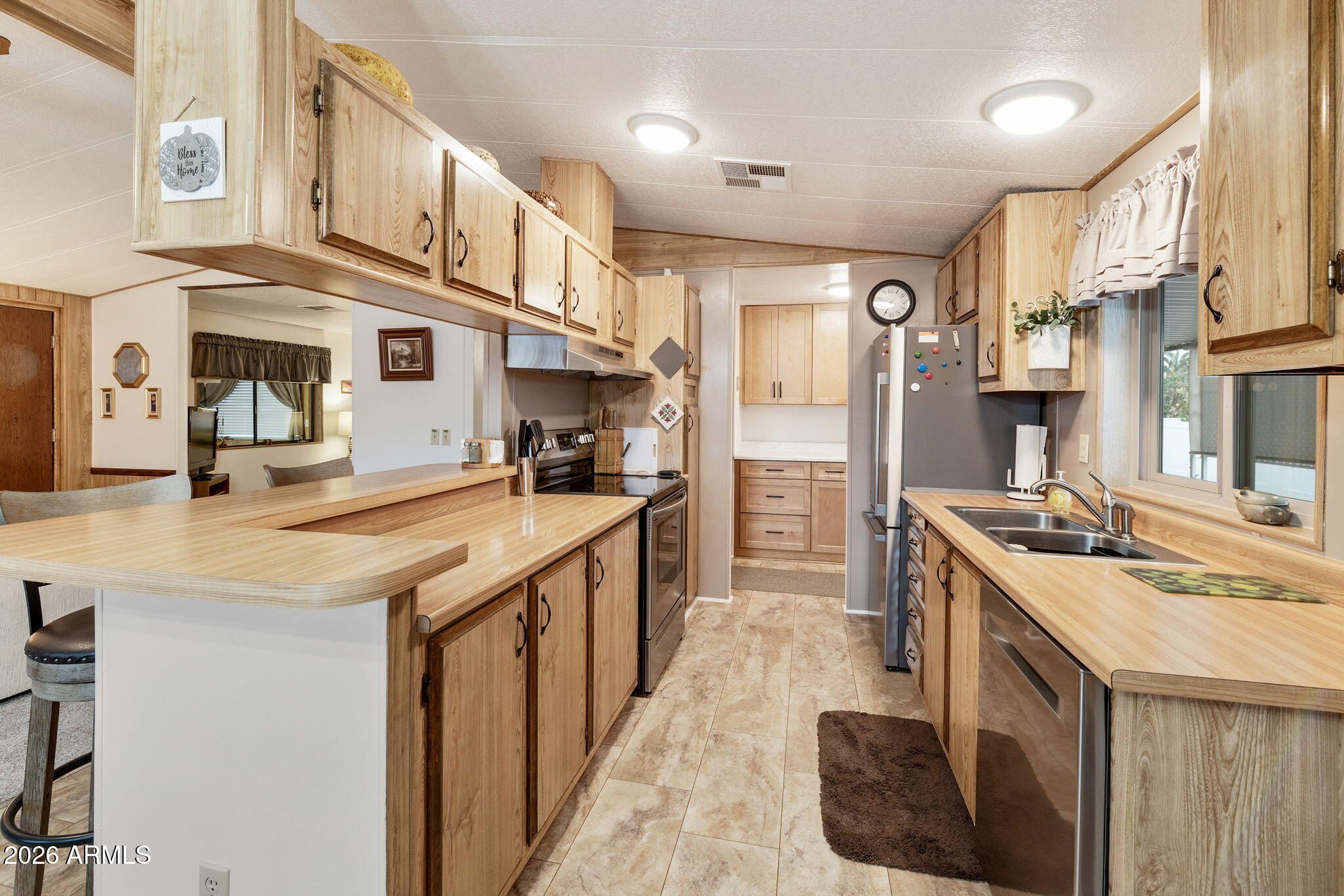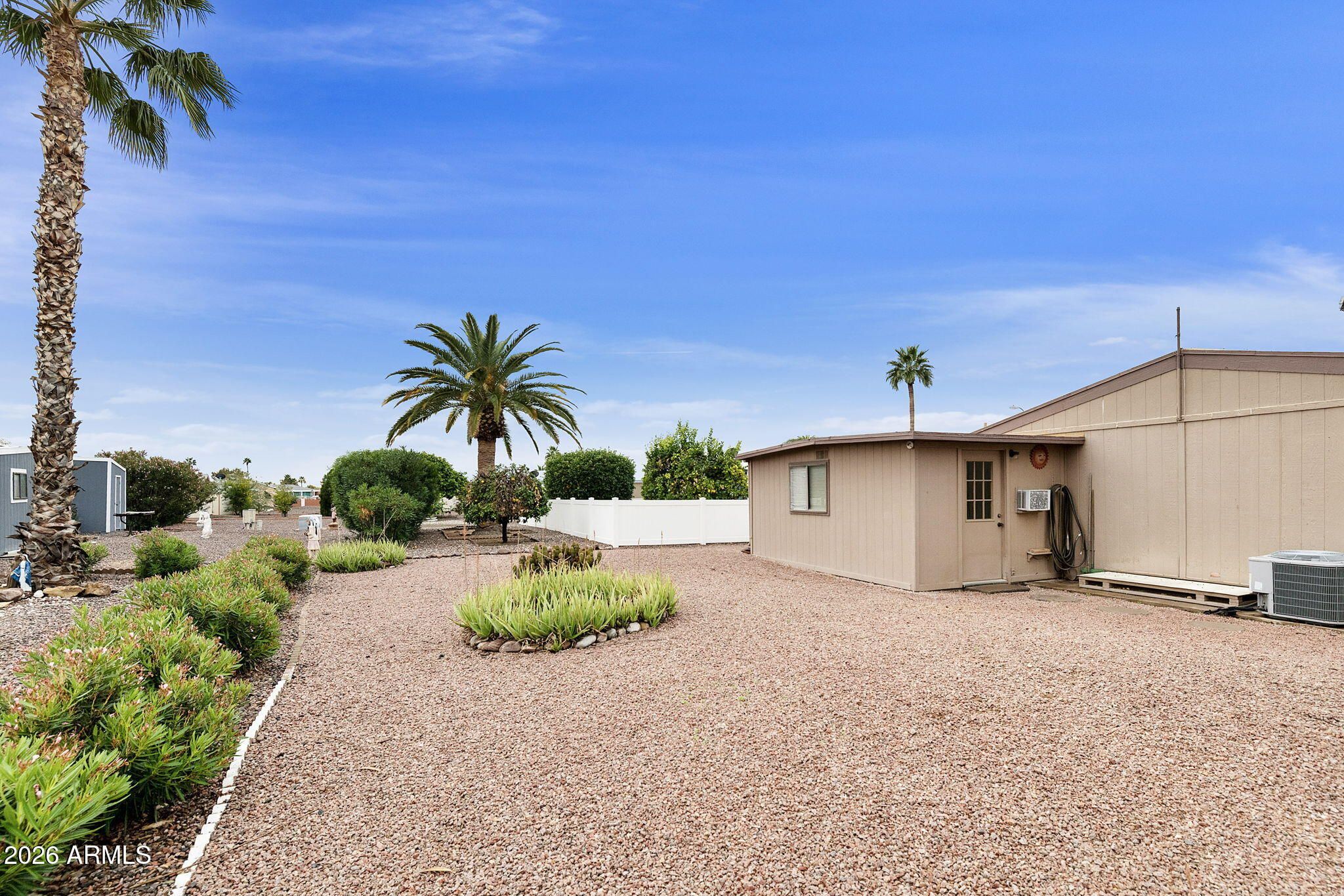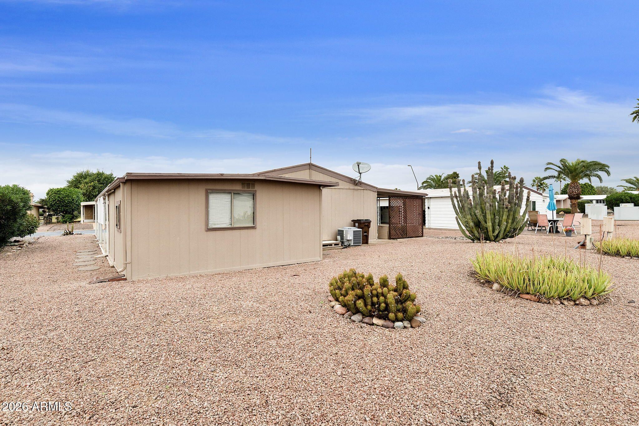 Move‑in ready and located on a quiet cul de sac, this Furnished 2-bedroom, 2 bath home offers comfort, and extra living space in the highly desirable Fountain of the Sun 55+ gated community. With 1,152 sq ft plus an additional 384 sq ft Arizona Room/3rd Bedroom, this home provides flexible living options. Open floor plan with vaulted ceilings for an airy, spacious feel, Stainless steel kitchen appliances and great natural light, Laminate & carpet installed in 2020, New entry cabinets (2024) for added storage, Nice‑sized primary bedroom, Primary bath w/ step‑in shower, Guest bedroom & Guest bath with tub/shower combo, Utility/Laundry room (8' x 8'), Large Storage Room w/ workbench (8' X16'), (NEW Roof (2021), NEW Water Heater (2025), NEW Dual Pane Windows (202