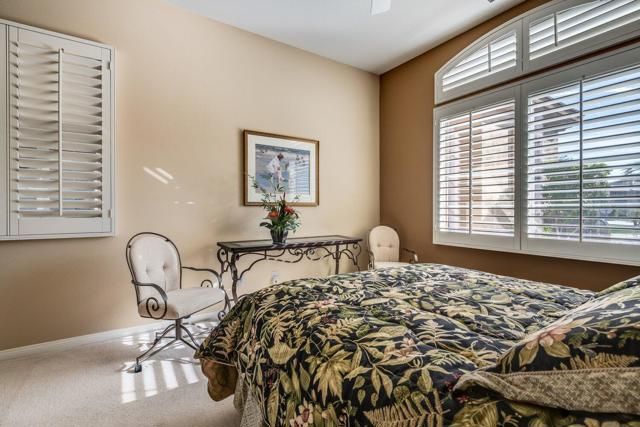 New price improvement--great opportunity to own this stunning home! Welcome to resort-style living in the highly sought-after Heritage Palms Country Club, a premier 55+ gated community. This beautifully updated 1,766 sq ft Merion model is thoughtfully designed for comfort, elegance, and effortless entertaining. THE SELLERS HAVE INVESTED $87,000 IN INTERIOR AND EXTERIOR IMPROVEMENTS TO THIS HOME! Featuring 2 spacious bedrooms plus a versatile den, this home easily accommodates visiting family and friends. With two full bathrooms and a prime location on the 16th tee box, you'll enjoy stunning golf course and mountain views right from your backyard. The gourmet kitchen is a standout, offering abundant counter space and storage, sleek quartz countertops, a stylish tile backsplash, and stainless steel appliances--perfect for hosting gatherings or enjoying quiet mornings at home. The bright, open living area is warm and inviting, highlighted by a gas fireplace, plantation shutters throughout, and durable tile flooring in the main living spaces, with plush carpet in the bedrooms. The primary suite is a private retreat featuring a spa-like ensuite with dual vanities, a walk-in shower, soaking tub, and generous walk-in closet. The guest bedroom enjoys convenient access to a Jack-and-Jill bathroom, offering comfort and privacy for visitors. Additional highlights include an extended two-car garage with epoxy flooring, a separate golf cart garage, and a dedicated laundry room with sink and direct garage access. A gated front courtyard adds charm and privacy, while the covered back patio with pavers is the perfect spot to relax and take in serene golf course views. Ideally located within walking distance to the clubhouse, this home places you at the heart of everything Heritage Palms has to offer--18-hole championship golf, fitness center, indoor and outdoor pools, tennis, pickleball, and an active social calendar. This is more than a home--it's a lifestyle. Don't miss your opportunity to own this exceptional property in Heritage Palms Country Club.