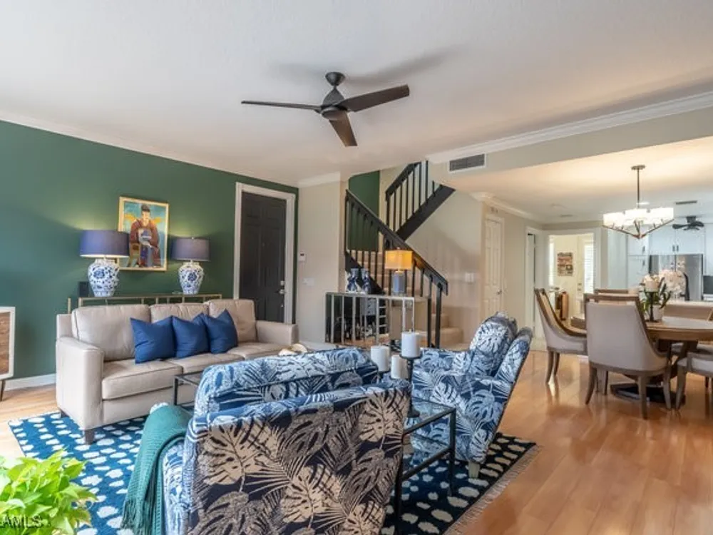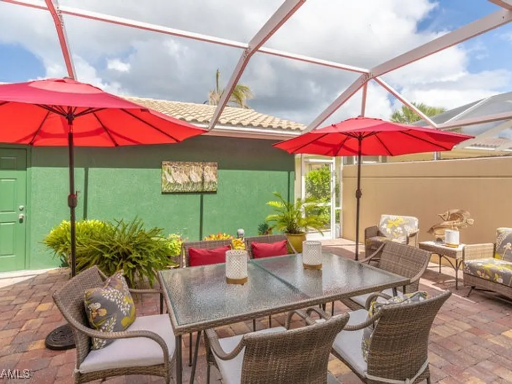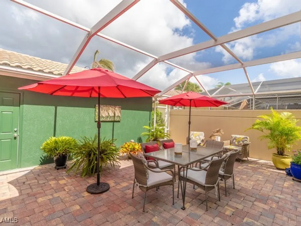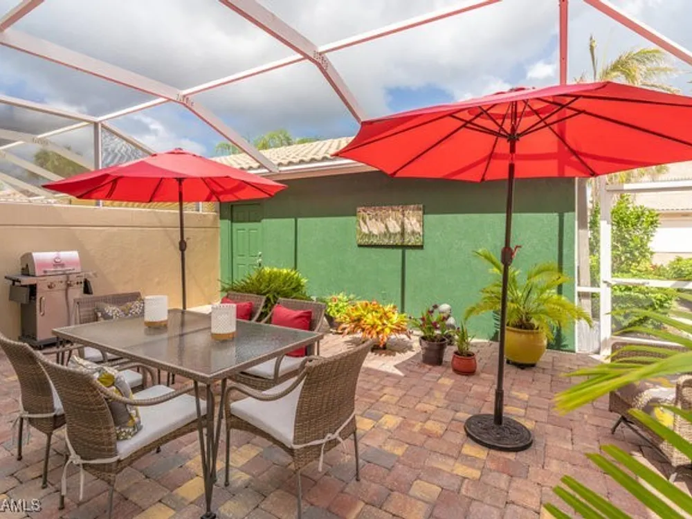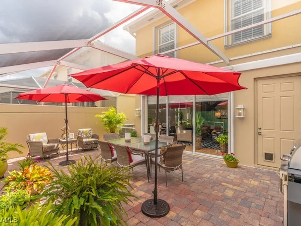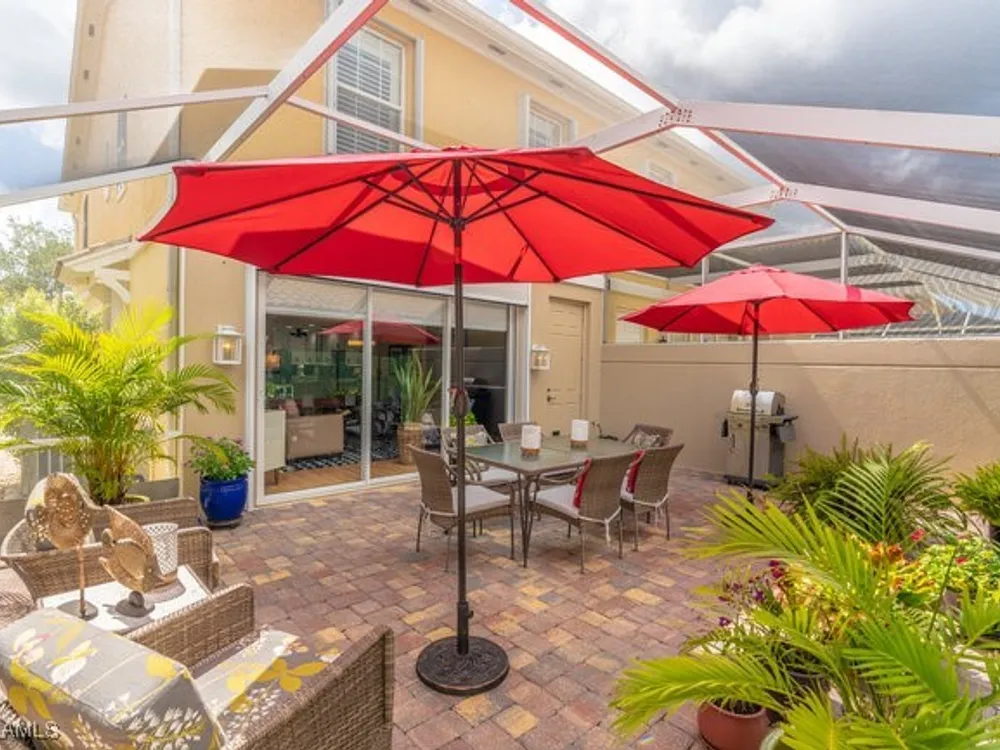 JUST REDUCED THIS incredibly maintained three bedrooms/three bath Cayman townhome located in the gated community of VeronaWalk. The attention to detail is evident throughout and upgrades are all in place. This home is move in ready. A centrally located kitchen with white 42” Shaker cabinetry and designer backsplash is equipped with a new Kohler stainless sink and Frigidaire Gallery smudge proof, stainless appliance package. The induction range offers convection/air-fry abilities. Tasteful paint shades blend beautifully with the LVP and tile flooring. Bedrooms are carpeted. Each bedroom has an ensuite bath and spacious walk-in closet. The second floor laundry houses a full size Samsung washer/dryer duo. Mechanicals include a newer A/C and hot water heater. Electrical and plumbing upgrades have been put in place. Contemporary lighting fixtures and fans have been added both in and out. The exterior of the home was recently painted, gutters installed and a French drain system keeps the home extra dry. Your paver patio oasis has a SunGard No-Seeum screen enclosure surrounding it and connects to a detached two car garage. Accordion and electric shutters, generator outlets, as well as a hurricane rated (2024) garage door keep you storm prepared. This townhome has been placed in FEMA Zone X requiring no flood insurance.