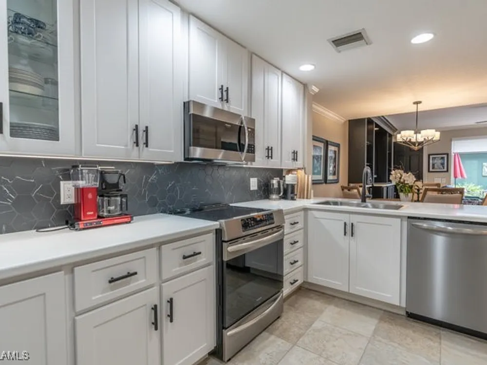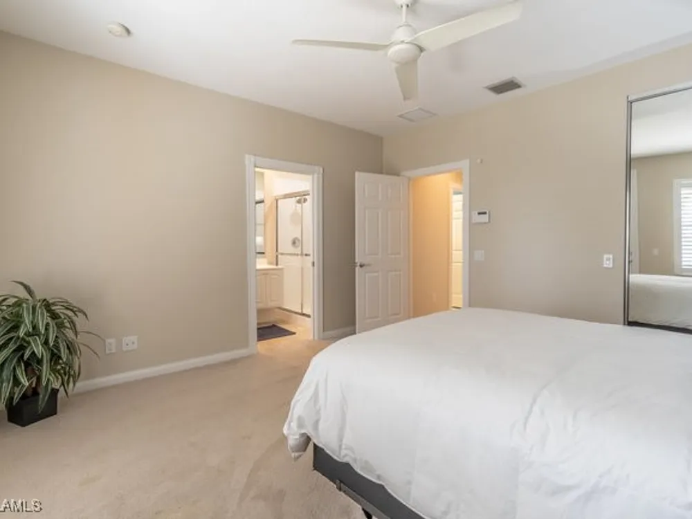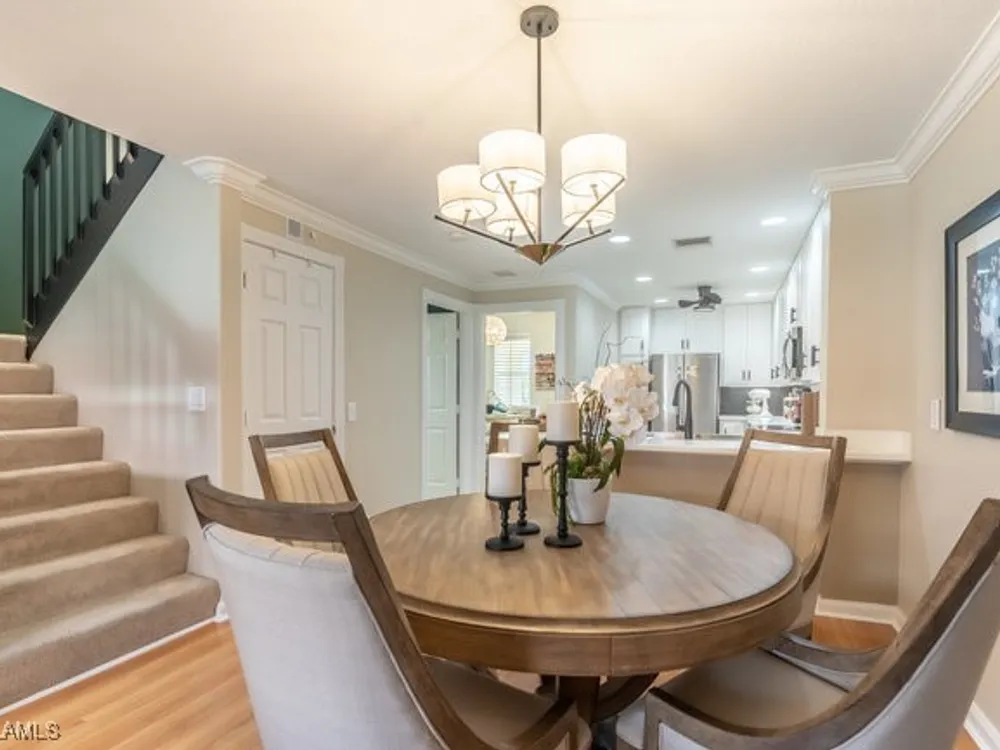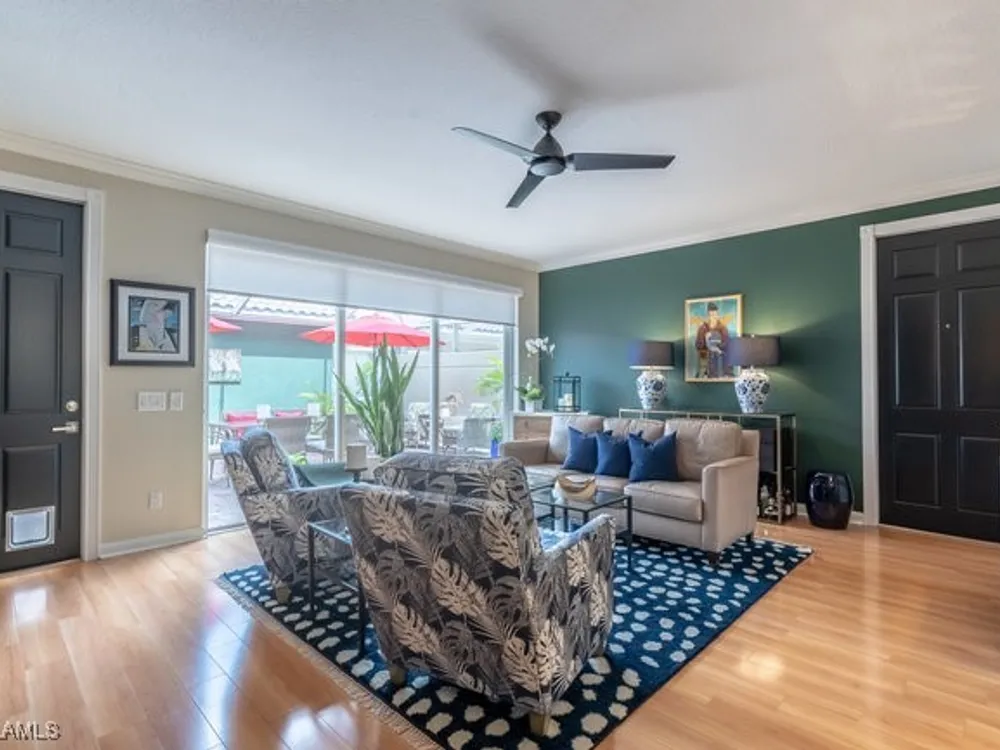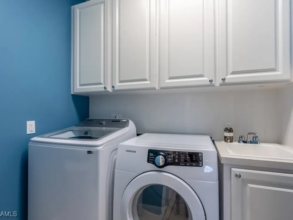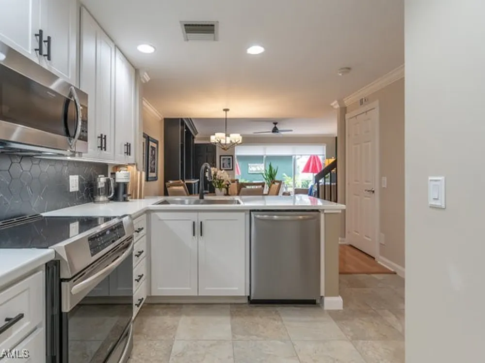 JUST REDUCED THIS incredibly maintained three bedrooms/three bath Cayman townhome located in the gated community of VeronaWalk. The attention to detail is evident throughout and upgrades are all in place. This home is move in ready. A centrally located kitchen with white 42” Shaker cabinetry and designer backsplash is equipped with a new Kohler stainless sink and Frigidaire Gallery smudge proof, stainless appliance package. The induction range offers convection/air-fry abilities. Tasteful paint shades blend beautifully with the LVP and tile flooring. Bedrooms are carpeted. Each bedroom has an ensuite bath and spacious walk-in closet. The second floor laundry houses a full size Samsung washer/dryer duo. Mechanicals include a newer A/C and hot water heater. Electrical and plumbing upgrades have been put in place. Contemporary lighting fixtures and fans have been added both in and out. The exterior of the home was recently painted, gutters installed and a French drain system keeps the home extra dry. Your paver patio oasis has a SunGard No-Seeum screen enclosure surrounding it and connects to a detached two car garage. Accordion and electric shutters, generator outlets, as well as a hurricane rated (2024) garage door keep you storm prepared. This townhome has been placed in FEMA Zone X requiring no flood insurance.