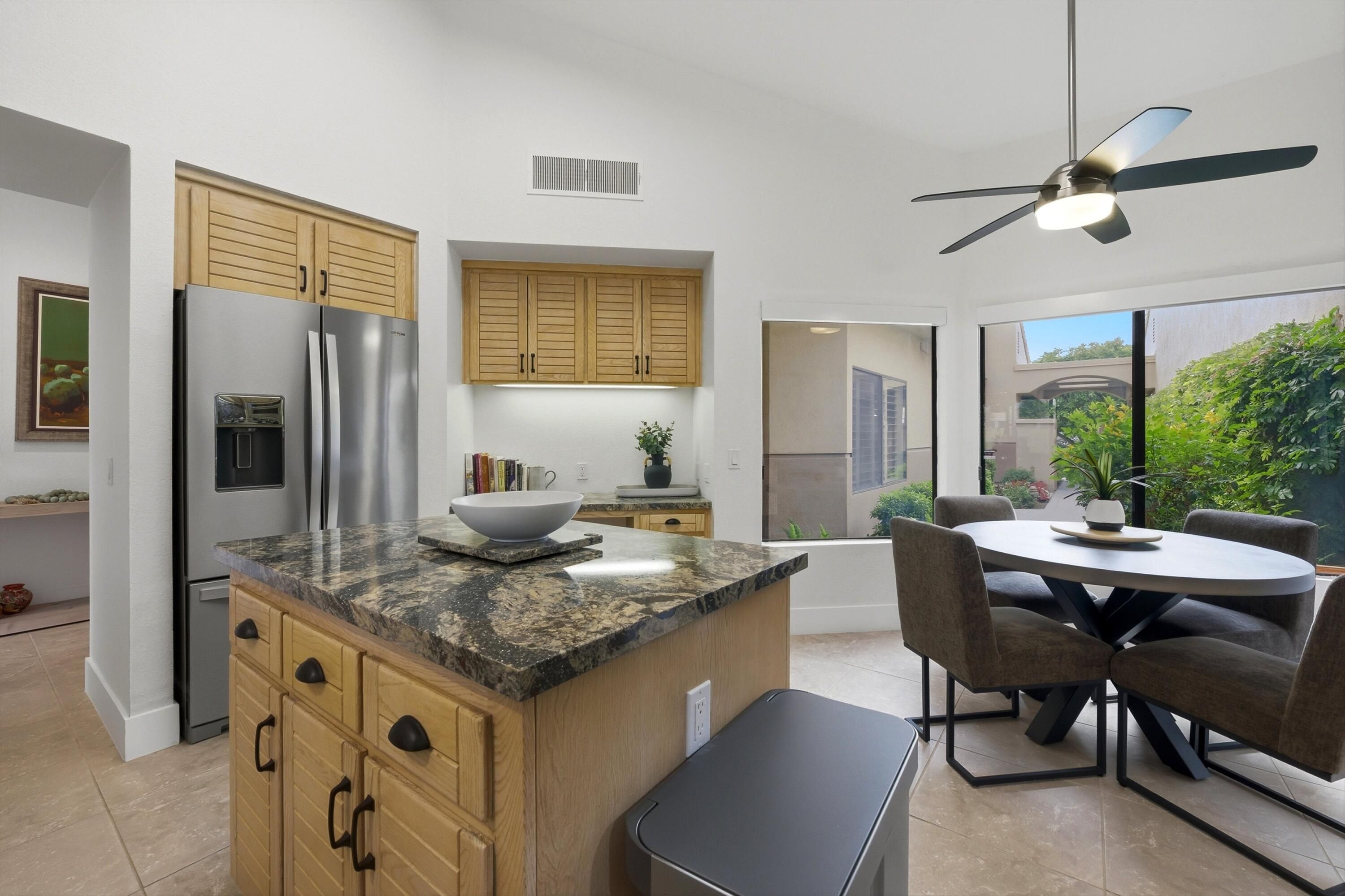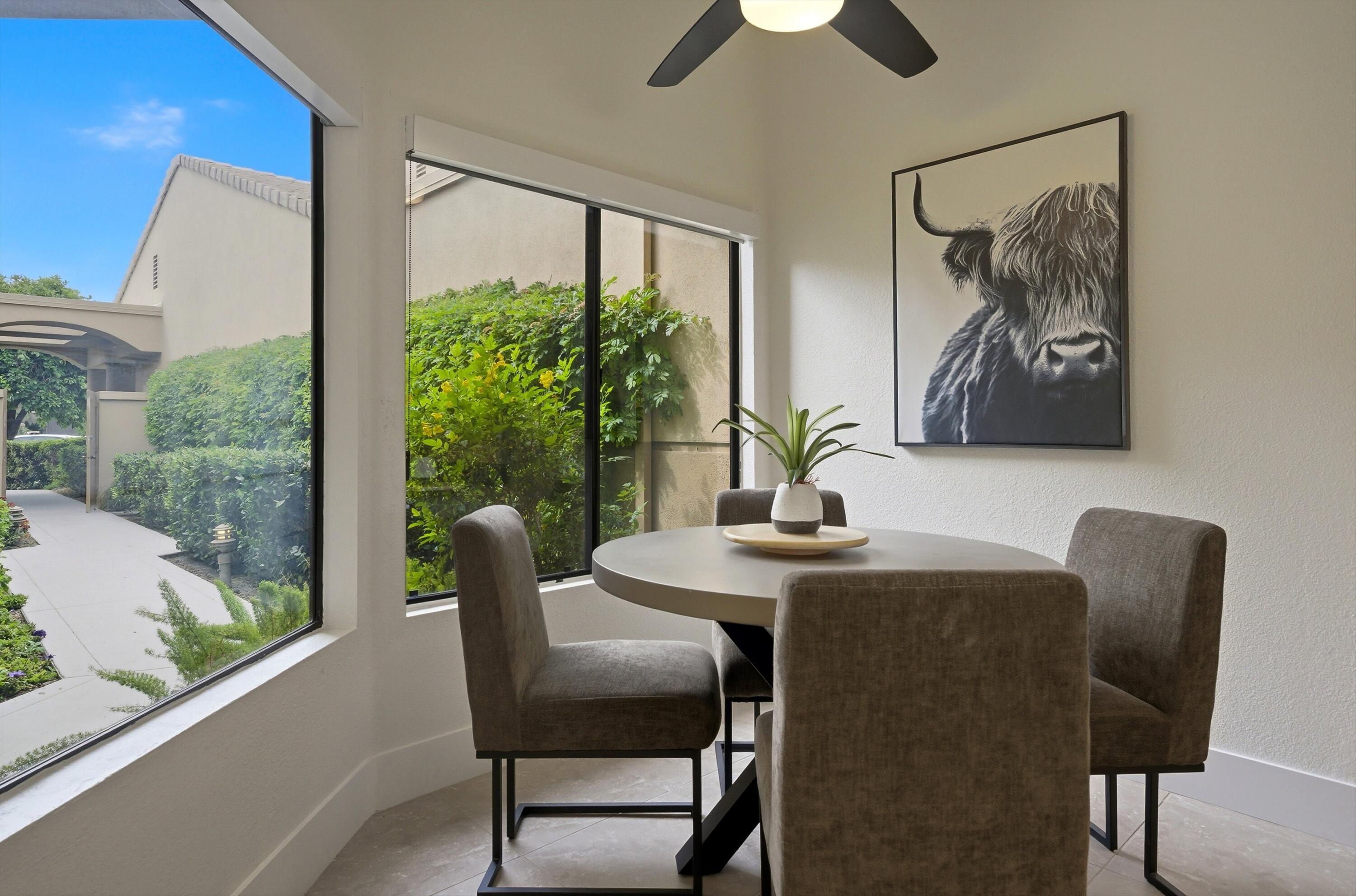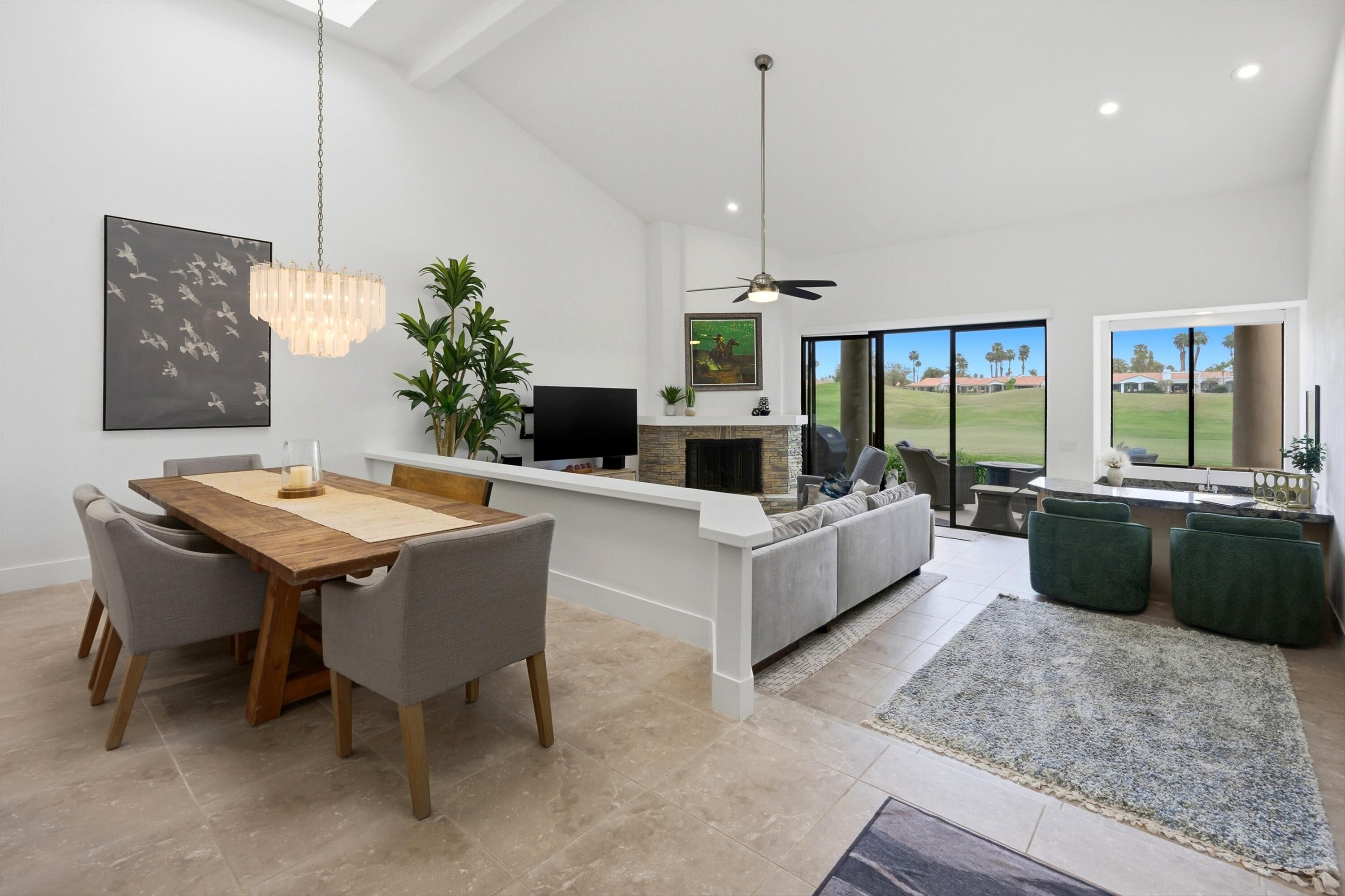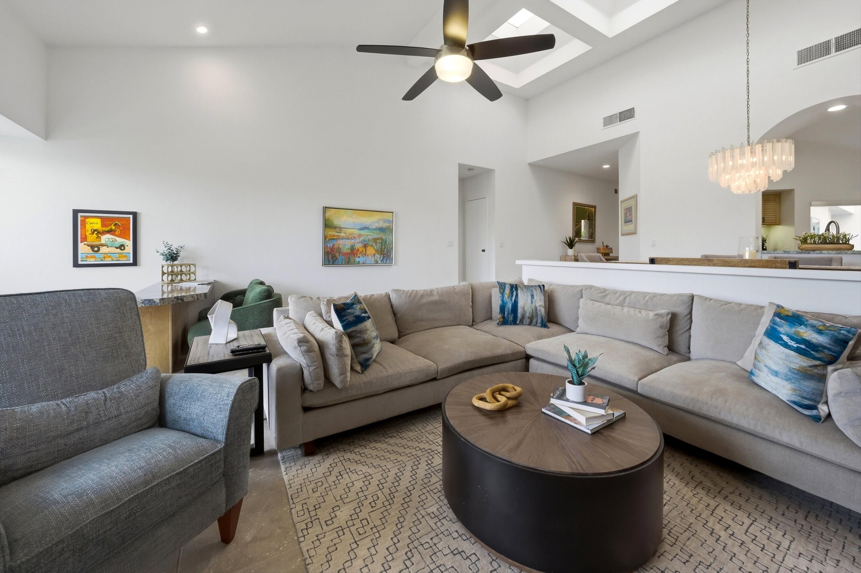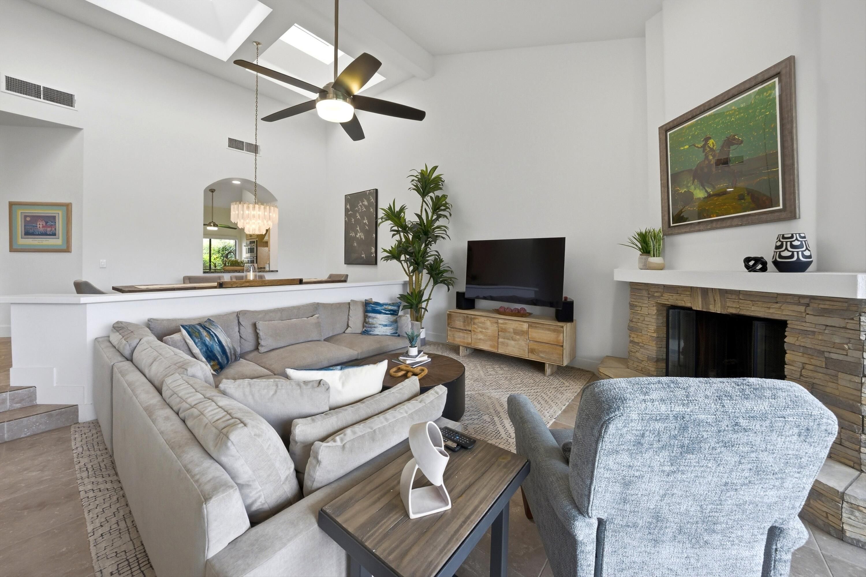Experience the very best of La Quinta living in this stunning, fully furnished PGA West residence, where luxury, comfort, and world-class golf come together. Ideally situated on the iconic Stadium Course, this exceptional home offers a rare front-row seat to the American Express Golf Tournament--enjoy it all from the privacy of your own patio. Thoughtfully renovated and beautifully appointed, this home showcases two spacious master suites with impeccably remodeled bathrooms, sleek new flooring throughout, and an advanced HVAC system with premium air filtration for year-round comfort. The chef-inspired kitchen is both stylish and functional, featuring elegant Cambria countertops, a central island, skylights, and abundant natural light. Outfitted with brand-new KitchenAid appliances, dual wine refrigerators, and a premium WaterDrop water filtration system, it's perfectly designed for both everyday living and effortless entertaining. A charming breakfast nook and convenient pass-through bar seamlessly connect the kitchen to the dining area. Designed with comfort in mind, the home features Sleep Number king-size beds in the primary suite and adjustable Tempur-Pedic beds in the guest room, ensuring a personalized sleep experience for you and your guests. New flat-screen TVs in both master bedrooms and the living room, along with new Hunter ceiling fans throughout, add modern convenience and style. Hunter Douglas power blinds in the living room and primary suite provide both privacy and effortless light control. The expansive living room boasts high ceilings, a cozy new fireplace and mantle, and a large sliding glass door that opens to breathtaking golf course views. A sunken bar and oversized patio create the perfect setting for entertaining or simply relaxing while enjoying the desert lifestyle. This home also offers the ease of HOA-covered amenities, including 24/7 guard-gated security, cable, internet, roof, exterior maintenance, and beautifully maintained landscaping. Just steps away, a tranquil community pool and spa provide a peaceful retreat. This is a rare opportunity to own a turnkey, resort-style home in one of the Coachella Valley's most sought-after destinations. Whether you're seeking a full-time residence, vacation home, or investment property, this exceptional PGA West retreat delivers on every level. Your desert dream lifestyle starts here. Property Highlights & Features Location & Lifestyle " Located in prestigious PGA West on the iconic Stadium Course " Front-row views of the American Express Golf Tournament from the patio " Resort-style living in the heart of La Quinta " Steps from community pool and spa " 24/7 guard-gated community Interior & Layout " Fully furnished, turnkey home " Two spacious master suites " Newly remodeled master bathrooms " Third guest bedroom " High ceilings and open-concept living space " Large sliding glass doors with golf course views " Sunken bar for entertaining " New fireplace and mantle Kitchen & Dining " Chef-inspired kitchen with central island " Elegant Cambria countertops " Skylights and abundant natural light " Breakfast nook " Pass-through bar to dining area " Brand-new KitchenAid appliances " Two wine refrigerators " WaterDrop water filtration system Bedrooms & Comfort " Sleep Number king-size bed in primary suite " Adjustable Tempur-Pedic beds in guest room " Spacious, well-appointed bedrooms Technology & Upgrades " New flat-screen TVs in both master bedrooms and living room " Hunter ceiling fans throughout the home " Hunter Douglas power blinds in living room and primary suite " Advanced HVAC system with premium air filtration " New flooring throughout Outdoor Living " Expansive patio with golf course views " Ideal for entertaining or relaxing outdoors HOA & Convenience " HOA covers cable and internet " HOA covers roof and exterior maintenance " Landscaping included " Access to community pools and spas