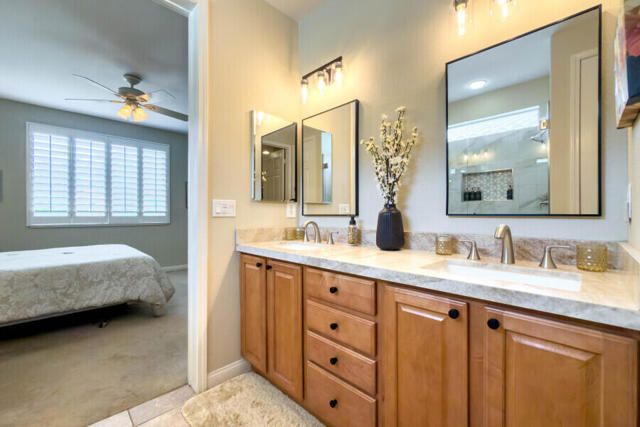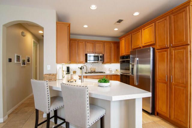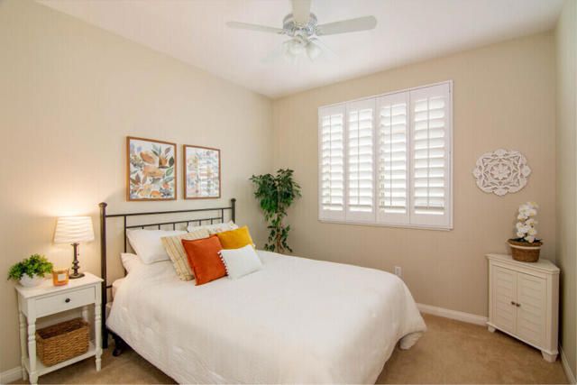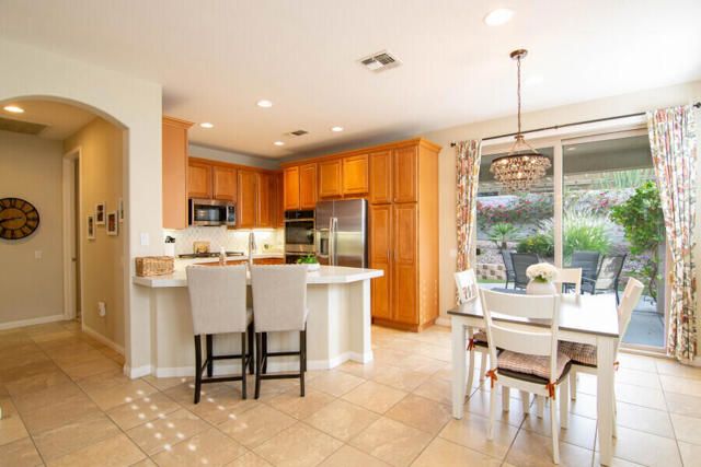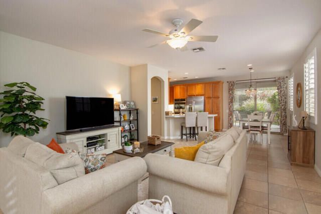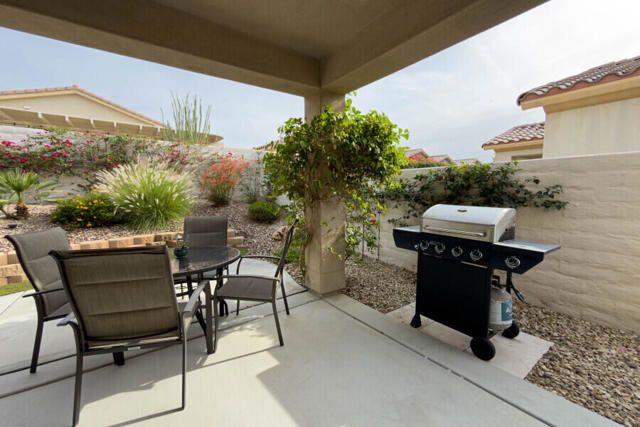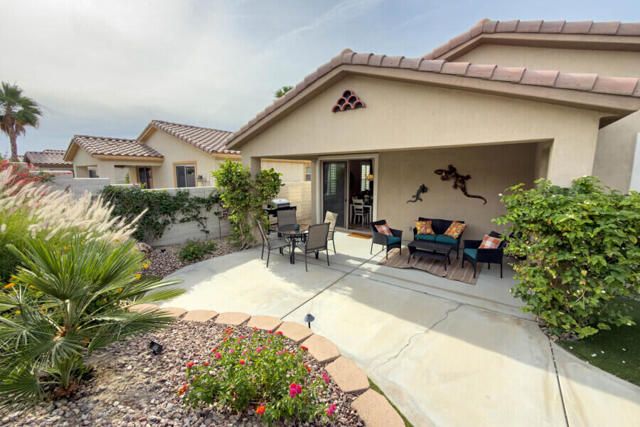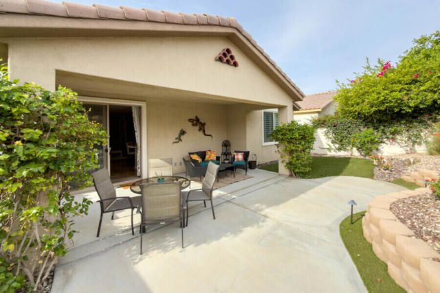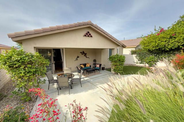 Lovely San Ysidro model... Move in Ready! Two Bedrooms, 2 Updated Baths, Den/Office. Remodeled Kitchen with Quartz Counter top, White Kohler Undermount Single Bowl Sink, Stainless Steel GE Profile Appliances, GE Profile Fridge Included! Dining area off Kitchen with Slider door to Covered Patio. You'll Enjoy the Private North facing Easy Care Yard with Mature plantings. King Sized Primary Bedroom with view to lovely yard. Ample sized walk-in closet! Updated Primary Bath with Custom Shower, Dual Sink Quartz Vanity! Guest Bedroom is Queen Sized with bath adjacent off Hallway. Guest Bath has also been Updated and is ideally located to offer maximum privacy for you & your guests. Plantation Shutters! Ceramic tile flooring thru out, carpet in Bedrooms. Laundry Room w/Quartz Counter top, deep soaking sink, plus extra Cabinets for Ample Storage space. Two Car Garage. Newer A/C system (2020). This home is located in Highly Desired Sun City Shadow Hills... Premiere Gated Retirement Community offers many Amenities/Activities with affordable HOA Dues, includes Internet.You'll Enjoy Two Clubhouses, Two Golf Courses, Shadows Restaurant, Two Bistros, Miles of Walking, Doggie Parks, Concerts, Performing Arts, Clubs & Activities, Game Rooms, Library area with Cozy Fireplaces, Craft Rooms, Billiard Room, and So Much more! Three Pools (one is Indoor). Tennis, Pickleball, Driving Range, Two Putting Courses! Two State of the Art Fitness Centers, one offers an Indoor Walking Track. This Lovely Community is located in North Indio and offers Easy access to Shopping, Dining, Medical, Entertainment, Casinos, Acrissure Arena!