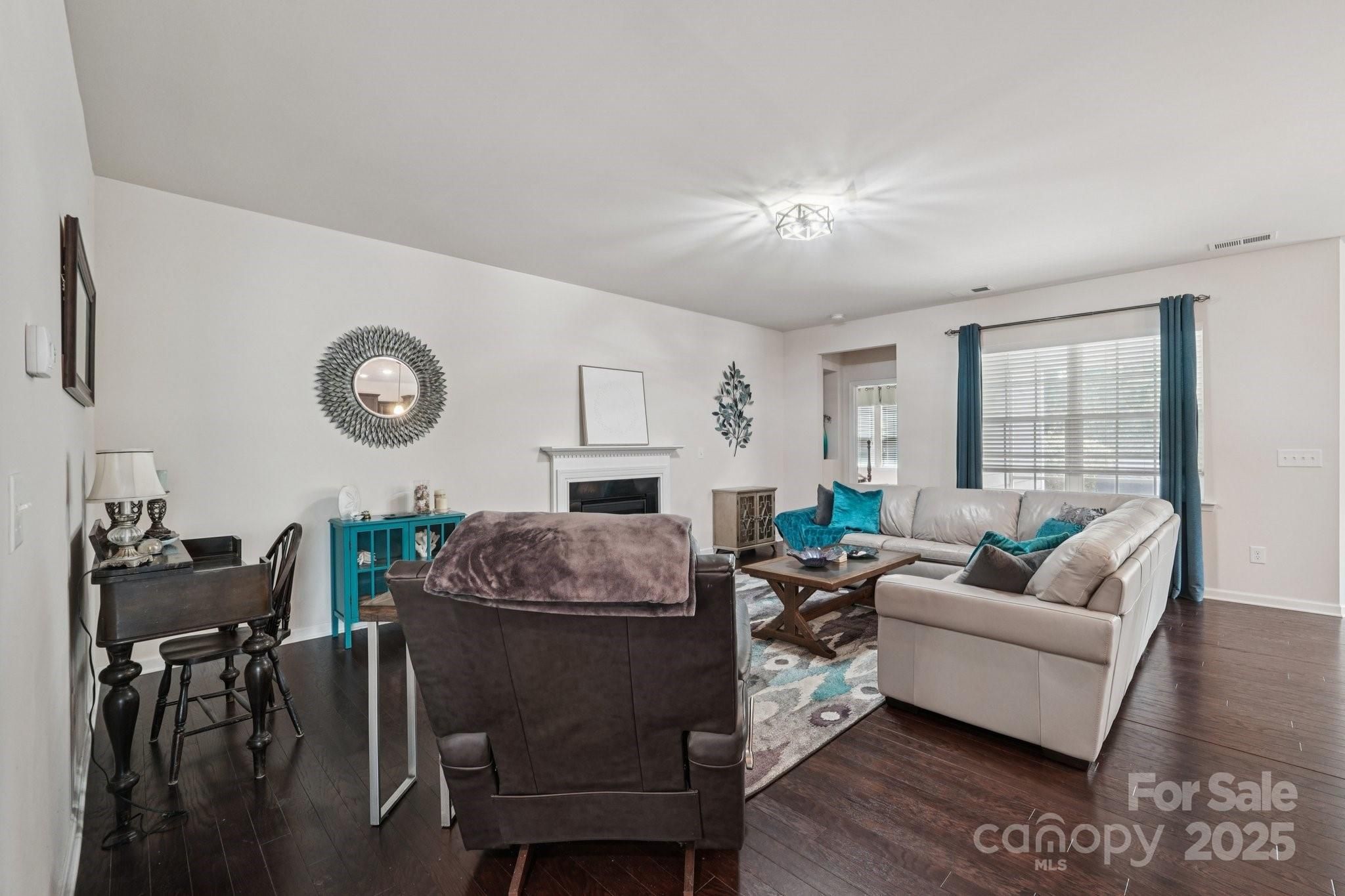 Welcome to effortless living in the highly sought-after gated Tree Tops community! This beautifully designed 2-bedroom, 2-bath home with a private office offers a spacious open floor plan, perfect for both entertaining and everyday comfort. Dark wood floors flow throughout the main living areas, leading to a gourmet kitchen with an oversized island, pantry, and abundant cabinetry, all open to the dining and great room. Relax with your morning coffee, or on a sunny afternoon in the large screened in porch. The tranquil sound of nature surround you, as this peaceful lot has no neighbors in back. Enjoy a low-maintenance lifestyle with landscaping included, giving you more time to take for the incredible amenities—a clubhouse, fitness center, pool, lake with kayaks, walking trails, pickleball, bocce, dog park, and hobby cabins for social events. Nestled just minutes from Indian Land and close to Charlotte, this home combines luxury, convenience, and an active community lifestyle.