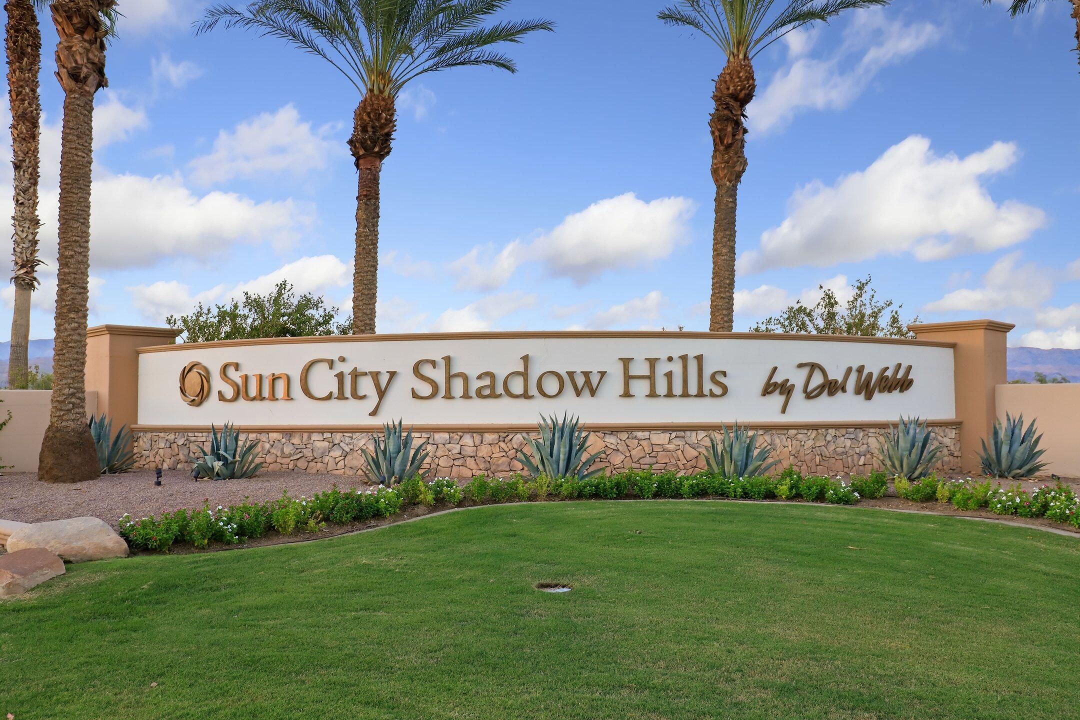 Discover comfort, style, and easy desert living in this impeccable San Emilio plan, nestled within the prestigious 55+ Active Adult Community of Sun City Shadow Hills. Thoughtfully designed for relaxed comfort and effortless entertaining, this light-filled home welcomes you through a leaded glass entry into a beautifully upgraded living room with an adjacent dining area ideal for gatherings. The well-appointed kitchen features granite countertops, stylish tile backsplash, island prep space, upgraded cabinetry, stainless refrigerator, large step-in pantry, stool-height bar overlooking the great room, and a cozy breakfast nook. A versatile den/office with backyard views includes a privacy door and recessed niche, making it an easy optional bedroom. The spacious primary suite offers patio access, dual vanities, a glass-enclosed shower, and an oversized walk-in closet, while the guest bedroom is privately located on the opposite side of the home. Outdoors, enjoy a tranquil retreat with a fully covered extended patio, waterfall feature, turf, low-maintenance desert landscaping, and a separate BBQ area—perfect for entertaining or relaxing under the stars. The 2-car garage includes a 7x13 tilt-out ideal for a golf cart. Low HOA dues. Residents enjoy two championship golf courses, clubhouses, fitness centers, pools, tennis & pickleball, bocce ball, dog parks, walking paths, on-site dining, and 24/7 guard-gated security—offering a vibrant, resort-style lifestyle with a true sense of community. Experience the perfect blend of gracious resort-style living, privacy and lovely outdoor areas in a home designed for comfort and ease.