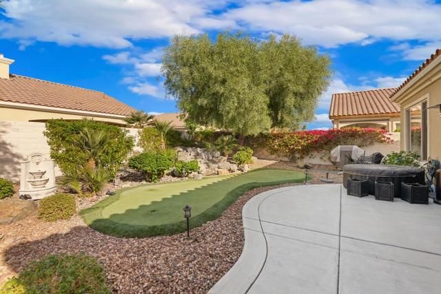 Discover comfort, style & easy desert living in this impeccable fully furnished San Emilio plan, nestled within phase 1 of the prestigious 55+ Active Adult Community of Sun City Shadow Hills. Enter through the leaded glass door into your light & bright, beautifully upgraded living room w/adjacent dining room large enough to entertain friends & family! This home is a phase one home built by Del Webb with special quality features such as 6 inch walls insulated Corinthian Shelves and special insulation in the ceilings. Upgrades include plank, engineered tile, flooring throughout, new decorative window treatments, all new hardware, new backsplash, Shizz in kitchen and laundry room, High end double pane glass front door, 6 inch floor, molding, And all new paint. All cabinetry is high-end wood finishes with sliding drawers. The kitchen features granite countertops, subway tile backsplash, built-in appliance 'garage', an island prep area, SS refrigerator, large pantry, & cozy nook perfect for that morning coffee. The den/office offers views to the back yard &could easily become a bedroom w/privacy door & recessed niche perfect for a closet. The beautiful master suite has patio access, dual vanities, a glass enclosed shower & a gigantic walk-in closet! The guest room, on the opposite side of the home from the primary suite, is perfect for guests to enjoy their privacy. Outside you will find an oasis - open-air entertaining, dining by starlight, or just relaxing to the gentle sounds of the waterfall! The extended patio is covered all across the back, w/ample room just beyond for a hot tub, chase lounges in the sun, or dining al fresco. Turf, low maintenance desertscape, a large 3-hole putting green & a separate outdoor BBQ area complete the resort style atmosphere. Oversized 2-car garage has wood cabinets, a new refrigerator/freezer & lots of storage. Upgrades include: engineered flooring throughout, new decorative window treatments, all new hardware, 6' floor molding, and all new paint. Low HOA dues of $398/mo. Residents of Sun City Shadow Hills enjoy access to 2 championship golf courses w/separate putting course, resort-style clubhouses, state-of-the-art fitness centers, pools, tennis & pickleball courts, bocce ball, 2 outdoor pools & 1 indoor pool and an abundance of social clubs and activities, 2 dog parks, beautiful walking areas & the Shadows restaurant! Feel at ease with 24/7 guard-gated security & offering a vibrant, resort-style lifestyle!