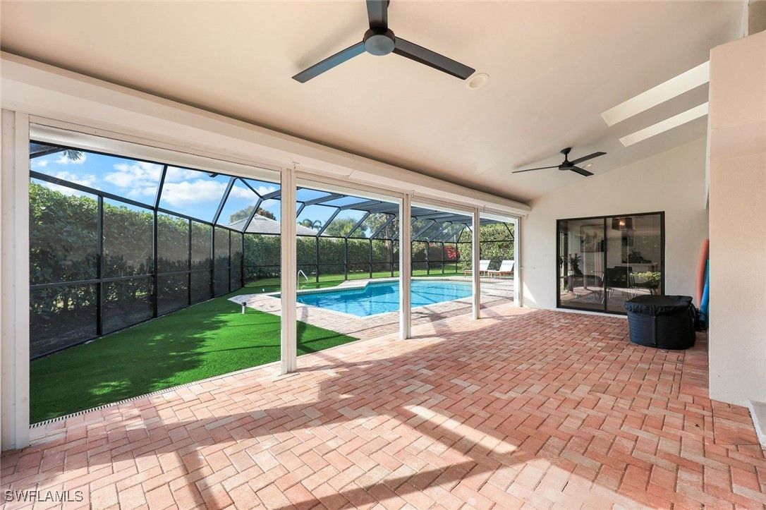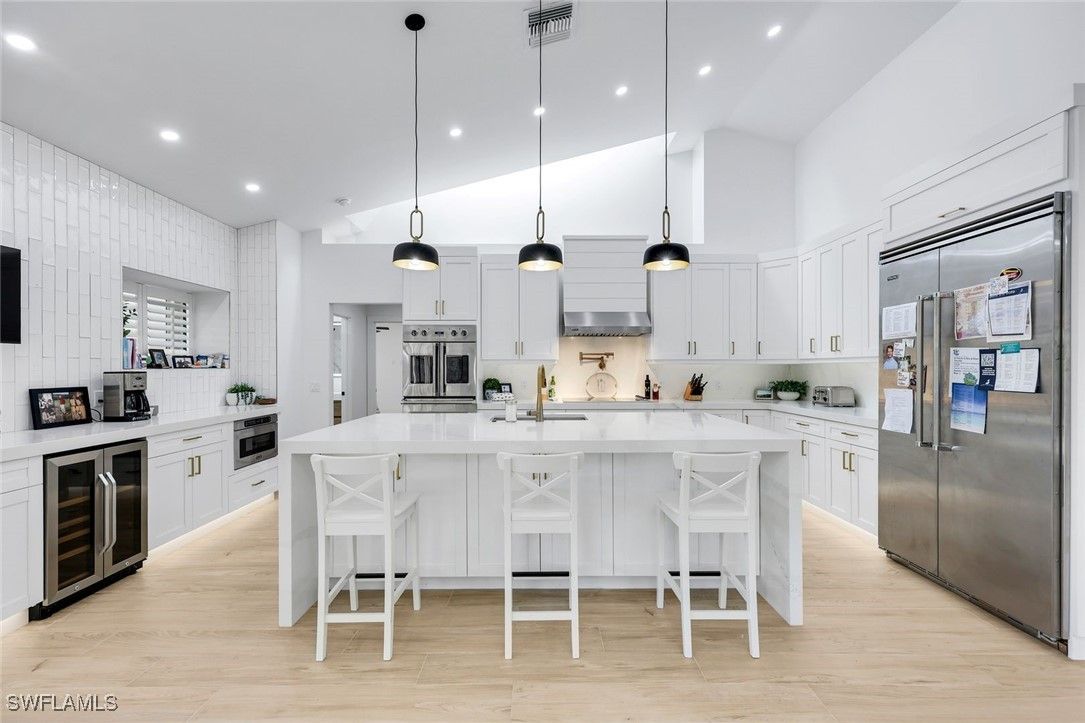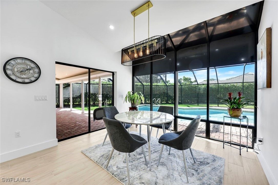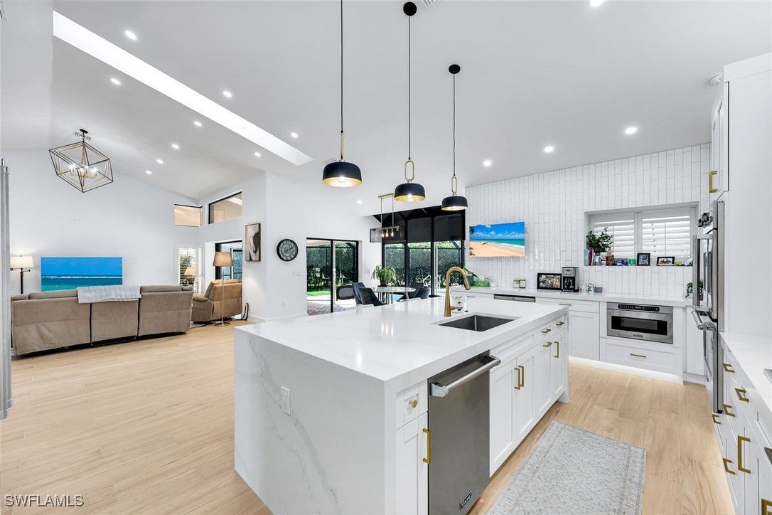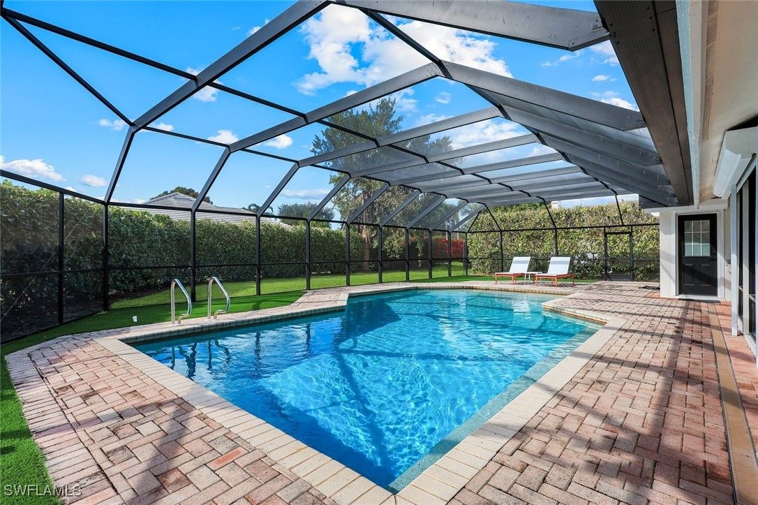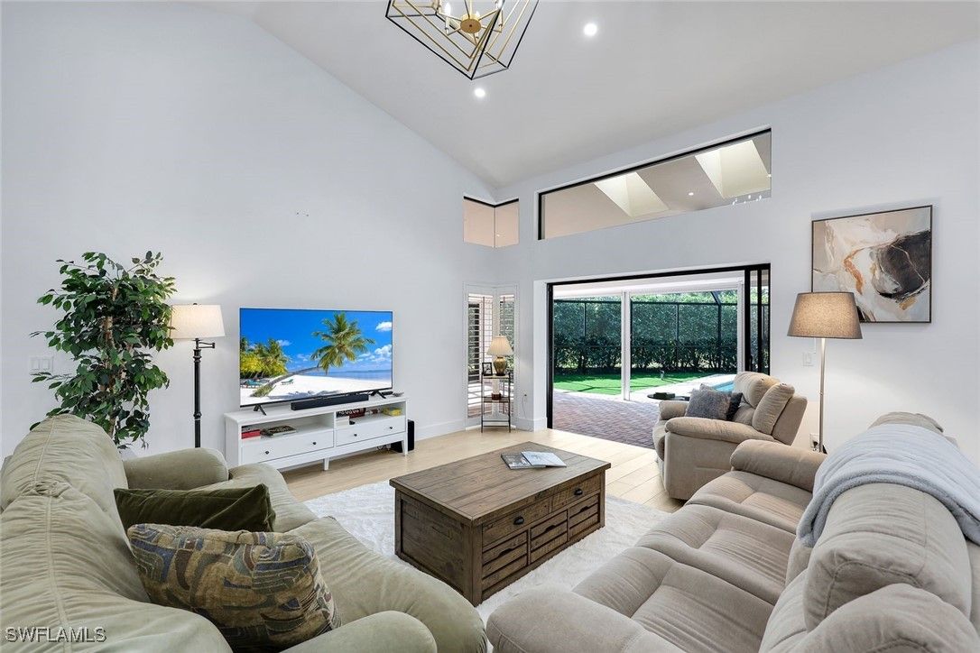 Discover the essence of refined Naples living in Pelican Bay, this spacious coastal residence is completely and professionally updated. Tucked away on a quiet private cul-de-sac, this 4 bedroom and 3 bath home offers exceptional privacy, and effortless indoor and outdoor living. Designed for both everyday comfort and gracious entertaining, southern exposure enhances the home’s airy ambiance with the open concept which is bathed in natural light. Features include vaulted ceilings, new plank flooring throughout and curated lighting. The thoughtfully reimagined kitchen serves as the heart of the home, showcasing a generous center island with quartz waterfall and seamless flow to the eat in kitchen nook, living room and the separate dining area. All the bathrooms are updated in contemporary white pallet. The split bedrooms ensures privacy for owners and guests alike. Step outside to an expansive screened lanai, ideal for hosting memorable poolside gatherings. The solar-heated pool is surrounded by lush professional landscaping, while the oversized lot provides flexibility perfect for family and friends, pet lovers, or additional outdoor living enhancements. As a resident of Pelican Bay, you enjoy plethora of amenities from private access to miles of pristine beach complete with open-air electric trams winding through scenic mangrove boardwalks, and beachfront dining at Sandbar and Marker 36. Additional amenities include community clubhouse plus world-class tennis and pickleball facilities, a state-of-the-art fitness and wellness center, kayaking and paddle boarding through the protected mangroves, and a vibrant calendar of social, cultural, and educational events. Perfectly positioned with walking distance from Waterside Shops and surrounded by Naples’ most iconic destinations, including The Ritz-Carlton. Everything imaginable is at your fingertips! Seize the opportunity to own in one of Naples’ most prestigious communities and experience the very best of Naples living.