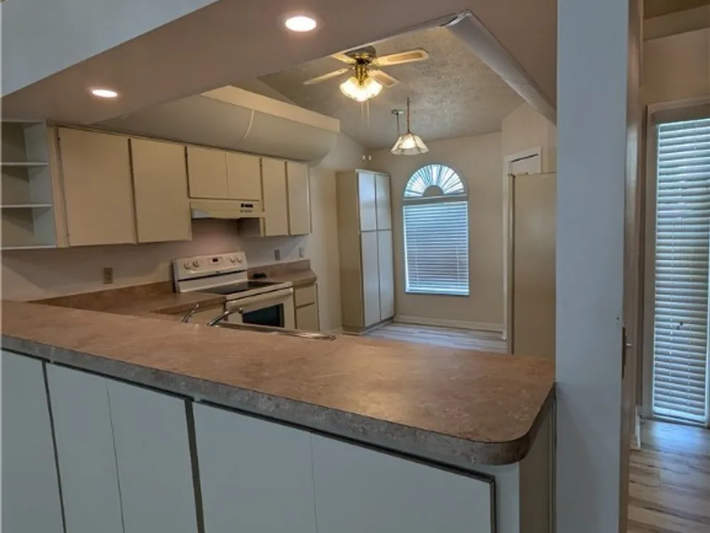 - Breakfast Bar, Cathedral Ceiling(s), Dual Sinks, Eat-in Kitchen, Laminate Counters, Primary Suite, Open Floorplan, Pantry, Separate Shower, Solar Tube(s), Walk-In Closet(s), Window Treatments, Sliding Glass Door(s)