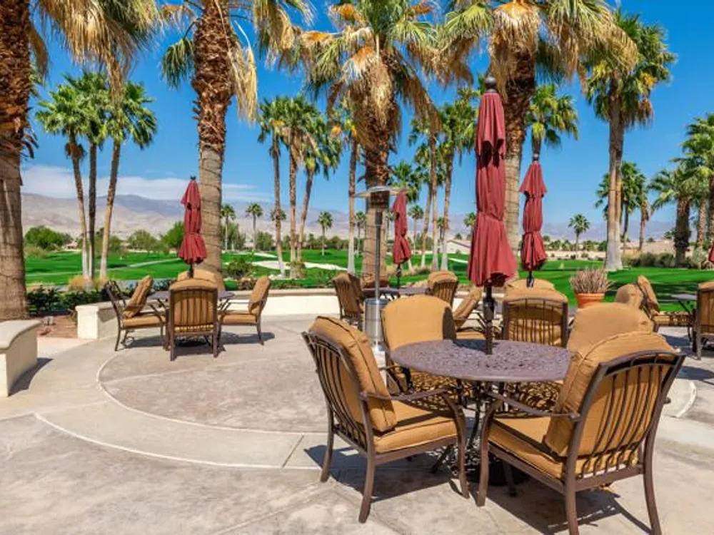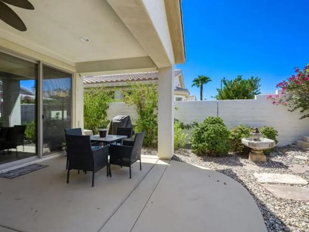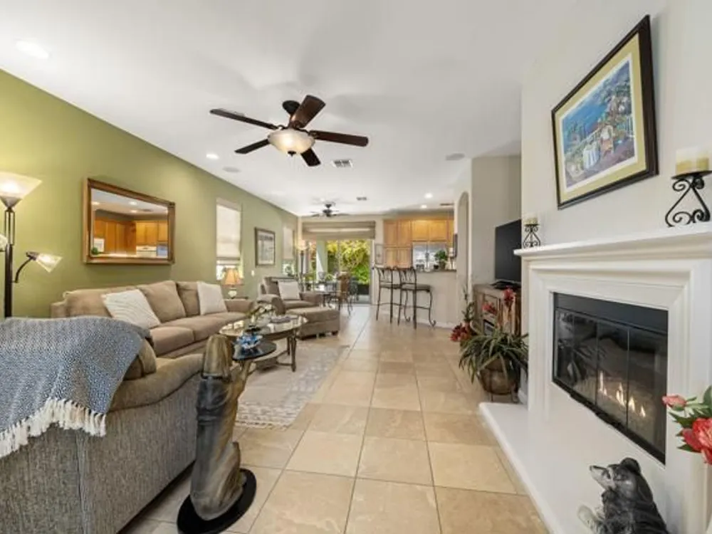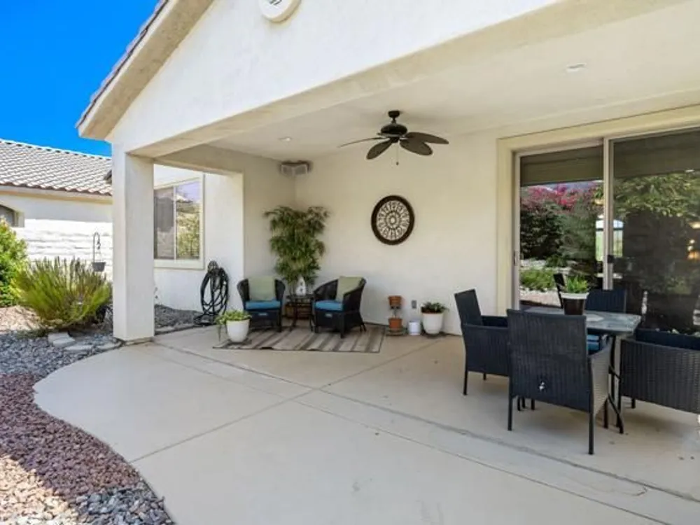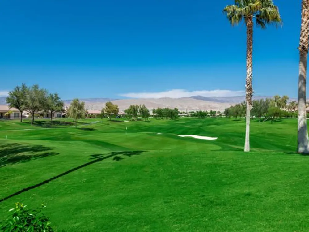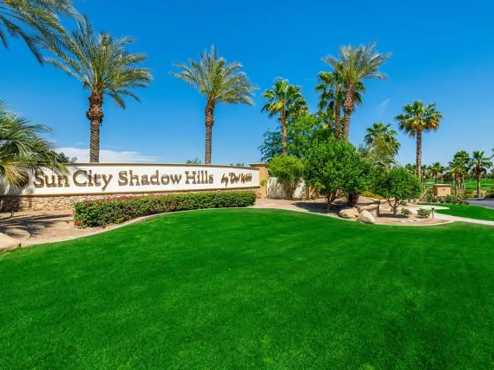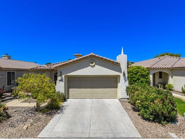 This beautifully-maintained San Ysidro model in the highly sought-after 55+ community of Sun City Shadow Hills is offered FURNISHED. Ideally located across from a greenbelt and near the dog park, this inviting home offers two spacious bedrooms + a versatile DEN, two baths, and ample living space. The primary suite offers a spacious en-suite bath, large walk-in shower, and walk-in closet, while the kitchen features a gas cooktop, double-wall oven, STAINLESS STEEL REFRIGERATOR, and generous counter space ideal for entertaining. A separate laundry room with utility sink, washer, and gas dryer adds convenience, and the two-car garage includes BUILT-IN CABINETS and a water-conserving hot water recirculating pump. Interior highlights include custom designer paint, extended Italian porcelain tile floors, a cozy FIREPLACE with reflective fire glass, SURROUND SOUND in the Great Room, and ceiling fans throughout, including the patio. Recent updates bring peace of mind with a NEWER HVAC CONDENSER (2022), York furnace blower (2025), Lift Master garage door motor (2024), newer refrigerator (2021), garbage disposal (2022), clothes washer and thermostat (2022). The private backyard is beautifully landscaped with lush lawn, mature Plumeria trees, low-voltage lighting, upgraded hardscape, and a soothing fountain with remote. Enjoy resort-style living with access to golf, tennis, pools, fitness centers, restaurants, social clubs, and more. Move-in ready and waiting for you to live the lifestyle you deserve! Schedule a private tour today!