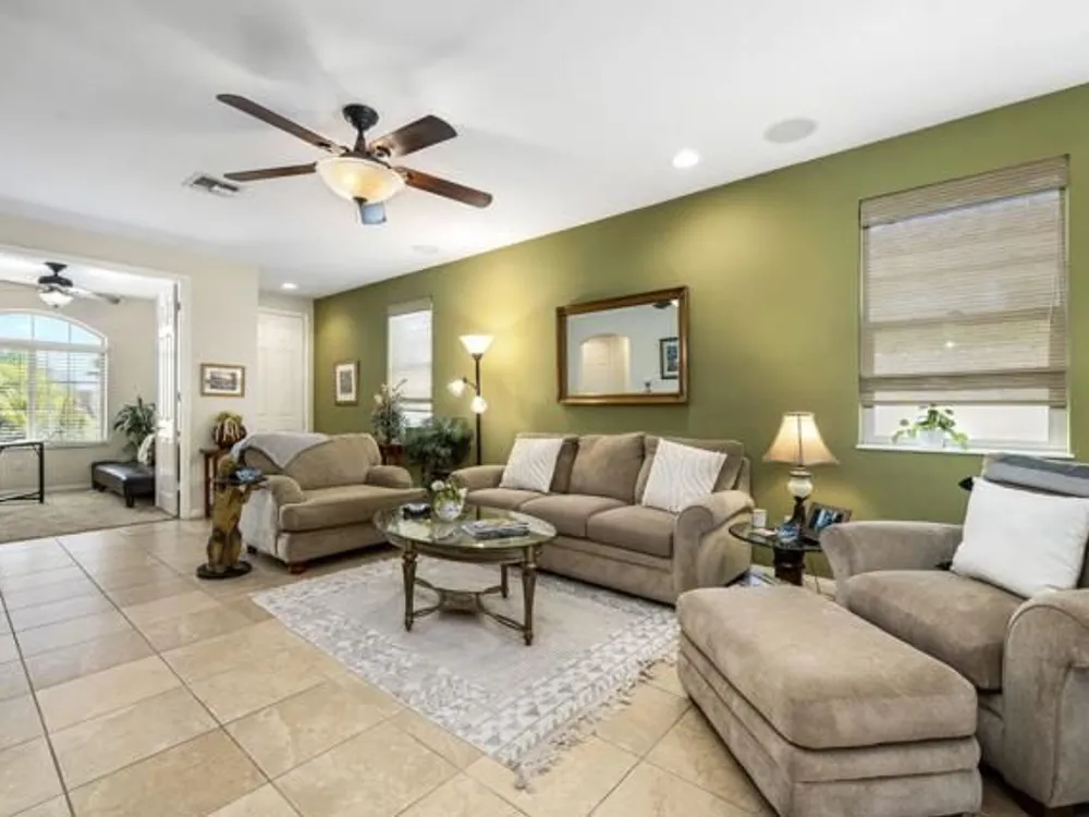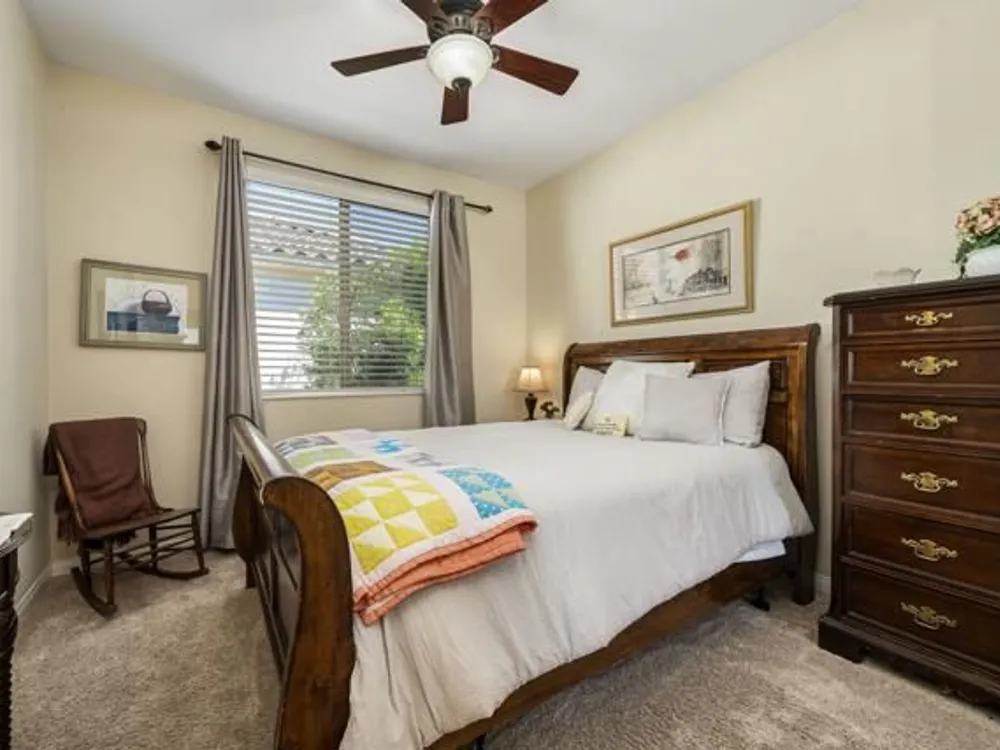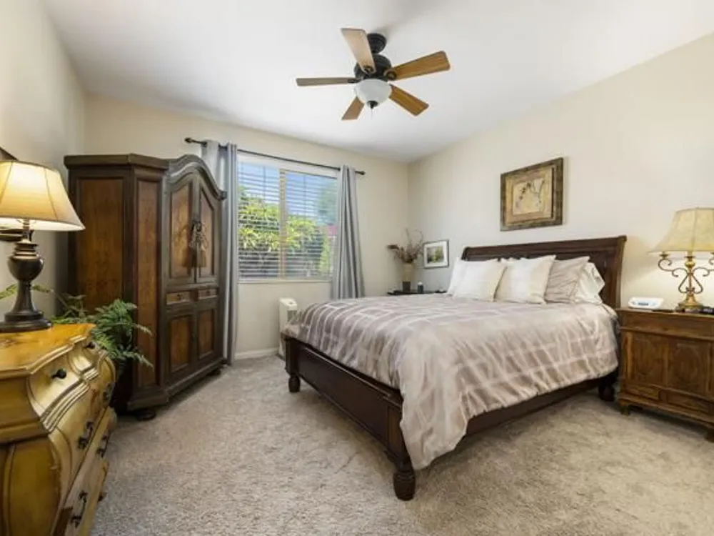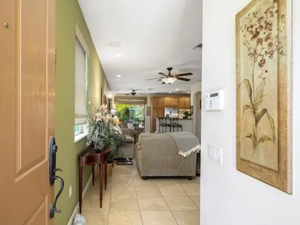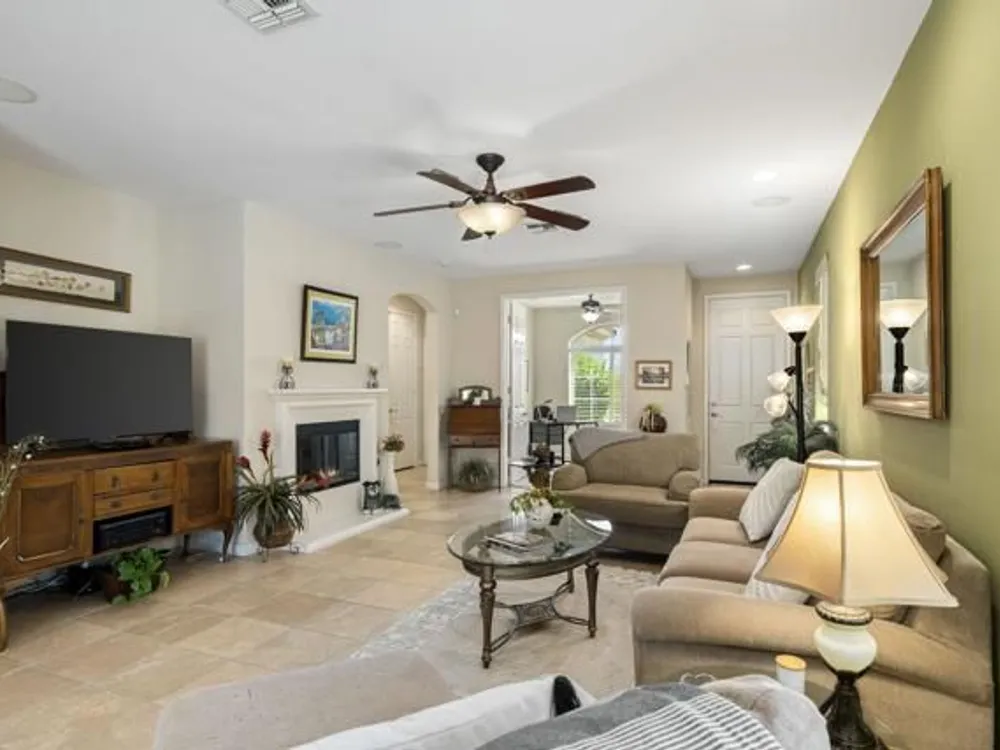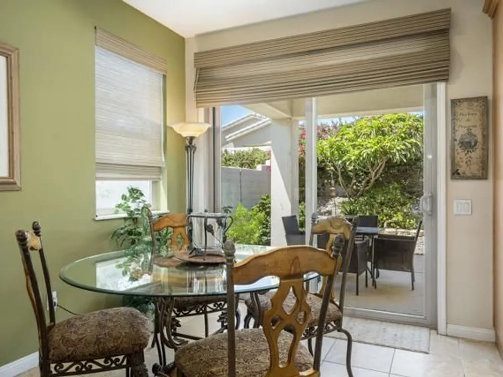 This beautifully-maintained San Ysidro model in the highly sought-after 55+ community of Sun City Shadow Hills is offered FURNISHED. Ideally located across from a greenbelt and near the dog park, this inviting home offers two spacious bedrooms + a versatile DEN, two baths, and ample living space. The primary suite offers a spacious en-suite bath, large walk-in shower, and walk-in closet, while the kitchen features a gas cooktop, double-wall oven, STAINLESS STEEL REFRIGERATOR, and generous counter space ideal for entertaining. A separate laundry room with utility sink, washer, and gas dryer adds convenience, and the two-car garage includes BUILT-IN CABINETS and a water-conserving hot water recirculating pump. Interior highlights include custom designer paint, extended Italian porcelain tile floors, a cozy FIREPLACE with reflective fire glass, SURROUND SOUND in the Great Room, and ceiling fans throughout, including the patio. Recent updates bring peace of mind with a NEWER HVAC CONDENSER (2022), York furnace blower (2025), Lift Master garage door motor (2024), newer refrigerator (2021), garbage disposal (2022), clothes washer and thermostat (2022). The private backyard is beautifully landscaped with lush lawn, mature Plumeria trees, low-voltage lighting, upgraded hardscape, and a soothing fountain with remote. Enjoy resort-style living with access to golf, tennis, pools, fitness centers, restaurants, social clubs, and more. Move-in ready and waiting for you to live the lifestyle you deserve! Schedule a private tour today!