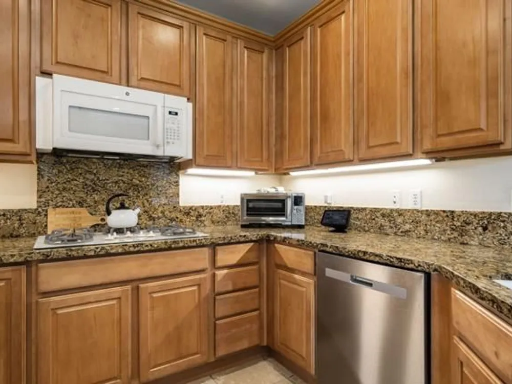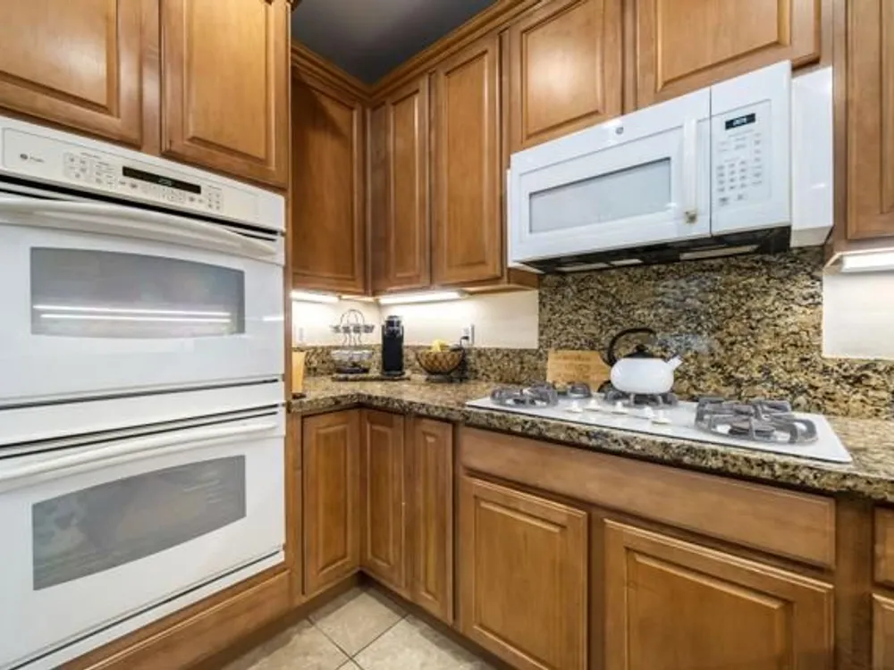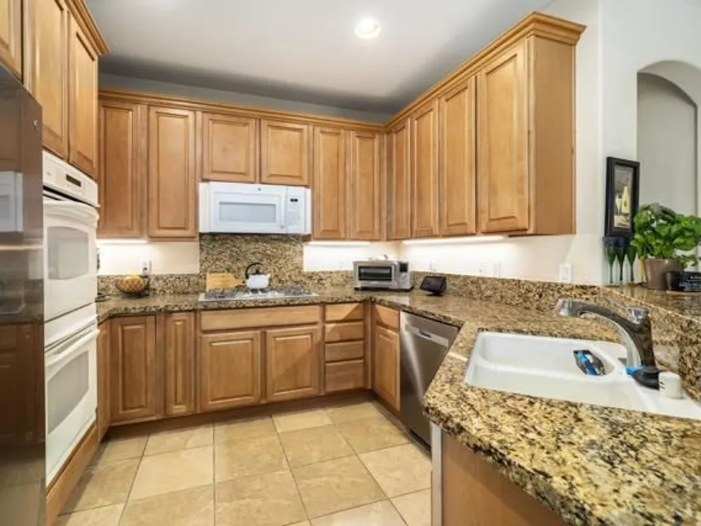 - Gas Cooktop, Microwave, Convection Oven, Self Cleaning Oven, Vented Exhaust Fan, Water Line to Refrigerator, Refrigerator, Disposal, Dishwasher, Gas Water Heater, Hot Water Circulator