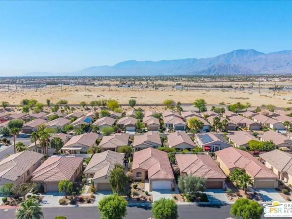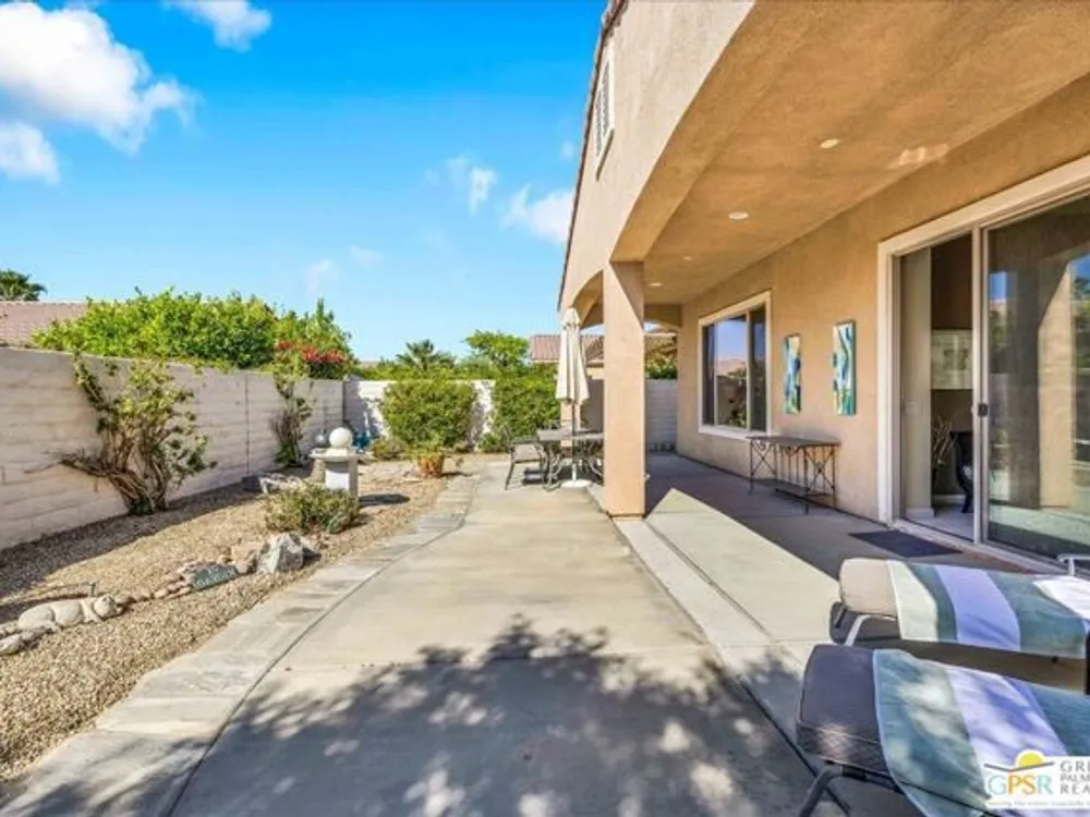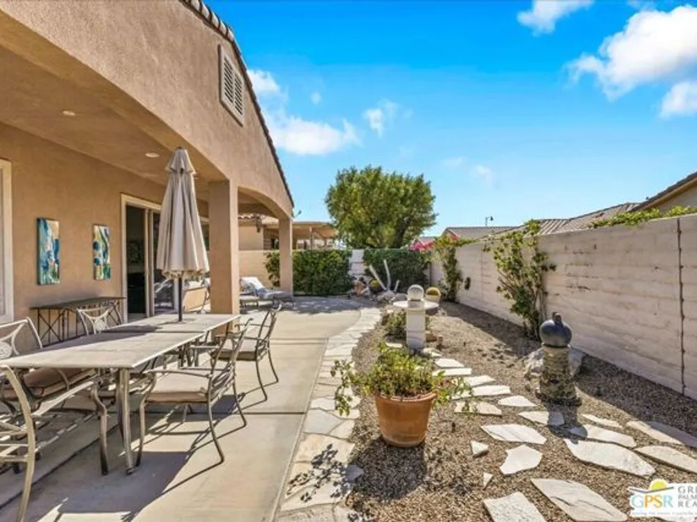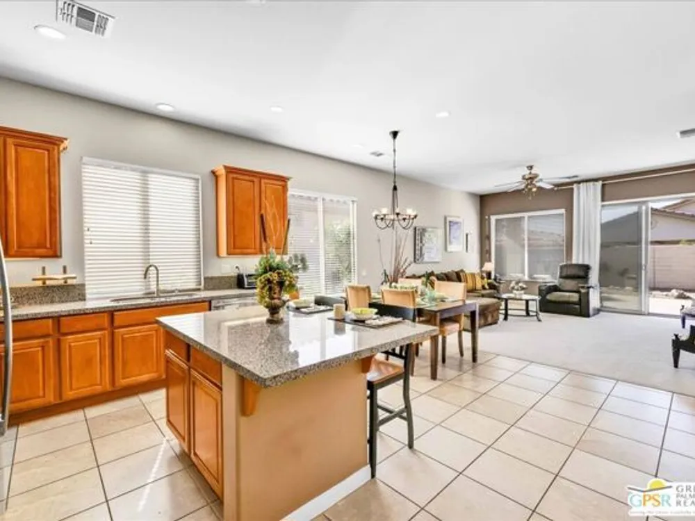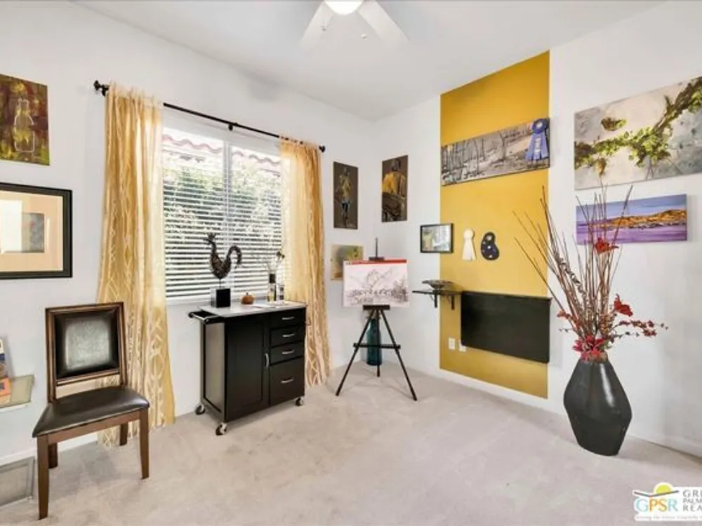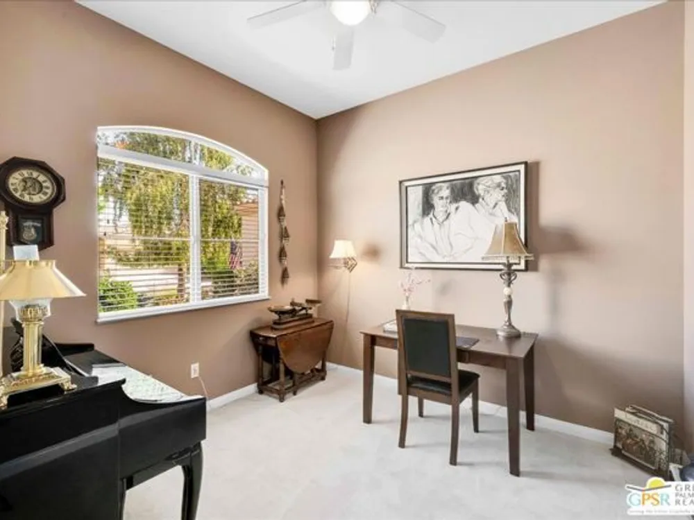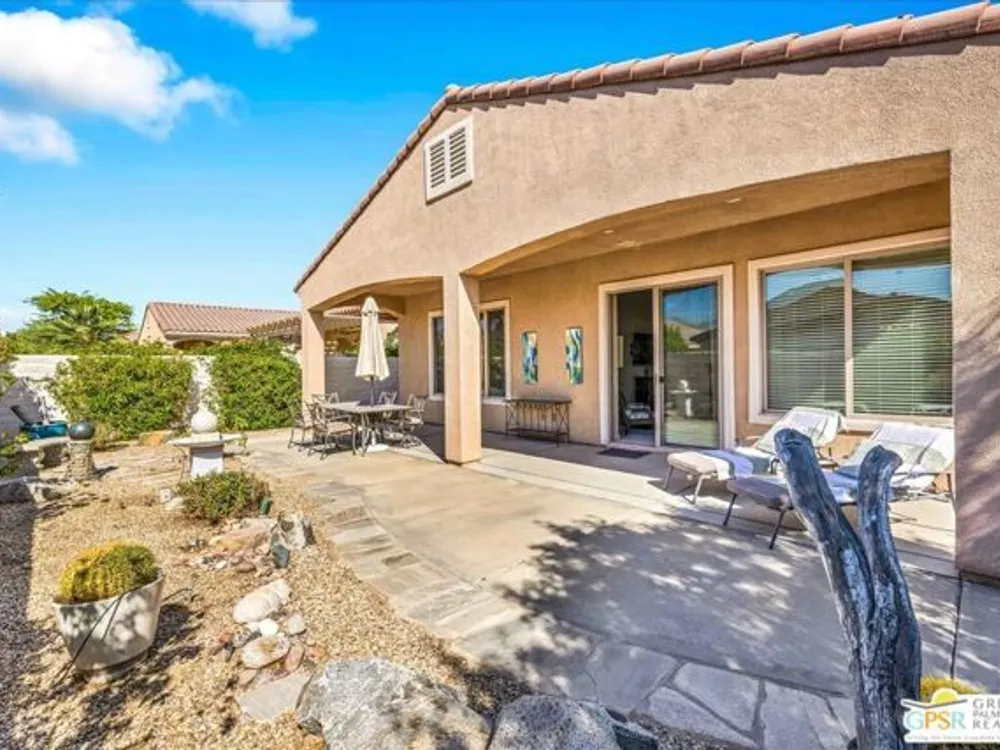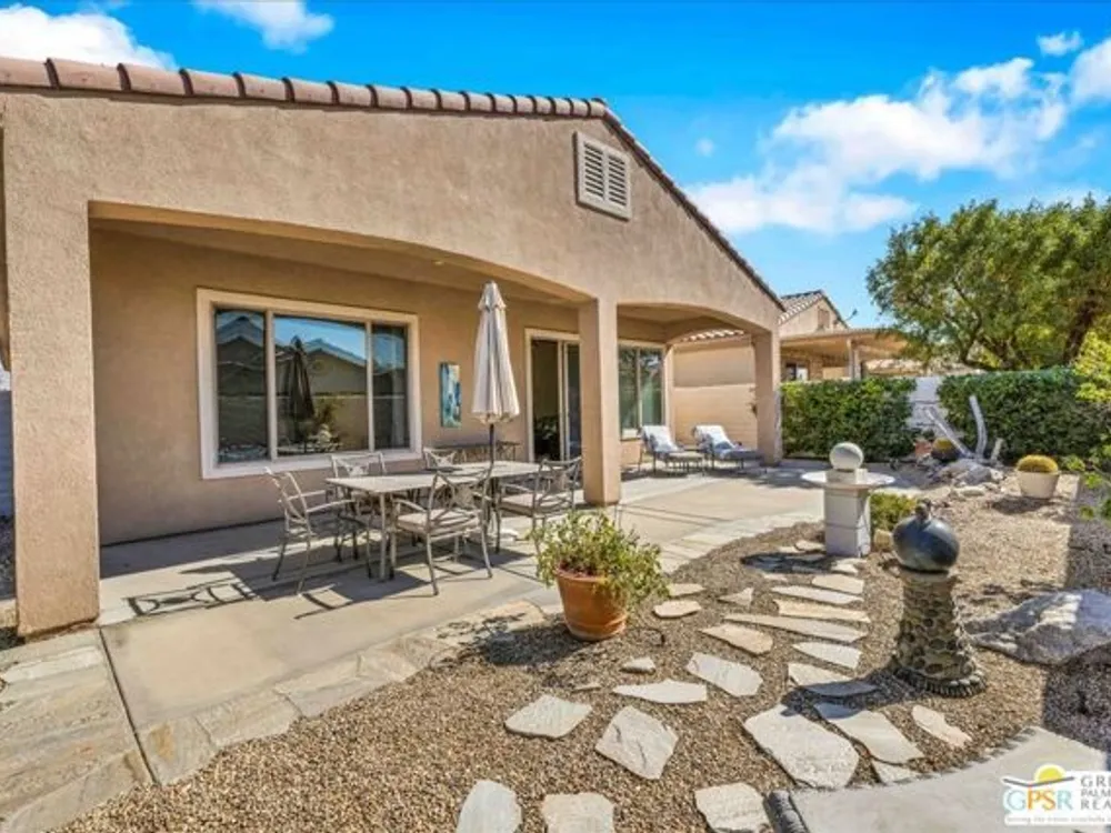 Welcome to your desert oasis in Sun City Shadow Hills! This popular Serrente model offers a comfortable and convenient lifestyle with 2 bedrooms, 2 bathrooms, a den, and an open living space. The kitchen is a chef's delight, featuring granite countertops, wooden cabinets, and stainless steel appliances. Enjoy breakfast at the kitchen island, which provides additional counter space and storage. The dry bar and built-in cabinets offer even more storage and entertainment space. Relax on the tile floors throughout the main living areas, and enjoy the cozy new carpet in the bedrooms and living room. The primary suite is a true retreat with dual vanities, a walk-in shower, and a spacious walk-in closet. A separate guest bedroom and bathroom offer privacy for visitors. The second bedroom is currently used as an art studio but can easily be converted back to a bedroom. Step outside to your private patio, perfect for outdoor dining or simply enjoying the desert sunshine. The expansive yard offers plenty of space for gardening or creating your own personal oasis. The 2-car garage provides ample parking and additional storage space. Live the Resort Lifestyle: Located in the vibrant community of Sun City Shadow Hills, you'll have access to an array of amenities designed to enhance your active adult lifestyle. Enjoy two 18-hole golf courses, indoor and outdoor pools, fully equipped gyms, clubhouses, restaurants, and banquet facilities. With so much to do, you'll feel like you're on vacation every day! Community Connection: Explore the community on foot with the many walking and biking paths, perfect for socializing with neighbors and enjoying the beautiful desert scenery. Don't miss this opportunity to embrace the relaxed and luxurious lifestyle that Sun City Shadow Hills offers. Schedule your showing today!