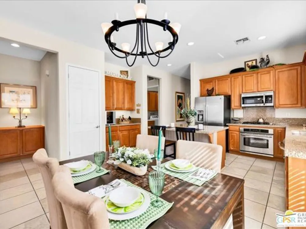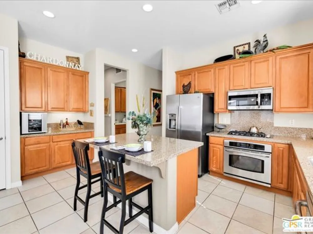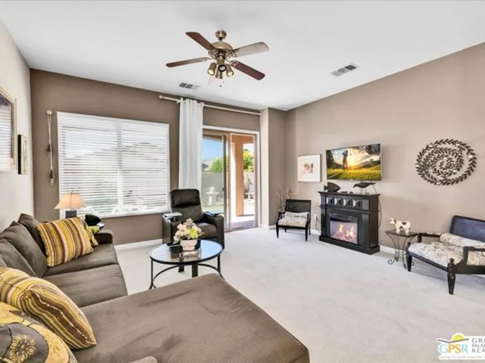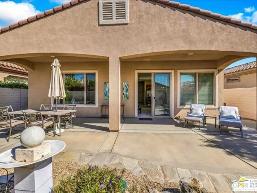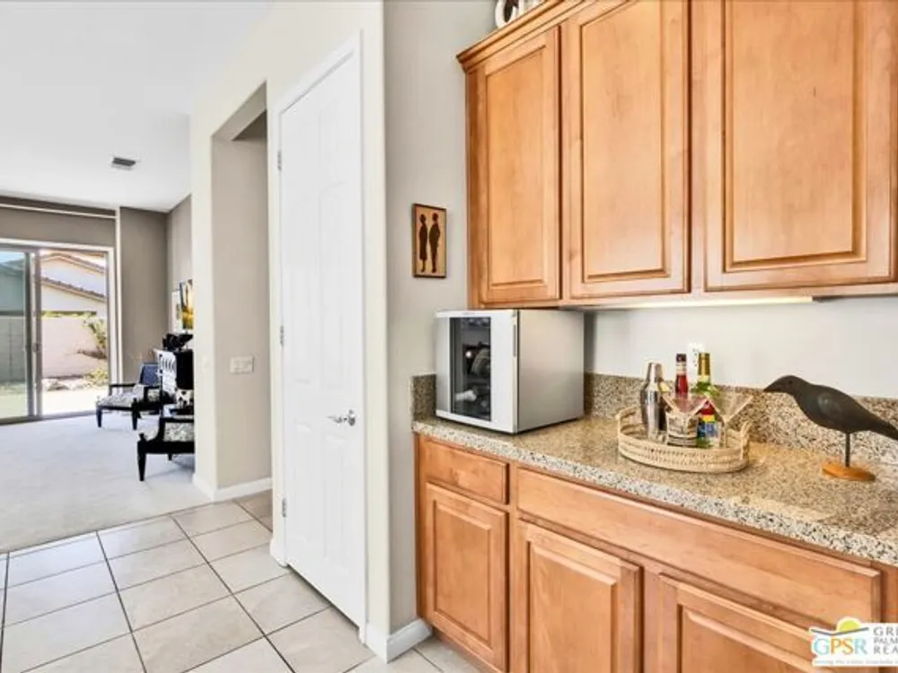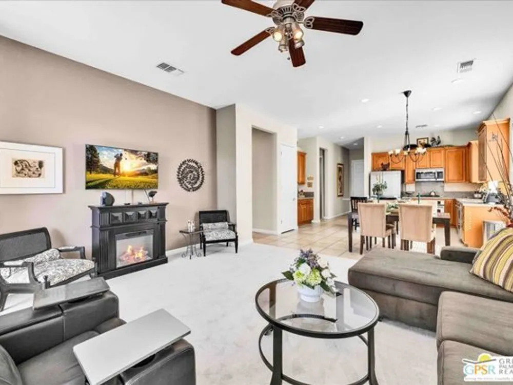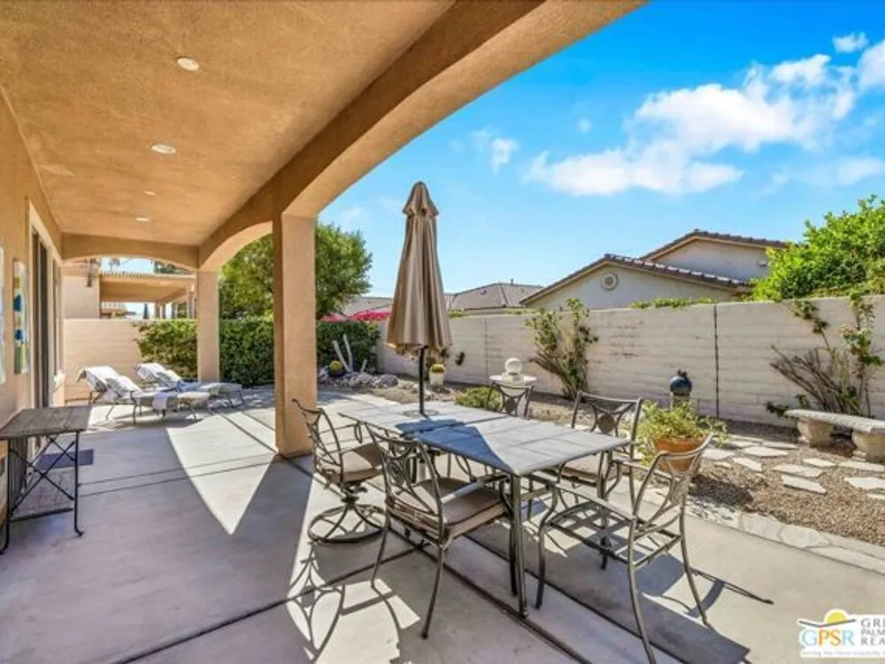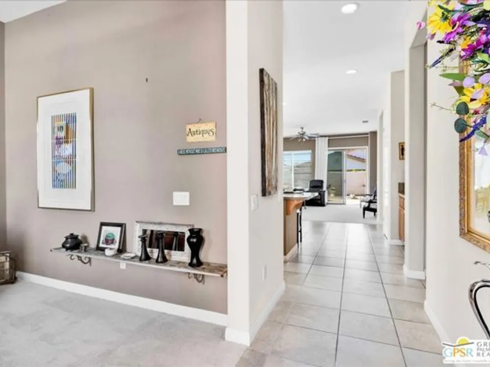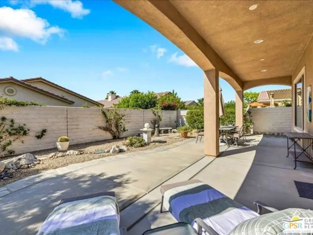 Welcome to your desert oasis in Sun City Shadow Hills! This popular Serrente model offers a comfortable and convenient lifestyle with 2 bedrooms, 2 bathrooms, a den, and an open living space. The kitchen is a chef's delight, featuring granite countertops, wooden cabinets, and stainless steel appliances. Enjoy breakfast at the kitchen island, which provides additional counter space and storage. The dry bar and built-in cabinets offer even more storage and entertainment space. Relax on the tile floors throughout the main living areas, and enjoy the cozy new carpet in the bedrooms and living room. The primary suite is a true retreat with dual vanities, a walk-in shower, and a spacious walk-in closet. A separate guest bedroom and bathroom offer privacy for visitors. The second bedroom is currently used as an art studio but can easily be converted back to a bedroom. Step outside to your private patio, perfect for outdoor dining or simply enjoying the desert sunshine. The expansive yard offers plenty of space for gardening or creating your own personal oasis. The 2-car garage provides ample parking and additional storage space. Live the Resort Lifestyle: Located in the vibrant community of Sun City Shadow Hills, you'll have access to an array of amenities designed to enhance your active adult lifestyle. Enjoy two 18-hole golf courses, indoor and outdoor pools, fully equipped gyms, clubhouses, restaurants, and banquet facilities. With so much to do, you'll feel like you're on vacation every day! Community Connection: Explore the community on foot with the many walking and biking paths, perfect for socializing with neighbors and enjoying the beautiful desert scenery. Don't miss this opportunity to embrace the relaxed and luxurious lifestyle that Sun City Shadow Hills offers. Schedule your showing today!