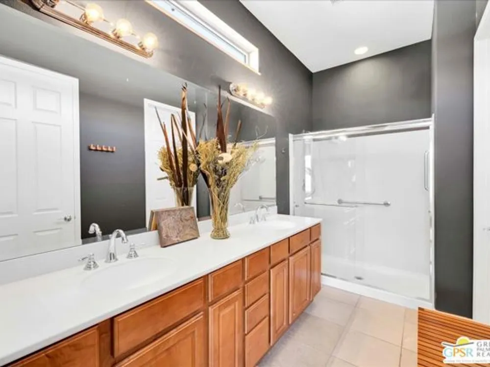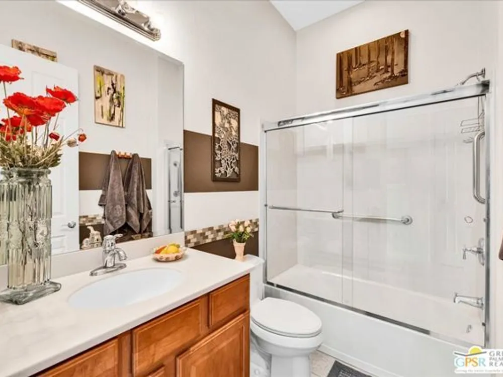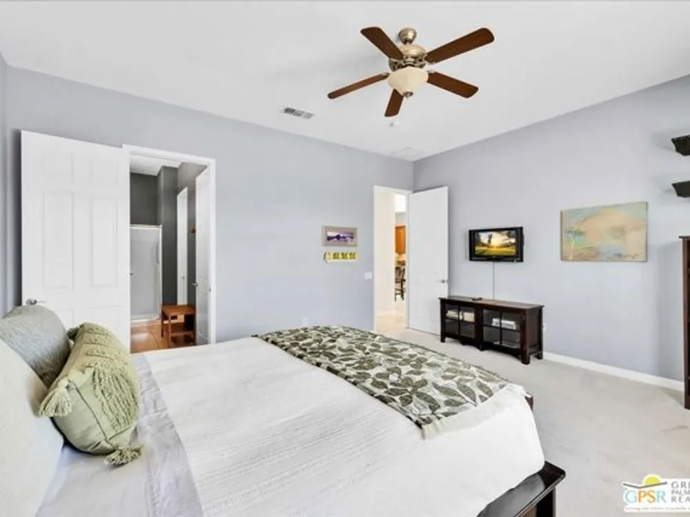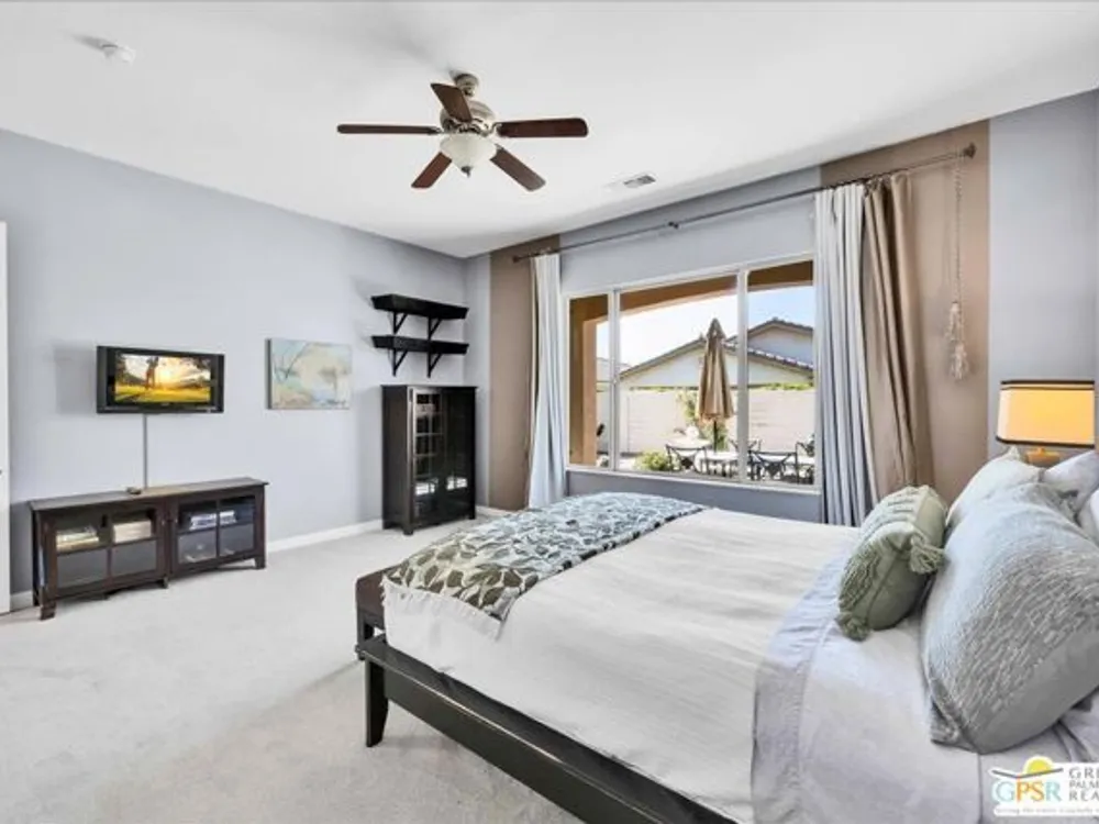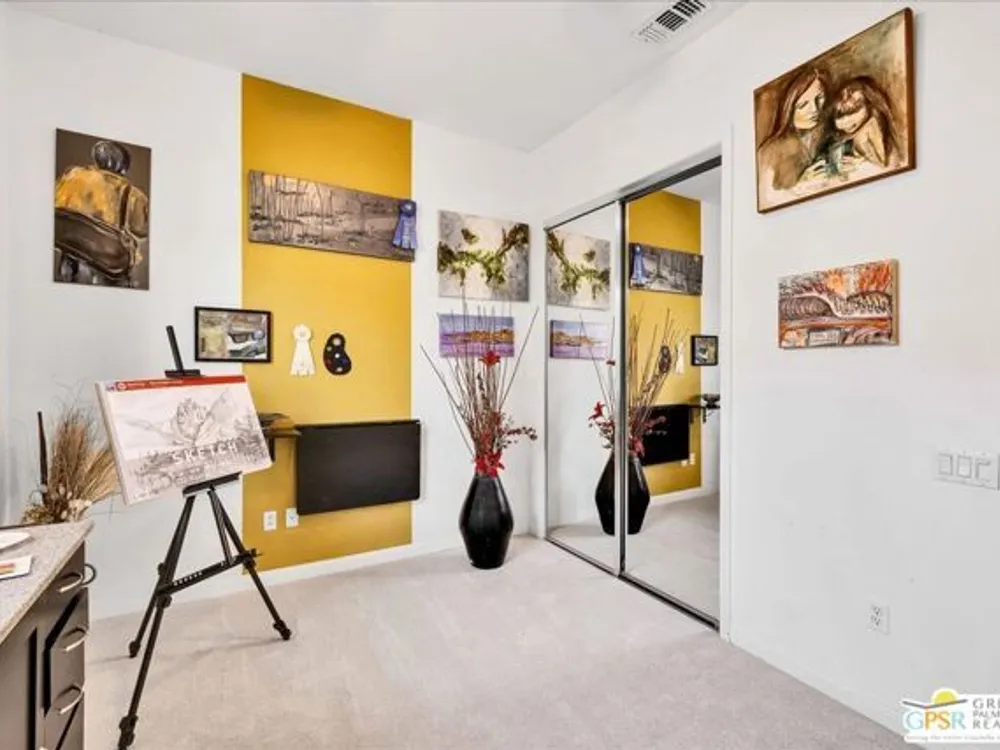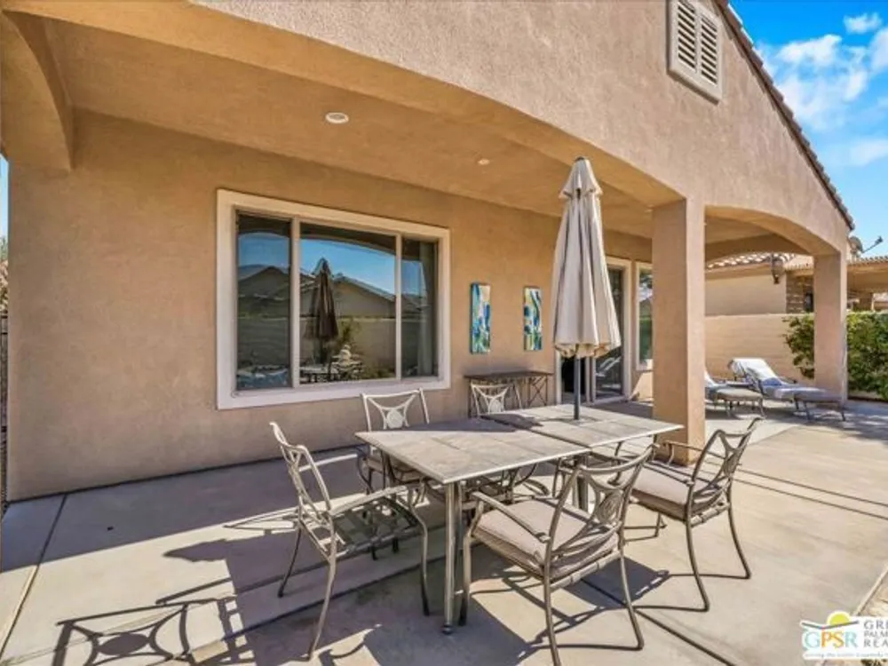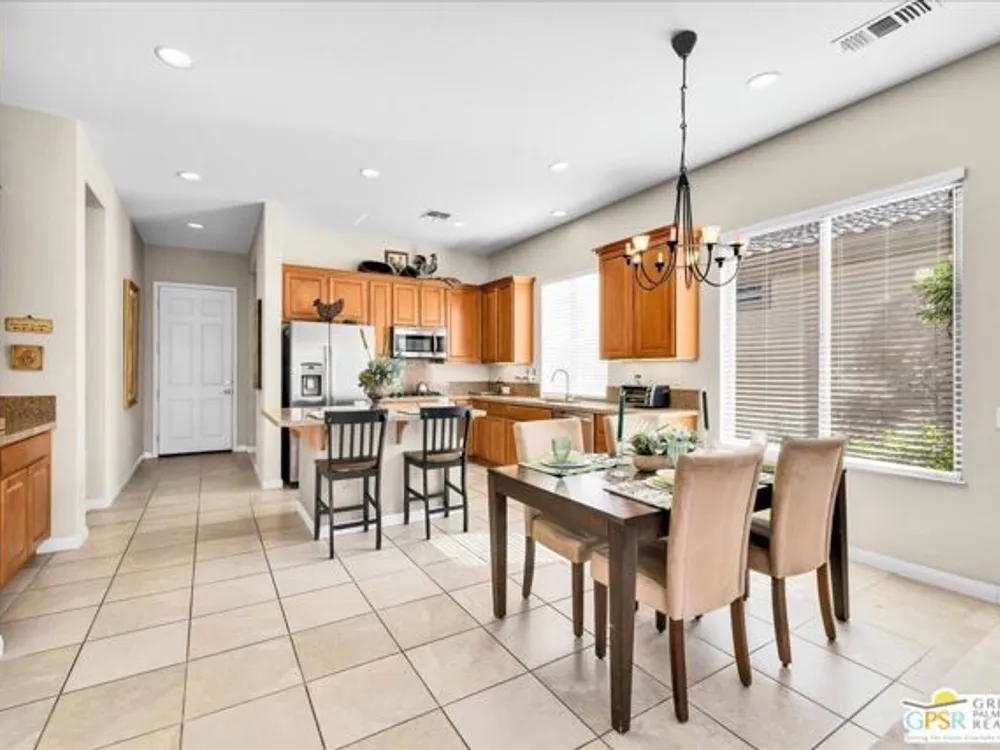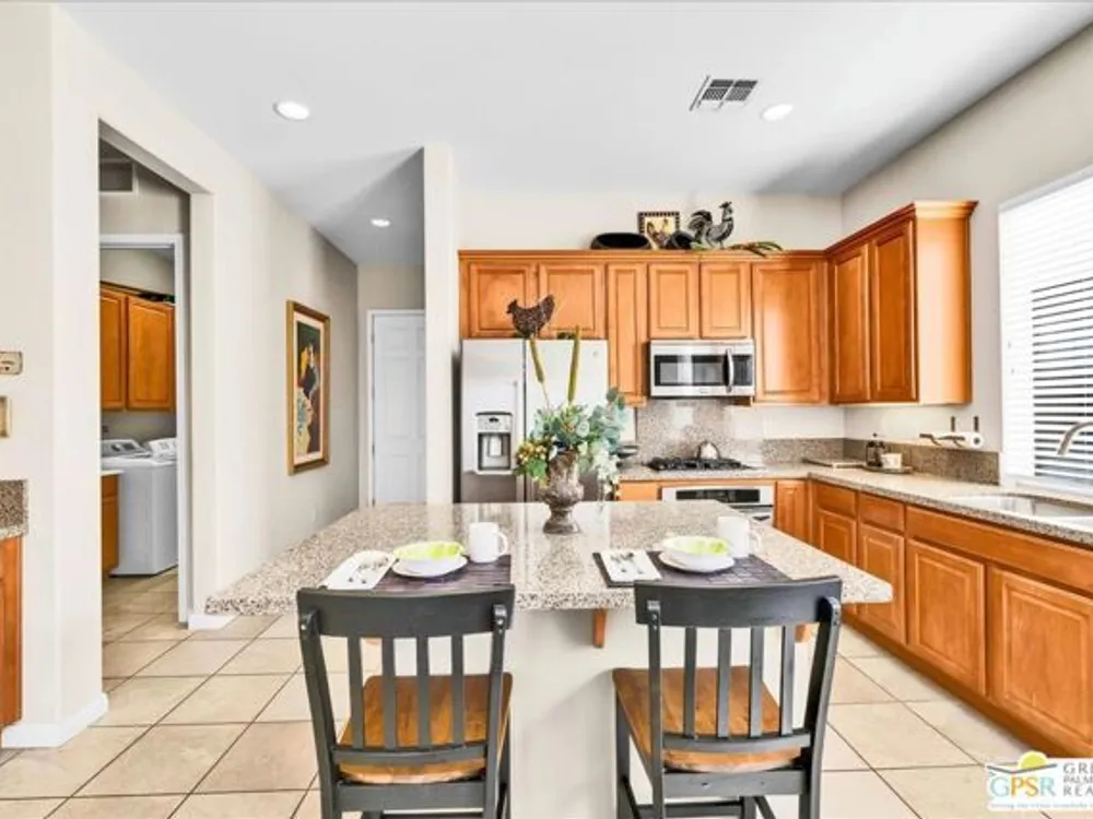 Welcome to your desert oasis in Sun City Shadow Hills! This popular Serrente model offers a comfortable and convenient lifestyle with 2 bedrooms, 2 bathrooms, a den, and an open living space. The kitchen is a chef's delight, featuring granite countertops, wooden cabinets, and stainless steel appliances. Enjoy breakfast at the kitchen island, which provides additional counter space and storage. The dry bar and built-in cabinets offer even more storage and entertainment space. Relax on the tile floors throughout the main living areas, and enjoy the cozy new carpet in the bedrooms and living room. The primary suite is a true retreat with dual vanities, a walk-in shower, and a spacious walk-in closet. A separate guest bedroom and bathroom offer privacy for visitors. The second bedroom is currently used as an art studio but can easily be converted back to a bedroom. Step outside to your private patio, perfect for outdoor dining or simply enjoying the desert sunshine. The expansive yard offers plenty of space for gardening or creating your own personal oasis. The 2-car garage provides ample parking and additional storage space. Live the Resort Lifestyle: Located in the vibrant community of Sun City Shadow Hills, you'll have access to an array of amenities designed to enhance your active adult lifestyle. Enjoy two 18-hole golf courses, indoor and outdoor pools, fully equipped gyms, clubhouses, restaurants, and banquet facilities. With so much to do, you'll feel like you're on vacation every day! Community Connection: Explore the community on foot with the many walking and biking paths, perfect for socializing with neighbors and enjoying the beautiful desert scenery. Don't miss this opportunity to embrace the relaxed and luxurious lifestyle that Sun City Shadow Hills offers. Schedule your showing today!