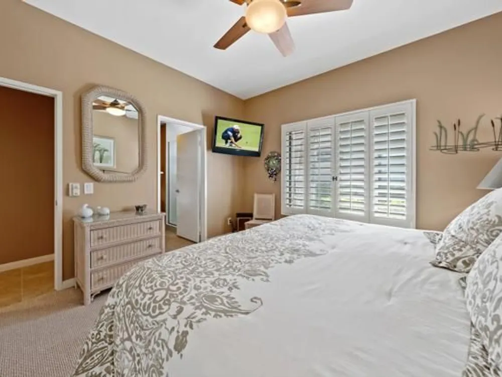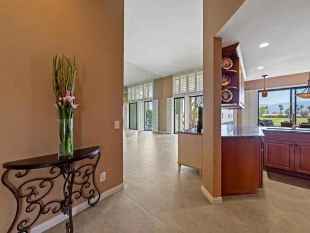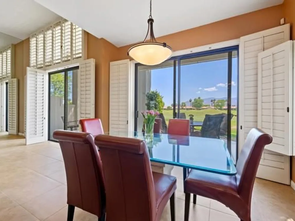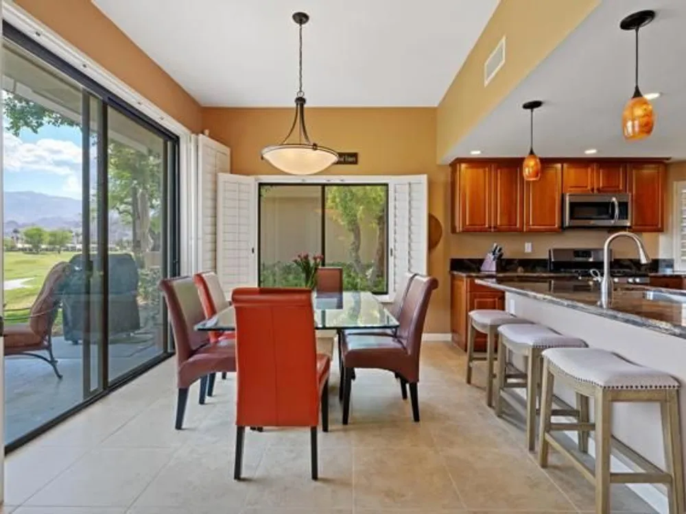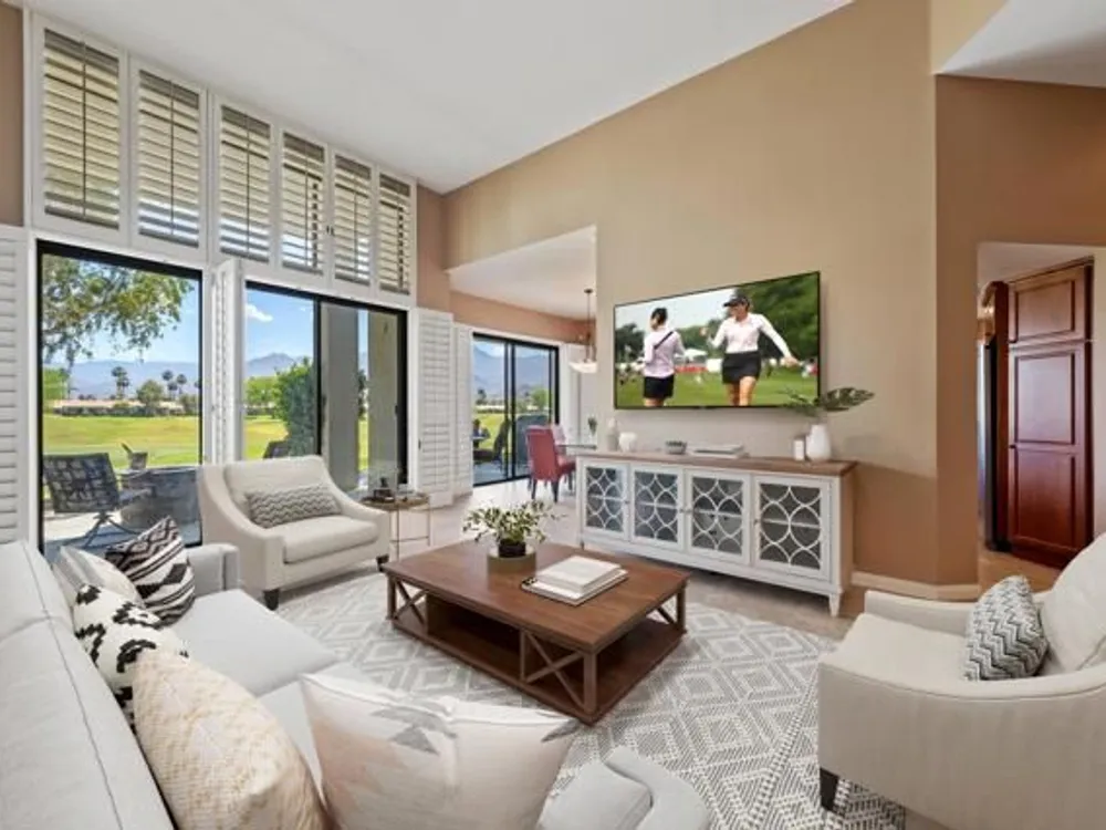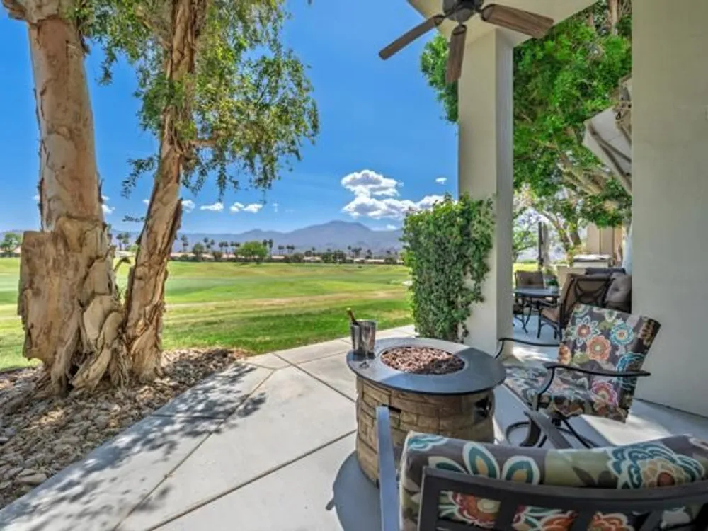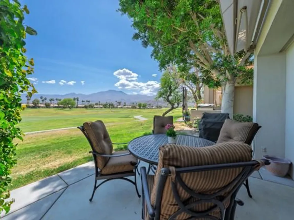 Positioned directly on the 14th fairway of the acclaimed PGA West Stadium Course, this beautifully appointed Champion 3 model showcases sweeping double fairway views with the dramatic Santa Rosa Mountains as a backdrop. Featuring 3 bedrooms and 2.5 baths, this residence offers an exceptional layout ideal for both quiet enjoyment and effortless entertaining.The interior welcomes you with graceful tile flooring, granite kitchen counters, and stainless steel appliances. Both the primary and guest bathrooms have been thoughtfully updated. Key upgrades include a tankless water heater, a 2018 HVAC system with Nest thermostat, and all window and slider glass with new seals installed in 2024 for improved energy efficiency and comfort.The expansive rear patio--complete with retractable awning--is a true highlight. It offers a seamless extension of indoor living space and the perfect setting to enjoy your morning coffee, al fresco dining, or views of the annual American Express golf tournament. Just a short stroll from one of the many community pools and spas, this home provides a superb blend of privacy and accessibility.Homeowners enjoy the convenience of an HOA that covers exterior maintenance, cable and WiFi, landscaping, trash service, and 24-hour guard-gated security. PGA West offers a range of membership opportunities with access to six world-class golf courses, tennis, pickleball, fitness facilities, multiple dining venues, a vibrant social calendar, dog park, and Bocce courts.Located minutes from Old Town La Quinta, residents are close to boutique shopping, charming cafes, fine dining, and seasonal markets. An exceptional opportunity to enjoy the best of resort living in one of La Quinta's premier communities. Living room, guest bedroom and primary bedroom display virtual staging.