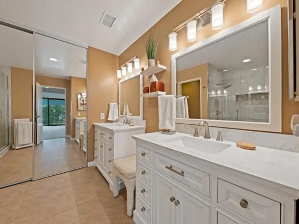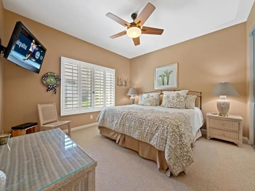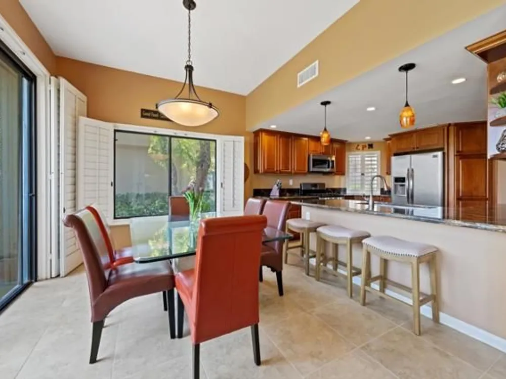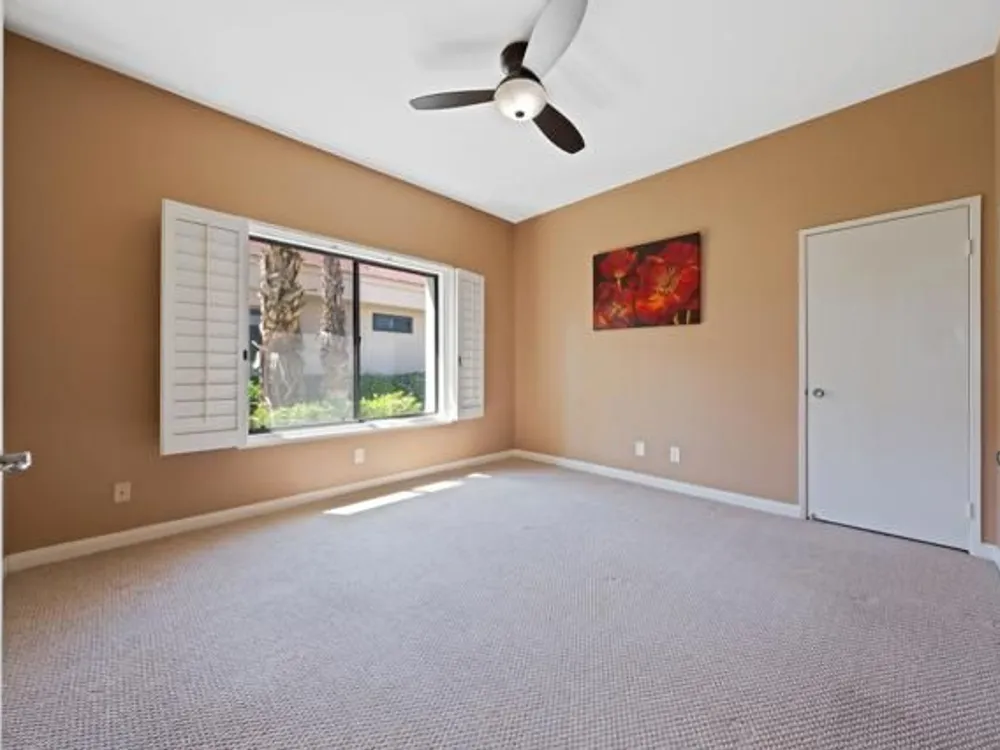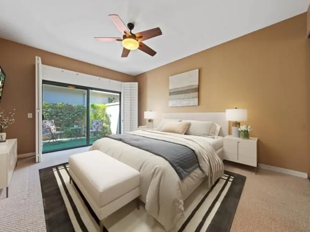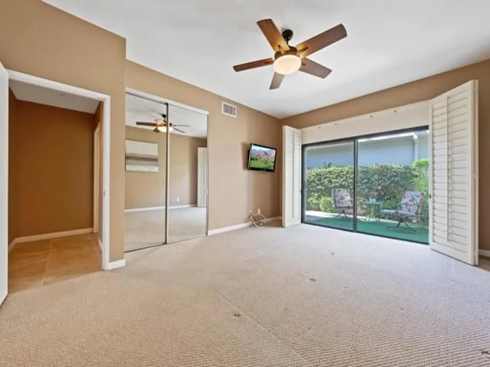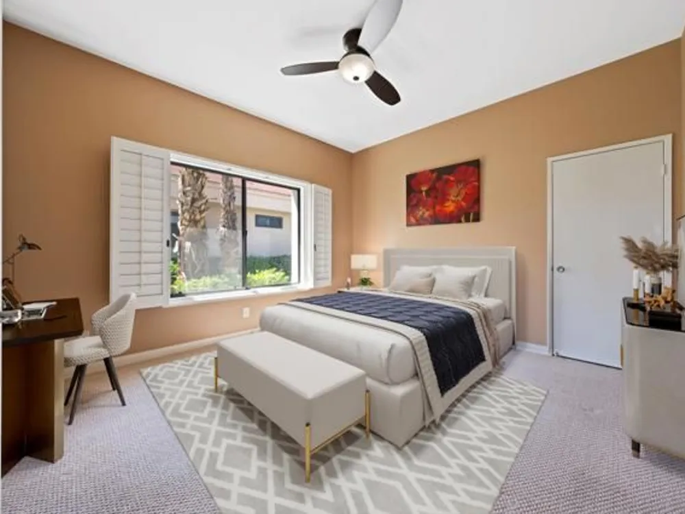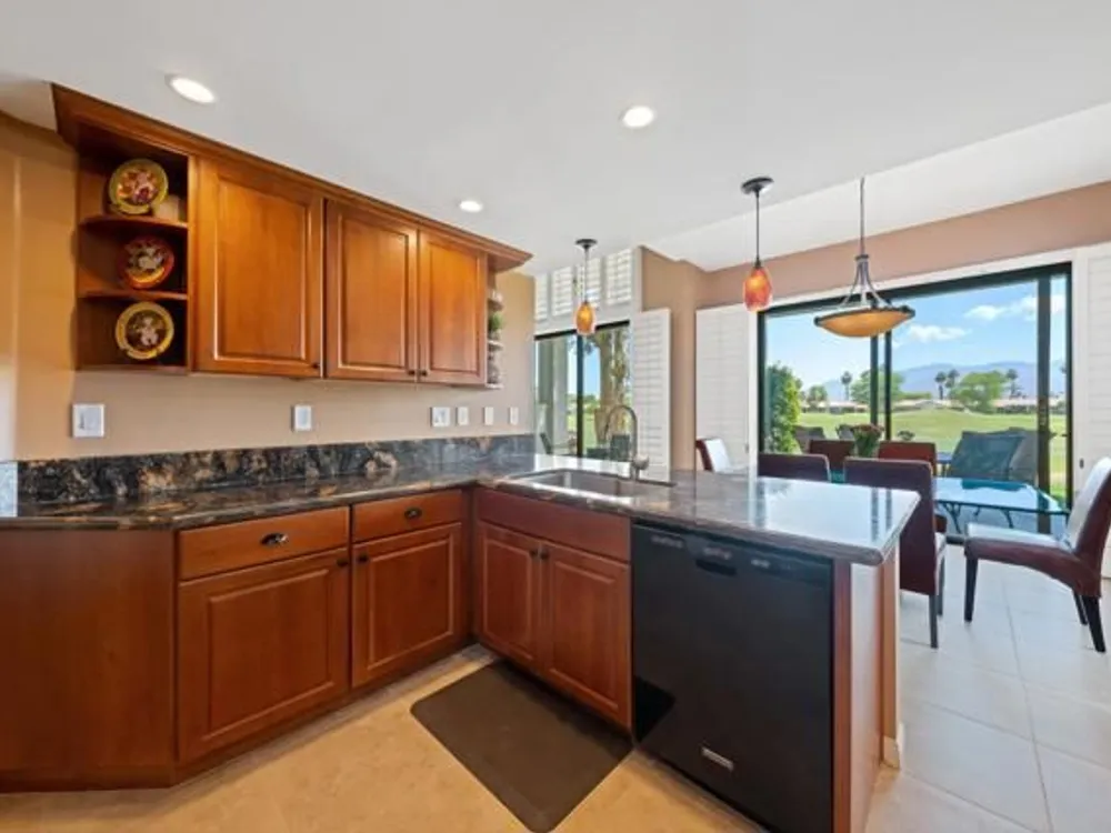 Positioned directly on the 14th fairway of the acclaimed PGA West Stadium Course, this beautifully appointed Champion 3 model showcases sweeping double fairway views with the dramatic Santa Rosa Mountains as a backdrop. Featuring 3 bedrooms and 2.5 baths, this residence offers an exceptional layout ideal for both quiet enjoyment and effortless entertaining.The interior welcomes you with graceful tile flooring, granite kitchen counters, and stainless steel appliances. Both the primary and guest bathrooms have been thoughtfully updated. Key upgrades include a tankless water heater, a 2018 HVAC system with Nest thermostat, and all window and slider glass with new seals installed in 2024 for improved energy efficiency and comfort.The expansive rear patio--complete with retractable awning--is a true highlight. It offers a seamless extension of indoor living space and the perfect setting to enjoy your morning coffee, al fresco dining, or views of the annual American Express golf tournament. Just a short stroll from one of the many community pools and spas, this home provides a superb blend of privacy and accessibility.Homeowners enjoy the convenience of an HOA that covers exterior maintenance, cable and WiFi, landscaping, trash service, and 24-hour guard-gated security. PGA West offers a range of membership opportunities with access to six world-class golf courses, tennis, pickleball, fitness facilities, multiple dining venues, a vibrant social calendar, dog park, and Bocce courts.Located minutes from Old Town La Quinta, residents are close to boutique shopping, charming cafes, fine dining, and seasonal markets. An exceptional opportunity to enjoy the best of resort living in one of La Quinta's premier communities. Living room, guest bedroom and primary bedroom display virtual staging.