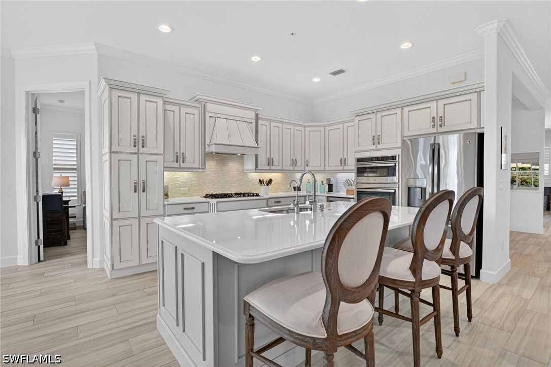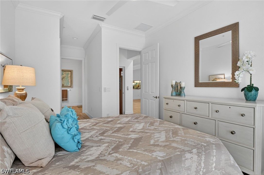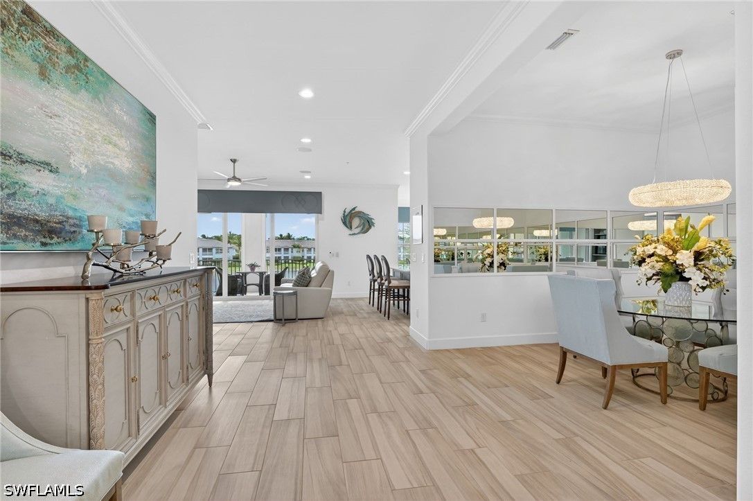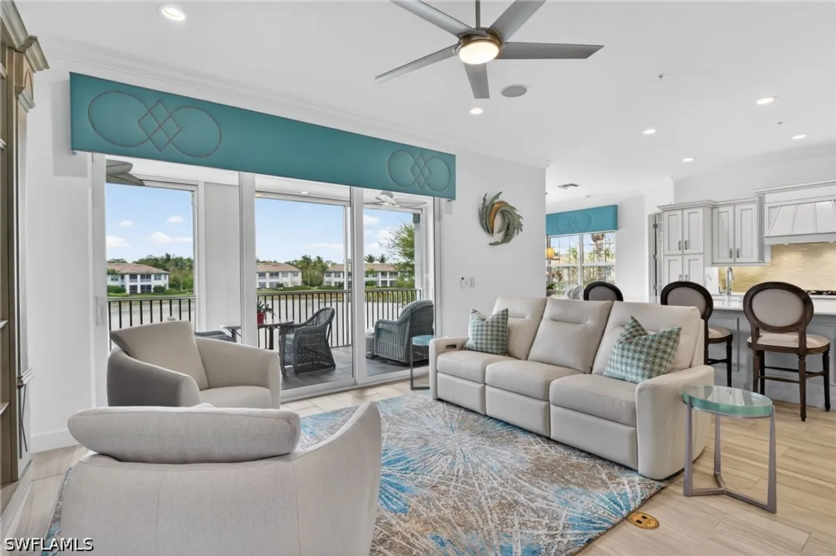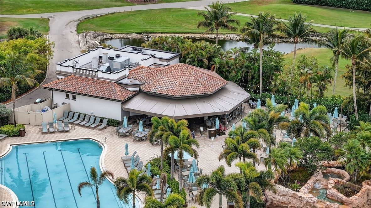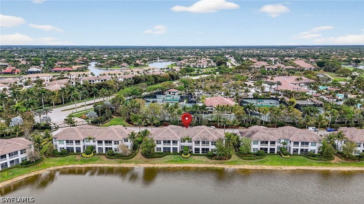 Live the Ultimate Florida Resort Lifestyle at Lely Resort. Rarely available, this exceptional second-floor unit offers 2,743 square feet of exquisitely designed indoor living space, combining elegance, comfort, and resort-style sophistication. Step into your private elevator and discover a dream kitchen featuring top-level Maple Alabaster cabinetry, snow-white quartz countertops, a center island perfect for gathering, a glass backsplash, natural gas cooktop, and a wine cooler—ideal for entertaining or enjoying quiet evenings at home. This meticulous home boasts three large ensuite bedrooms, a powder room, expansive walk-in closets, and sophisticated finishes, including plantation blinds, 8" solid core interior doors, NEW HVAC 10/15/24, and hurricane-rated windows and doors with electric roll-down shutters on the lanai. A free standing entertainment center in the Great Room, Sono sound system, and whole-house Kinetico water filtration system combine luxury with modern functionality. Light and bright with natural light, every main living space and the primary bedroom offer serene water views, making relaxation effortless. Level 6 staggered tile wood plank flooring completes the refined interior design. Step outside, and the Lely Resort lifestyle awaits. Three sparkling pools, cabanas, the famous Tiki Bar and Grill with cascading waterfall, lush tropical landscaping, and palm trees create a daily vacation atmosphere. Residents enjoy USTA Har-Tru tennis programs, pickleball, bocce, a fully attended fitness center, and a full-service spa. Fine dining, abundant recreational activities, or simply relaxing on your private lanai with a favorite beverage while watching one-of-a-kind Florida sunsets—this is life at its most indulgent. Perfectly situated, this home is minutes away from cultural attractions, water activities, and the soft white-sand beaches Naples is famous for. A wide variety of restaurants, boutique shopping, and top-tier services are nearby, with convenient access to Naples Airport for private jets or Fort Myers International Airport for domestic and international travel. Lely Resort isn’t just a home—it’s a private paradise and a lifestyle you can enjoy every day.