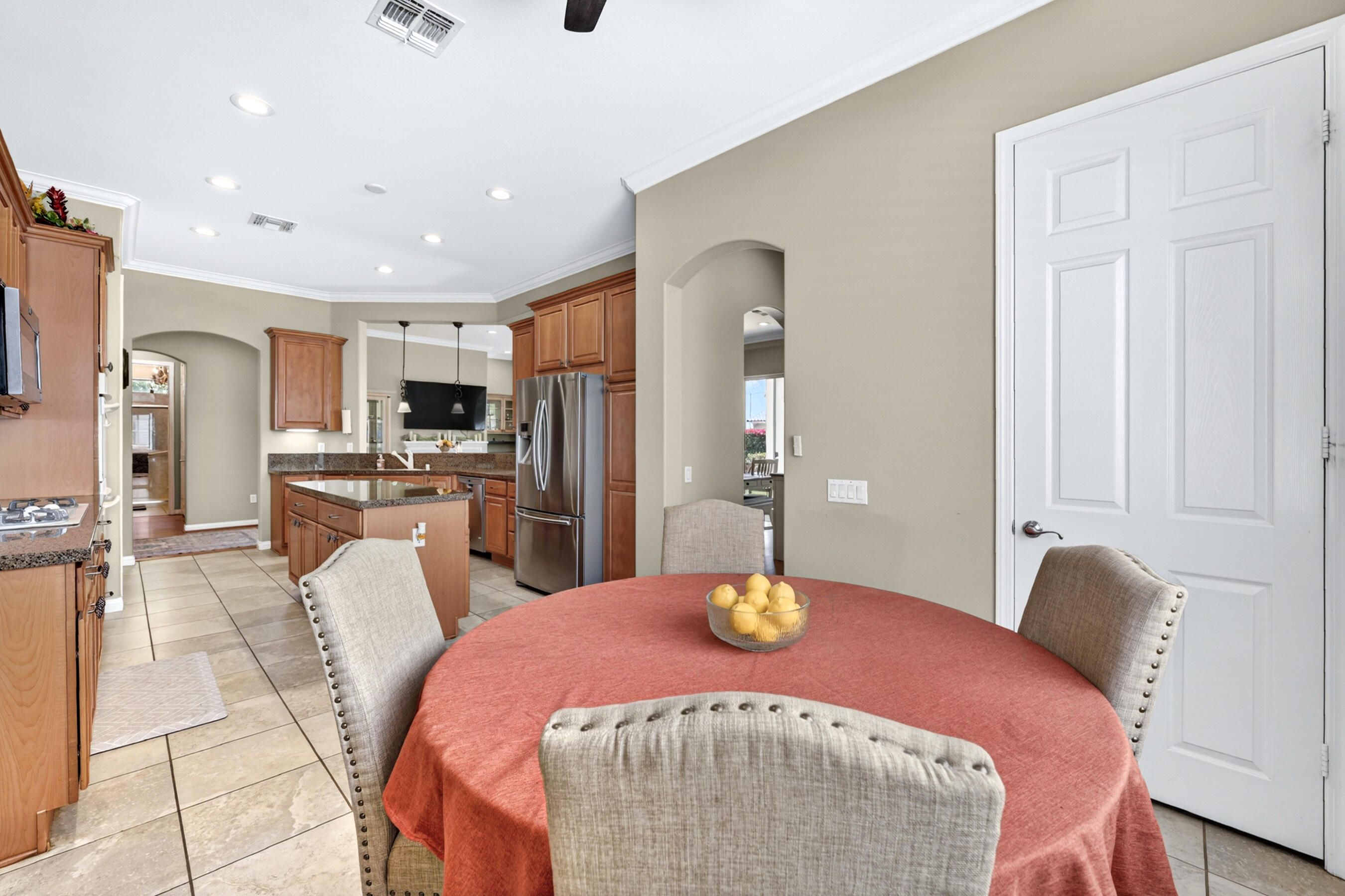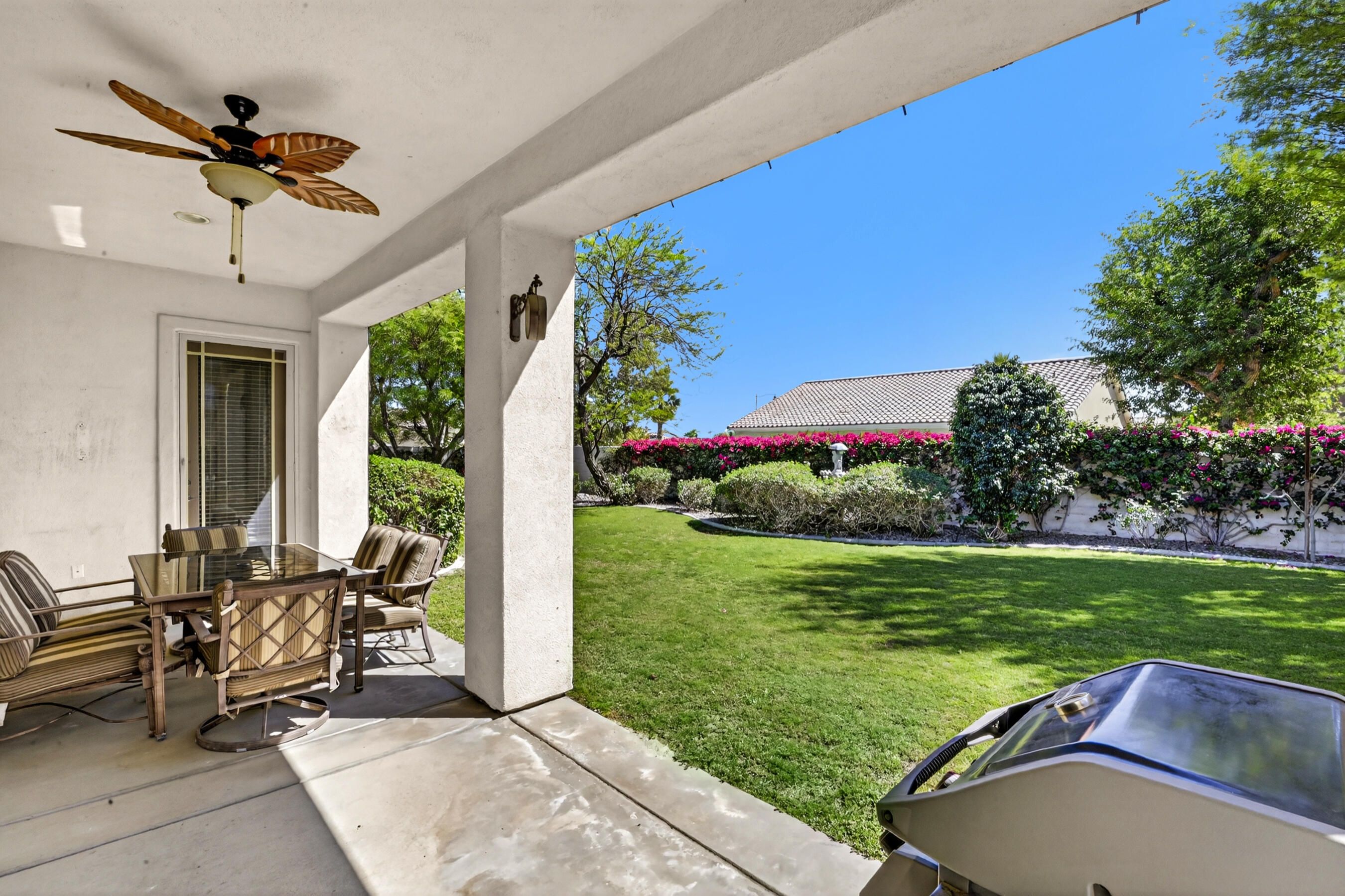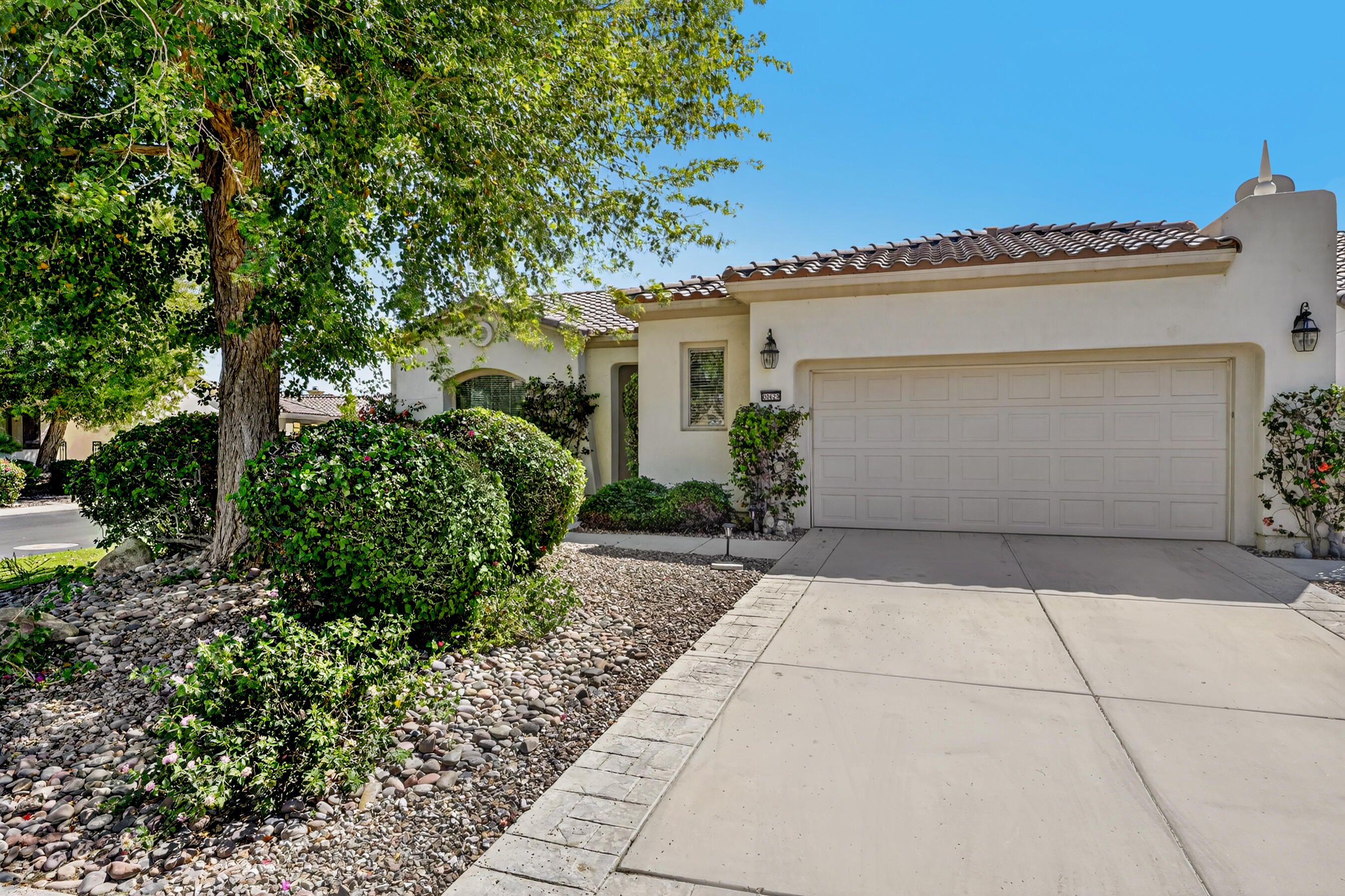 Welcome to this beautifully appointed San Emilio floor plan, ideally situated in Phase 1 of the highly sought-after 55+ community of Sun City Shadow Hills. Encompassing 1,823 square feet of thoughtfully designed living space, this residence is set on an expansive 8,712 square foot corner lot, offering enhanced privacy and an open, airy setting. Ideally located near the Montecito Clubhouse, the home provides both convenience and effortless access to the community's premier amenities. Step inside to a light-filled great room where the open-concept design seamlessly connects the living, dining, and kitchen areas--perfectly suited for both everyday living and elevated entertaining. The kitchen is tastefully appointed with granite slab countertops, abundant cabinetry, a charming breakfast nook, and a generous breakfast bar that anchors the space and invites gathering. The spacious primary suite offers a peaceful retreat, complete with dual vanities, ample storage, and a large walk-in closet. A well-separated guest bedroom and adjacent bathroom provide comfort and privacy for visitors. The den presents a refined and versatile space, ideal as a private office or thoughtfully arranged to accommodate overnight guests. Outdoors, the backyard is designed for relaxed desert living, featuring a covered patio, lush landscaping, and ample space to entertain or create your ideal outdoor retreat. Desirable southern exposure fills the yard with natural light throughout the day, enhancing both warmth and ambiance. Residents of Sun City Shadow Hills enjoy a premier resort-style lifestyle with access to championship golf courses, multiple clubhouses, pools and spas, state-of-the-art fitness centers, tennis, pickleball, and a vibrant social calendar. A rare opportunity to own a home that seamlessly blends comfort, location, and lifestyle--this is desert living at its finest. Furniture and golf cart available outside escrow.