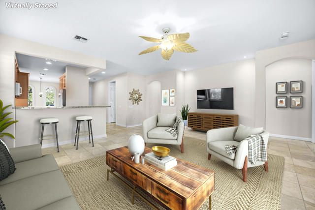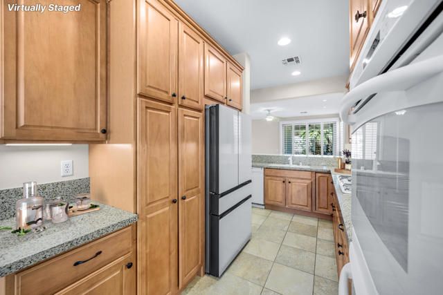 This gently lived-in San Vicente model radiates warmth and comfort, with a light, bright, neutral color palette that complements any decor style. Situated on a private, north-facing corner lot, the home features 2 bedrooms, a versatile den with double doors, and 2 bathrooms. The open floorplan creates seamless flow, and the den offers many options--office, hobby room, or guest space. To showcase its potential, the home has been virtually staged to inspire possibilities. Flooring is a mix of tile and luxury vinyl plank for easy care and style. The kitchen includes GE Profile dual convection ovens, slab granite counters, a 5-burner gas cooktop, and a microwave. A dining nook and breakfast bar add flexible dining spaces. The great room shines with recessed accent lighting, plantation shutters, and ceiling fans. The primary suite has sliding doors to the backyard retreat, dual vanities, and a walk-in closet. The guest bedroom, with mirrored wardrobe doors, sits next to a bath with tub/shower. A laundry room with deep sink and storage connects to the garage. Outdoors, enjoy a wrap-around covered patio with firepit, artificial turf, and elegant landscape lighting--perfect for desert evenings. Beyond your walls, Sun City Shadow Hills delivers resort-style living with two clubhouses, arts & crafts studios, fitness centers, indoor walking tracks, library, bistros, and game rooms. Residents enjoy two golf courses plus a lighted 18-hole putting course, indoor and outdoor pools & spas, and courts for tennis, pickleball, bocce, and shuffleboard. With more than 50 clubs, year-round activities, and 24/7 guard-gated security, this community offers connection, recreation, and peace of mind. Ideally located, Sun City Shadow Hills is just minutes from world-class dining, shopping, golf, and entertainment throughout the Coachella Valley. HOA dues include Internet. This isn't just a home--it's your gateway to an engaged and carefree desert lifestyle.