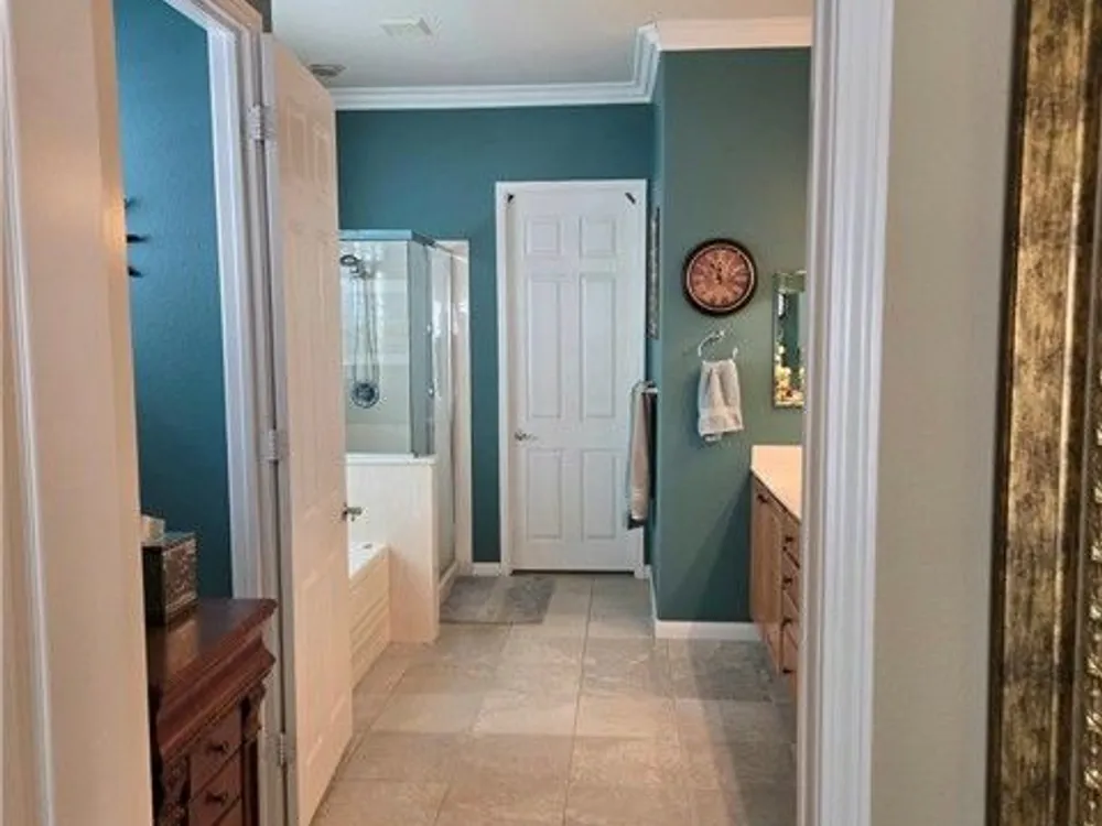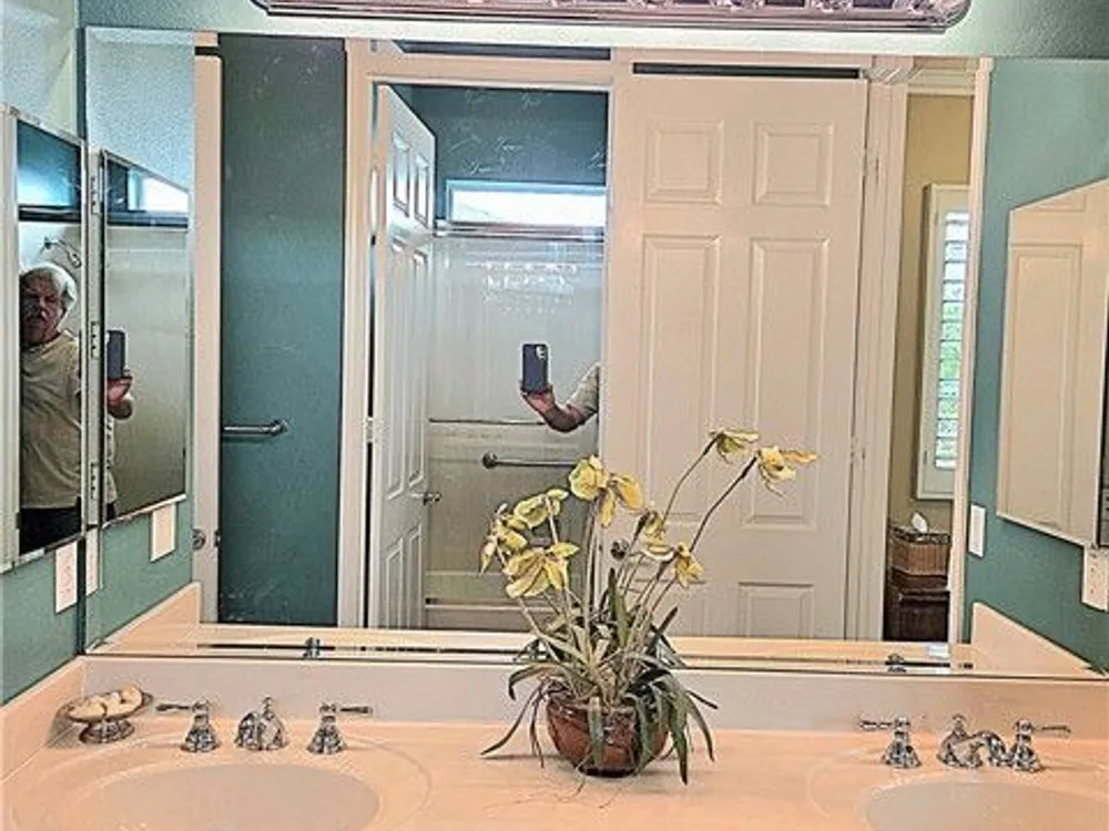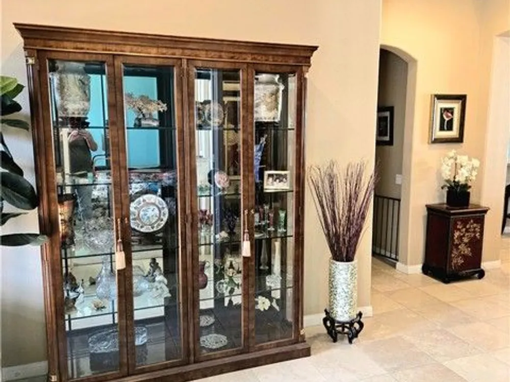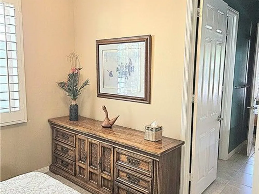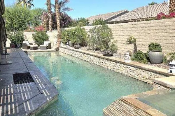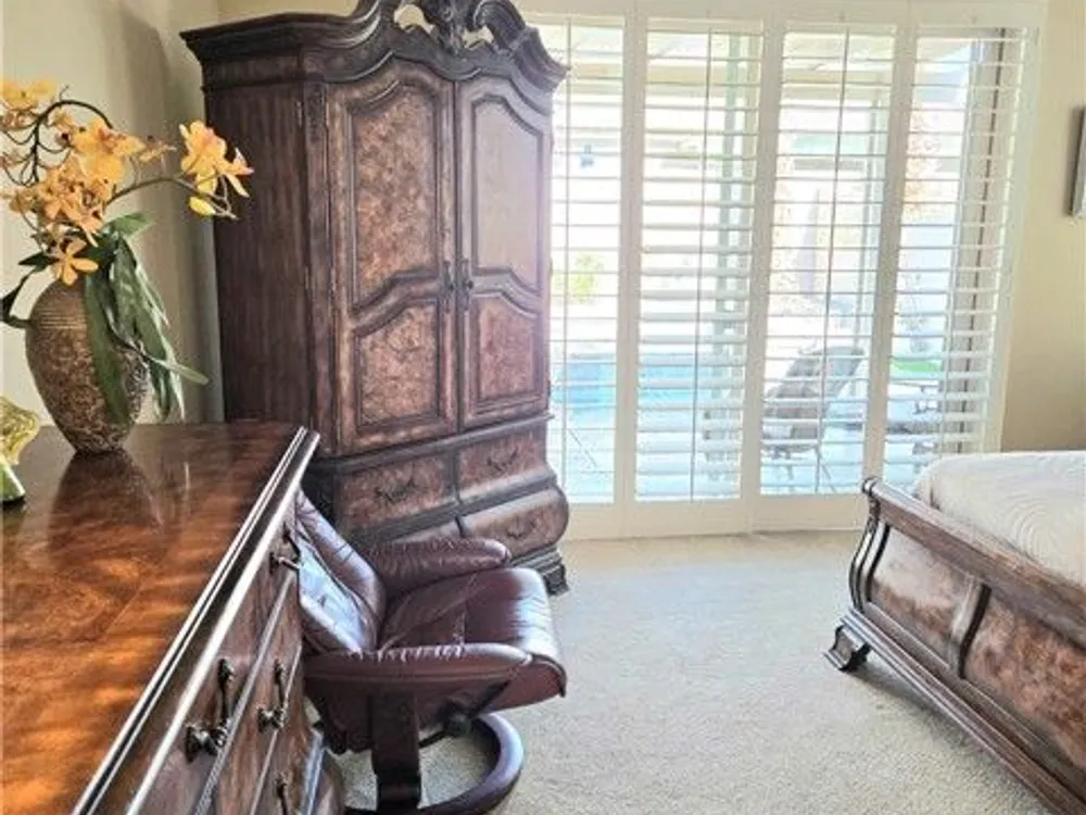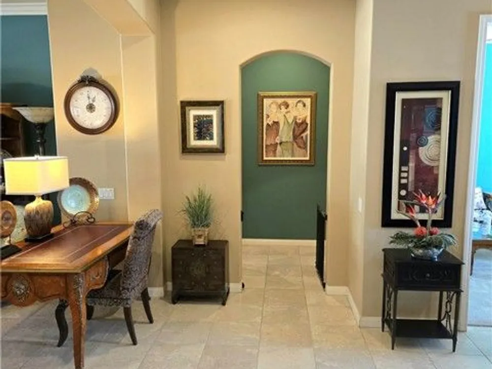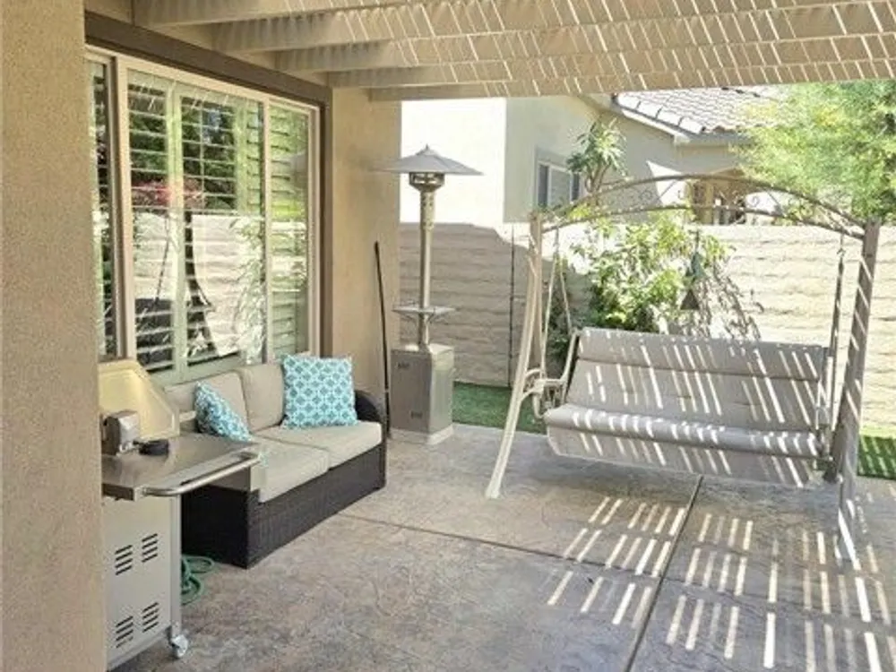 Welcome to the absolutely beautiful and stunning highly sought after San Rafael 3 bedroom 3 bathroom model home. The first thing you notice as you approach this special home is that it is freshly painted with extensive stacked stone on the garage and entry. The yard is professionally landscaped with drought tolerant plants and palms. As you pass the front entry you will observe the beautiful leaded glass door. The home features ten foot ceilings with crown molding throughout the entire home including the bathrooms, updated lighting, ceiling fans, solar tube lights, and additional spotlights added above the couch area. The custom designed large in-ground salt water Pebble-Tec heated pool has a tanning shelf, and two built in stools next to the fire pit, with an elevated spa including two waterfalls that cascade down the stack stone wall. This lap pool is over 50 foot long. The backyard has dual fire bowls on the stacked stone wall , the extended patio has a stamped concrete finish with alumawood covers on each side of the patio. This desirable open floor plan features a primary ensuite on one side where the bedroom has an attached large bathroom including a Jacuzzi soaking tub, walk in shower, with dual vanities sinks with a seating area for cosmetics and an attached walk-in closet with plenty of storage space and built-in cabinets and shoe racks. The two secondary bedrooms on the other side are separated by a shared Jack and Jill bathroom with double sinks. The gourmet kitchen has granite counters, black stainless steel appliances, gas double wall ovens, counter depth refrigerator, large walk-in pantry includes a glass door with palm designs, and breakfast bar at the island. The kitchen opens to a large living room with unlimited entertaining options. The air-conditioning was replaced in 2018. Other features include custom plantation shutters, 8 foot doors, a dedicated laundry room, The house features an extra deep 3 car garage with a back wall of tall storage cabinets with outdoor carpet flooring, and 3 spacious car driveway, well maintained, just the beautiful home you are looking for. Indulge in the amazing amenities of Sun City Shadow Hills, including two championship golf courses, multiple pools, hot tubs, clubhouses, fitness centers, billiards room, bocce ball courts, tennis, pickle ball, social club and so much. This is much more than a neighborhood, it is a lifestyle that will be the envy of your friends.