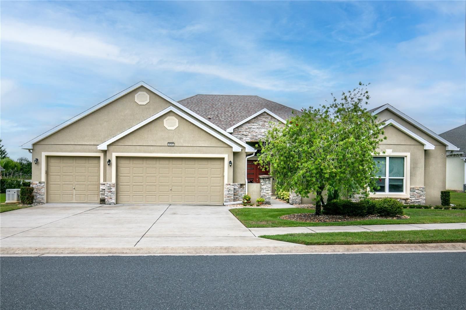 Welcome to your dream home nestled on a serene waterfront lot, where luxury meets functionality. This custom-built residence boasts exceptional features designed for comfort and sophistication. Key Features Include: Solar Heated Saltwater Pool and Jacuzzi: Enjoy year-round swimming and relaxation in a pristine, environmentally friendly pool and jacuzzi. Large 3 Car Garage: Includes an electric attic lift for additional storage, catering to automotive enthusiasts and ample storage needs. Custom Built with High-End Finishes: Featuring built-ins, high ceilings, and elegant crown molding throughout. State-of-the-Art Chef's Kitchen: A culinary masterpiece with unique fusion granite countertops, top-tier built-in cabinetry, and professional-grade appliances. Entertainment Spaces: Bonus room designed as a stylish man cave with a built-in bar, adjacent half bath, and sliders offering pool and lake views. Deluxe Primary Bedroom Suite: Highlights oversized custom his and her closets, French doors opening to the pool area, and a luxurious ensuite bathroom. Spacious Guest Suites: Includes a guest suite with a built-in Murphy bed, ensuring comfort and versatility. Additional Features: Massive guest bedroom would make an ideal space for an in-law suite if desired. Whole House Generator and Enhanced Security: Ensuring peace of mind with reliable backup power and advanced security features. This exceptional property combines luxury with practicality, offering unparalleled amenities for discerning homeowners. Experience waterfront living at its finest with every detail meticulously crafted for your comfort and enjoyment. The Lakes of Mount Dora which is seen by many as one of the premier 55+ communities in all of Central Florida, has many amenities for your use, including a 18,000 sq ft club house that offers large library room, billiard room, arts/craft room, card/game room, and fitness center along with the social hall where many events and activities are held. Plenty of clubs for those who like to be social. Outside the club house you'll find a resort style pool with hot tub, walking trail, bocce ball and croquet lawn, pickle ball and tennis courts. Besides all this, your monthly HOA fee also includes cable and internet, gated RV/Boat parking, and reclaimed sprinkler water. 10 minutes away is the picturesque town of Mount Dora with all the festivals and quaint restaurants, unique shops, gorgeous sunsets over Lake Dora, boat tours, etc., there is something for everyone! Less than an hour from Disney/Orlando. When you see it you will love it! Call for more details!